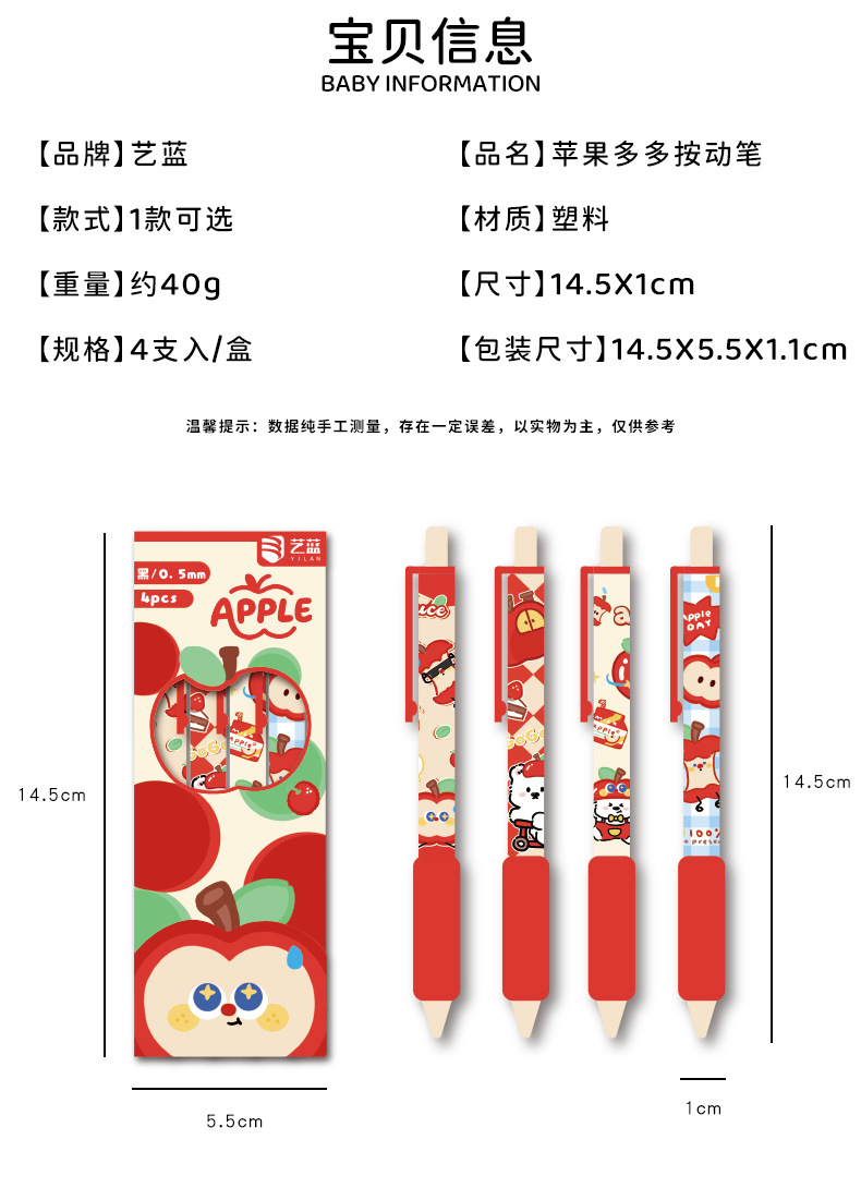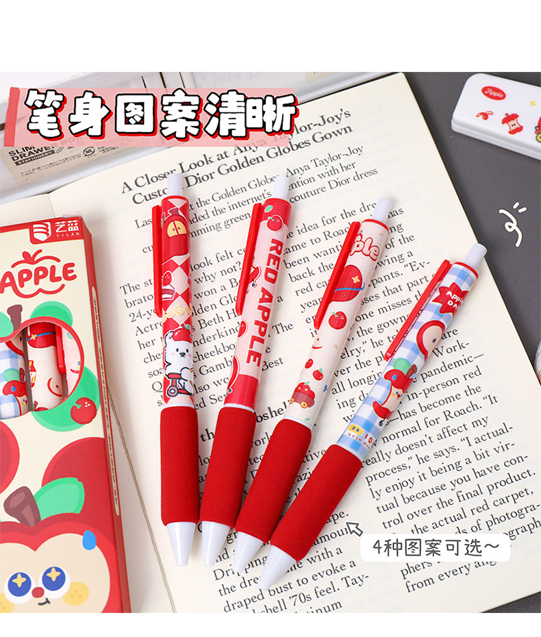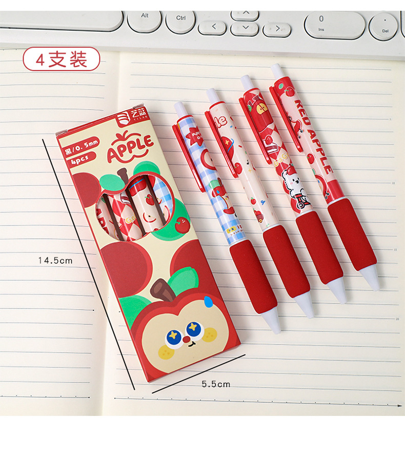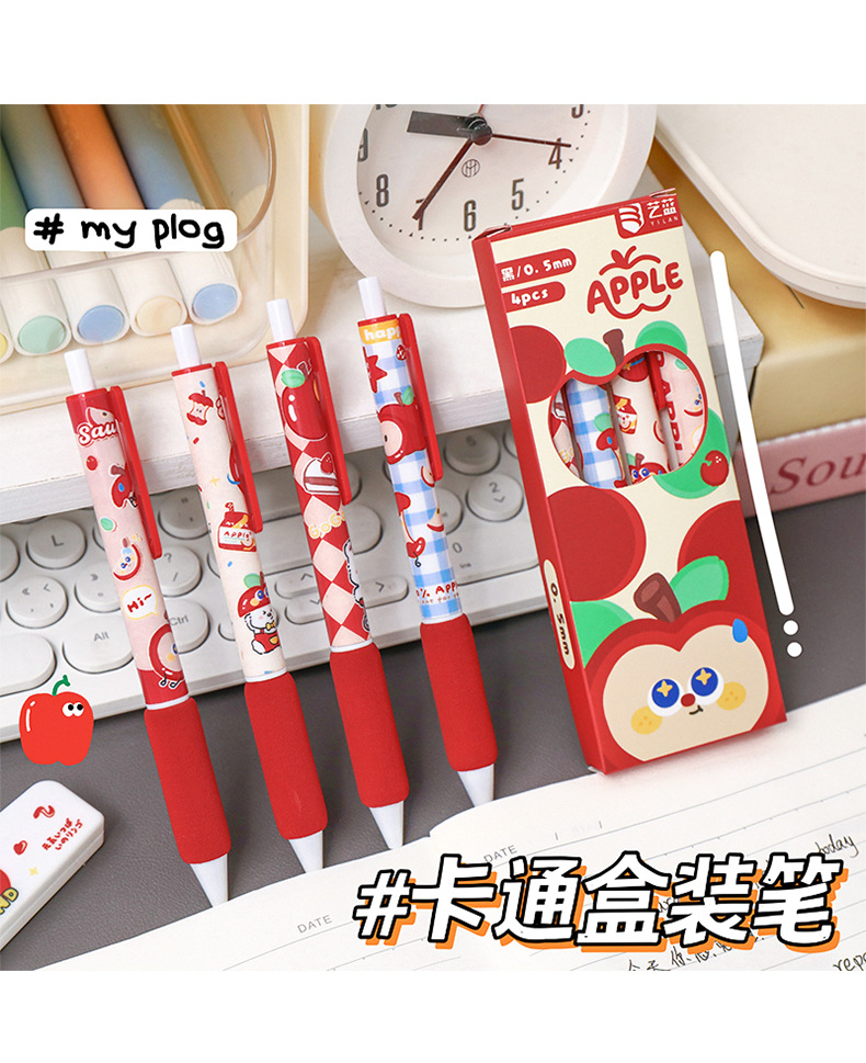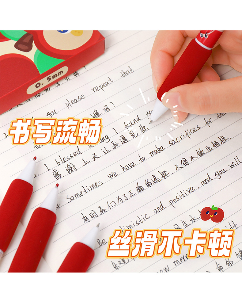 苹果多多中性笔可爱按动st中性软握笔卡通办公室学生用速干刷题笔
