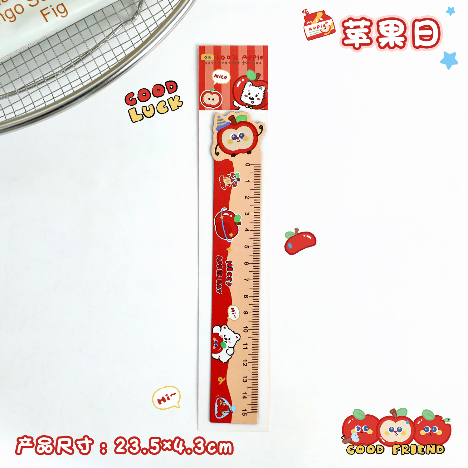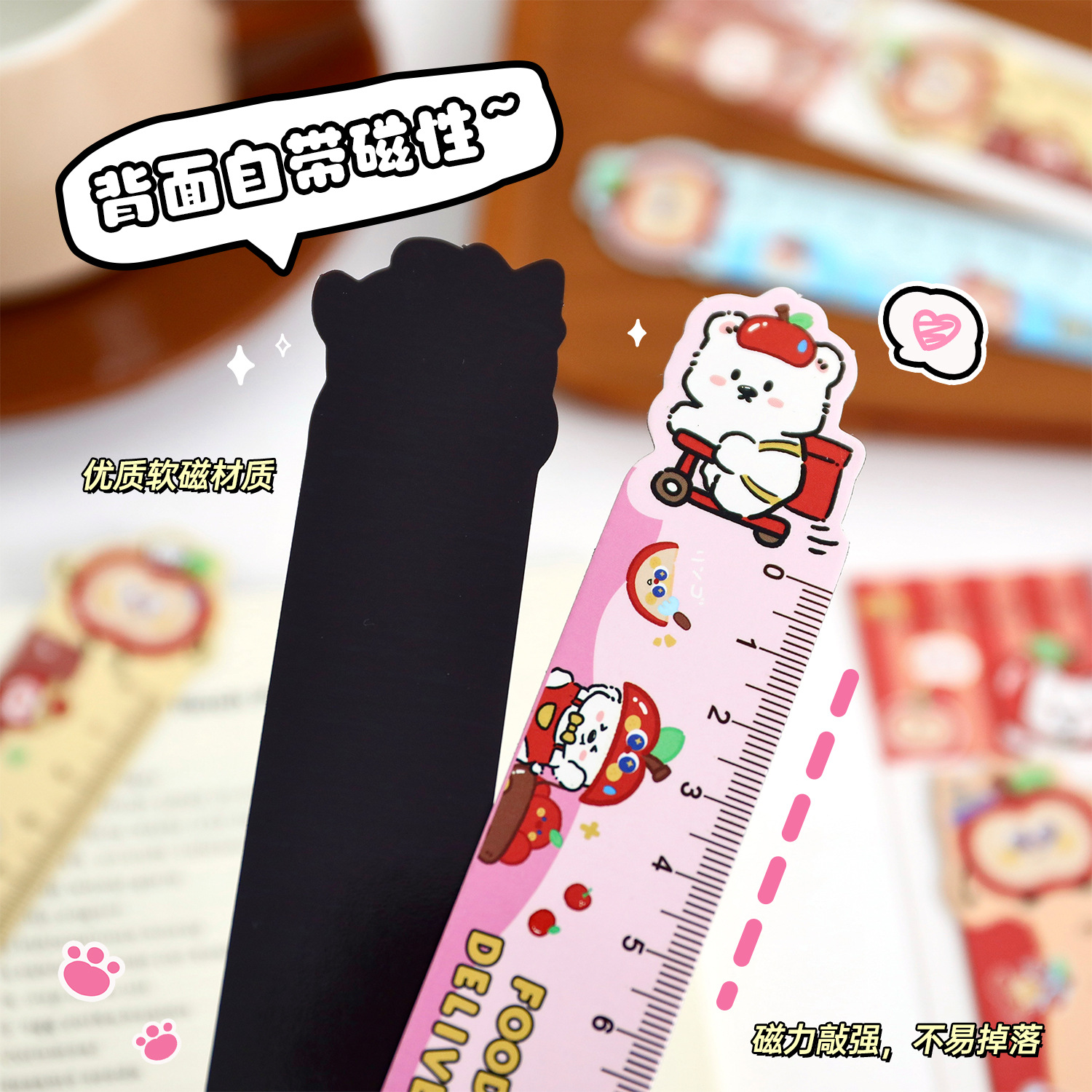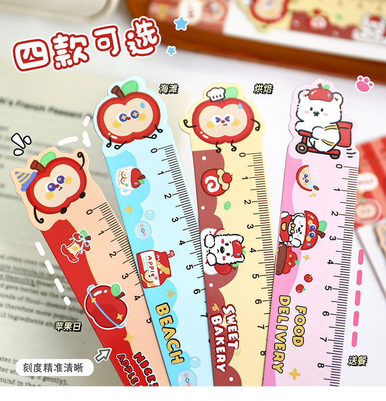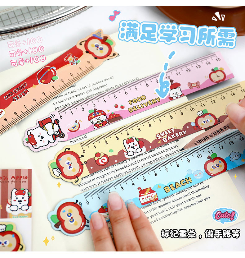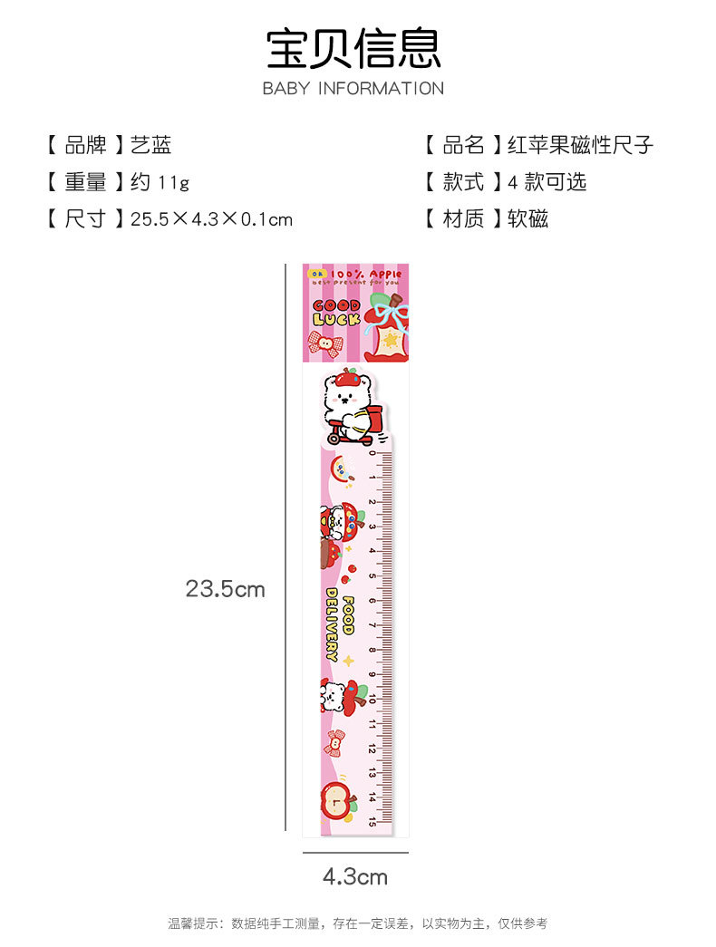 苹果多多磁性直尺可爱多功能磁性书签尺卡通学生便携软磁尺子直尺