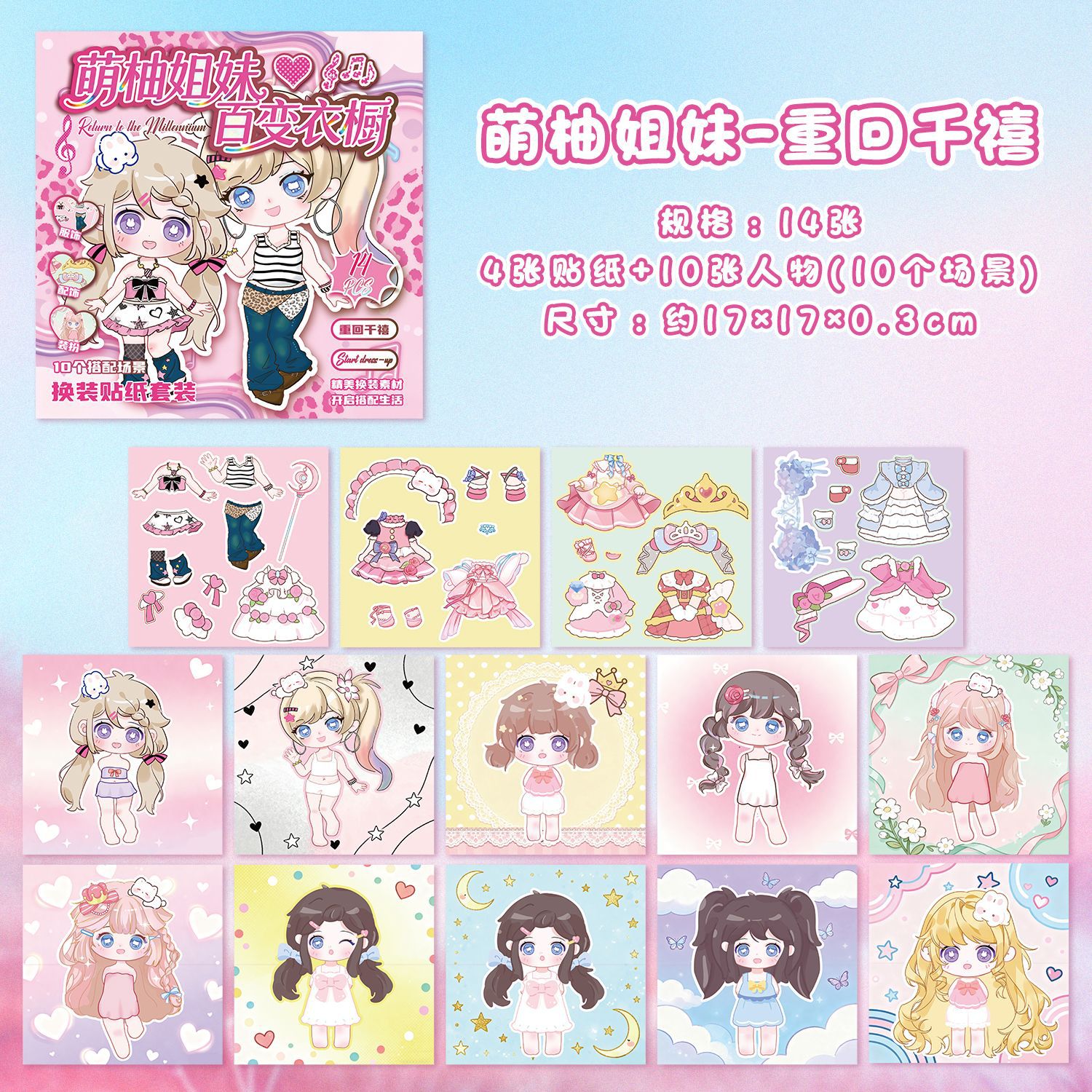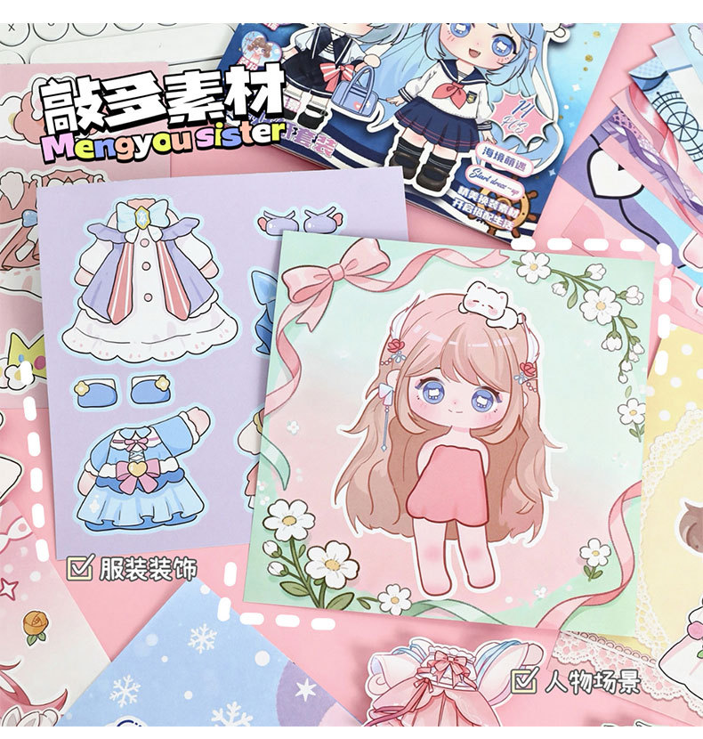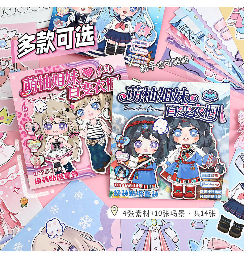 萌柚姐妹百变衣橱换装贴纸本少女公主换衣服diy手账贴纸儿童贴画
