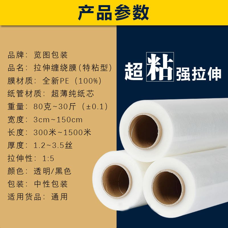 缠绕膜 拉伸膜厂家批发宽50cm塑料薄膜打包膜工业保鲜 pe膜包装膜