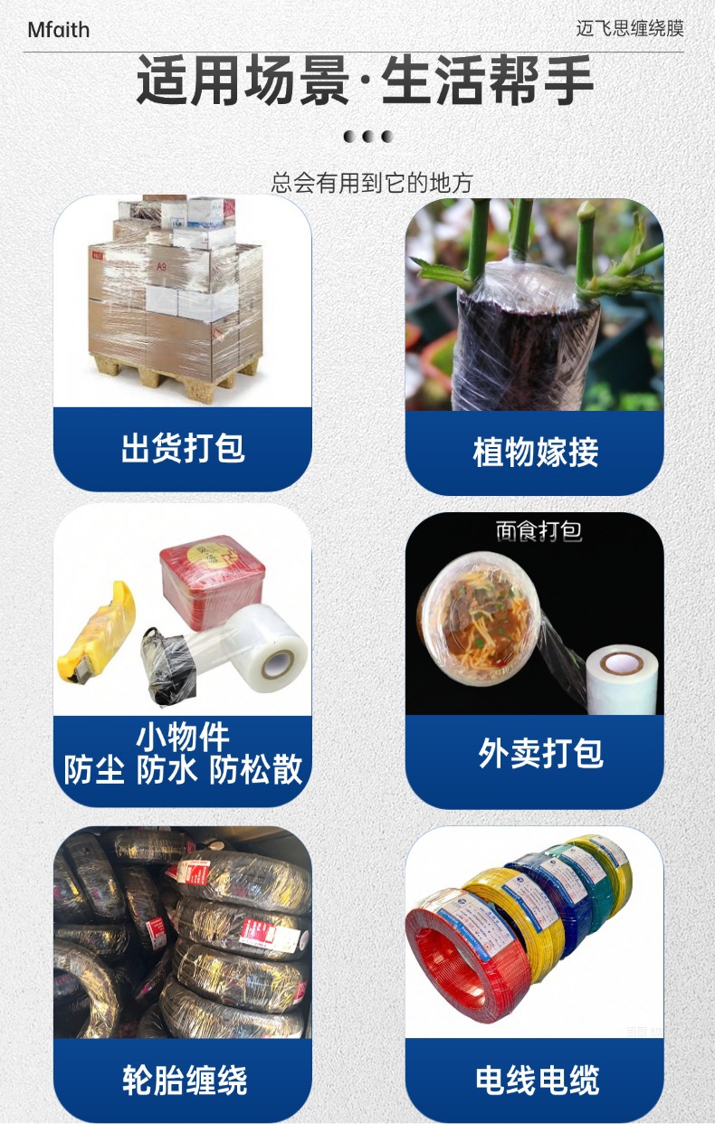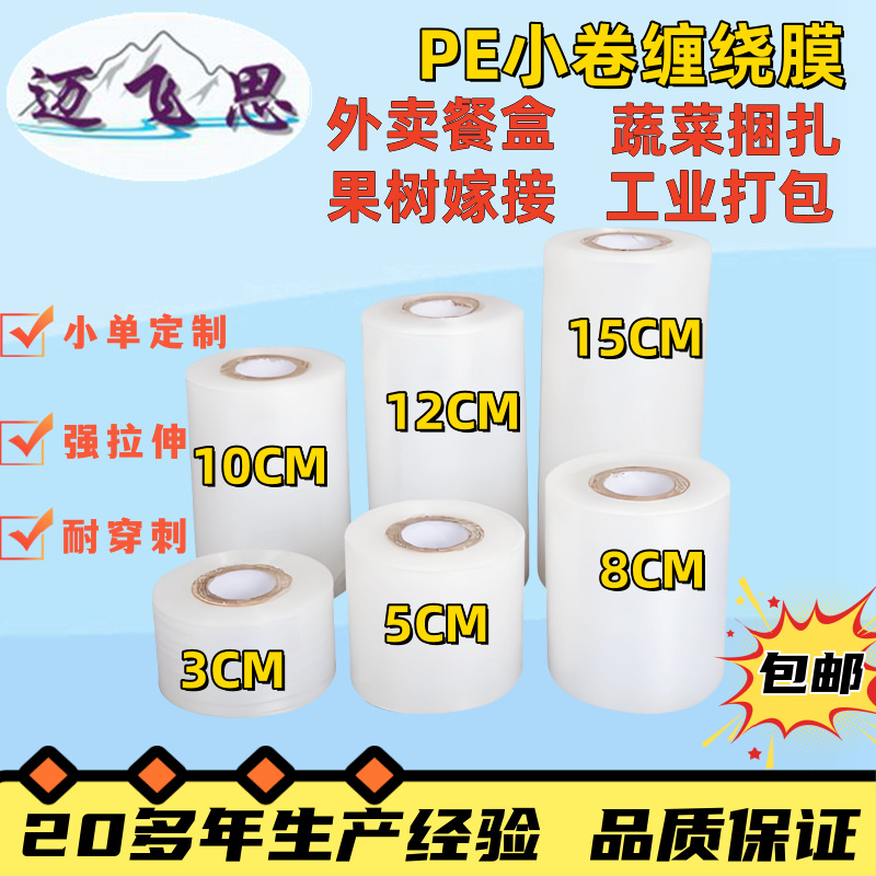 pe缠绕膜5/8/10/15公分电线膜外卖打包专用塑料拉伸嫁接膜 缠绕膜