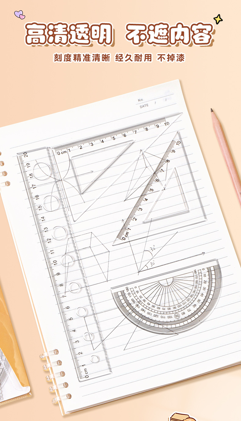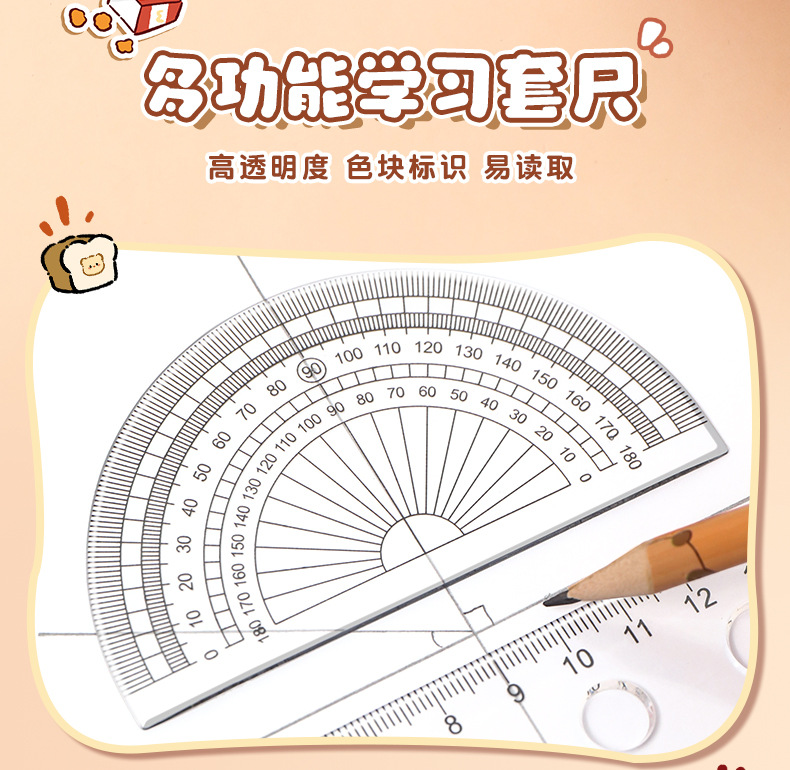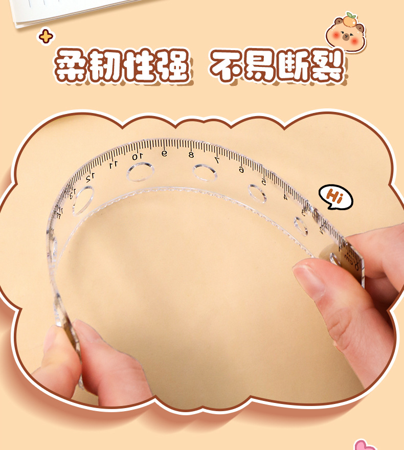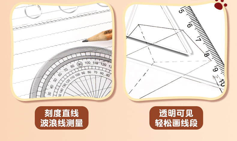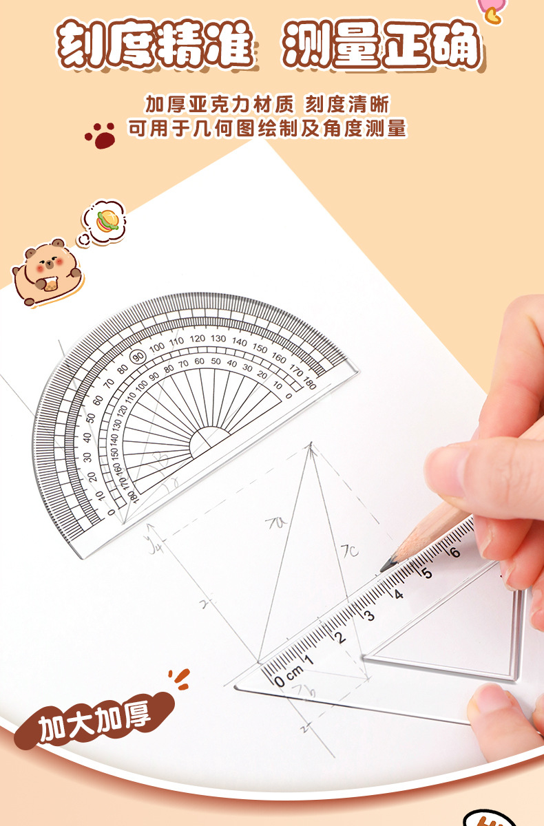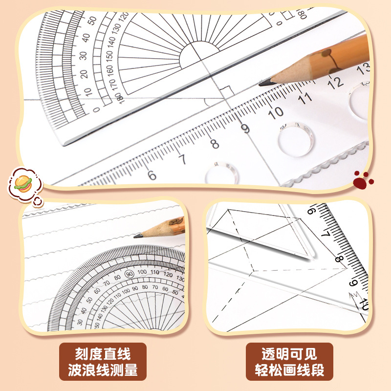 卡皮巴拉尺子套装小学生可爱套尺卡通儿童直尺三角板量角器四件套