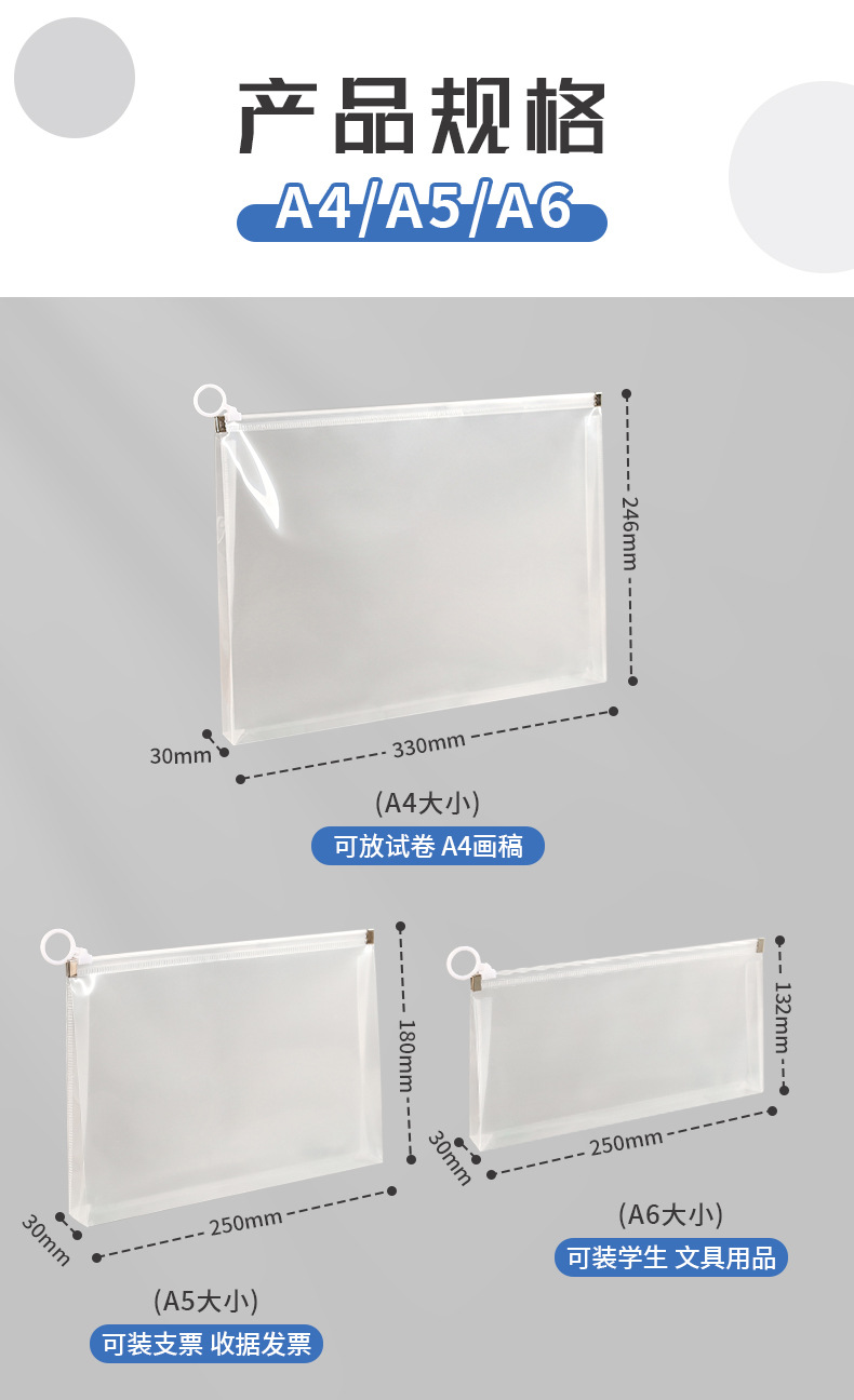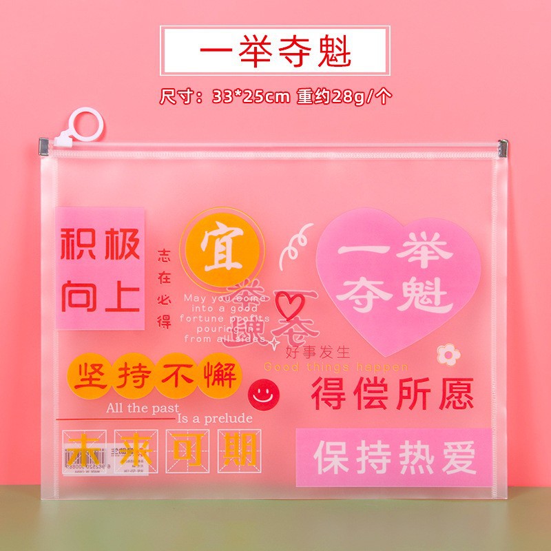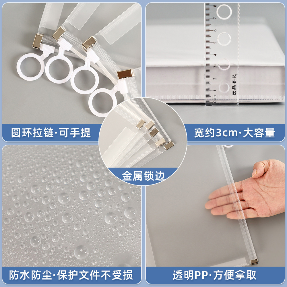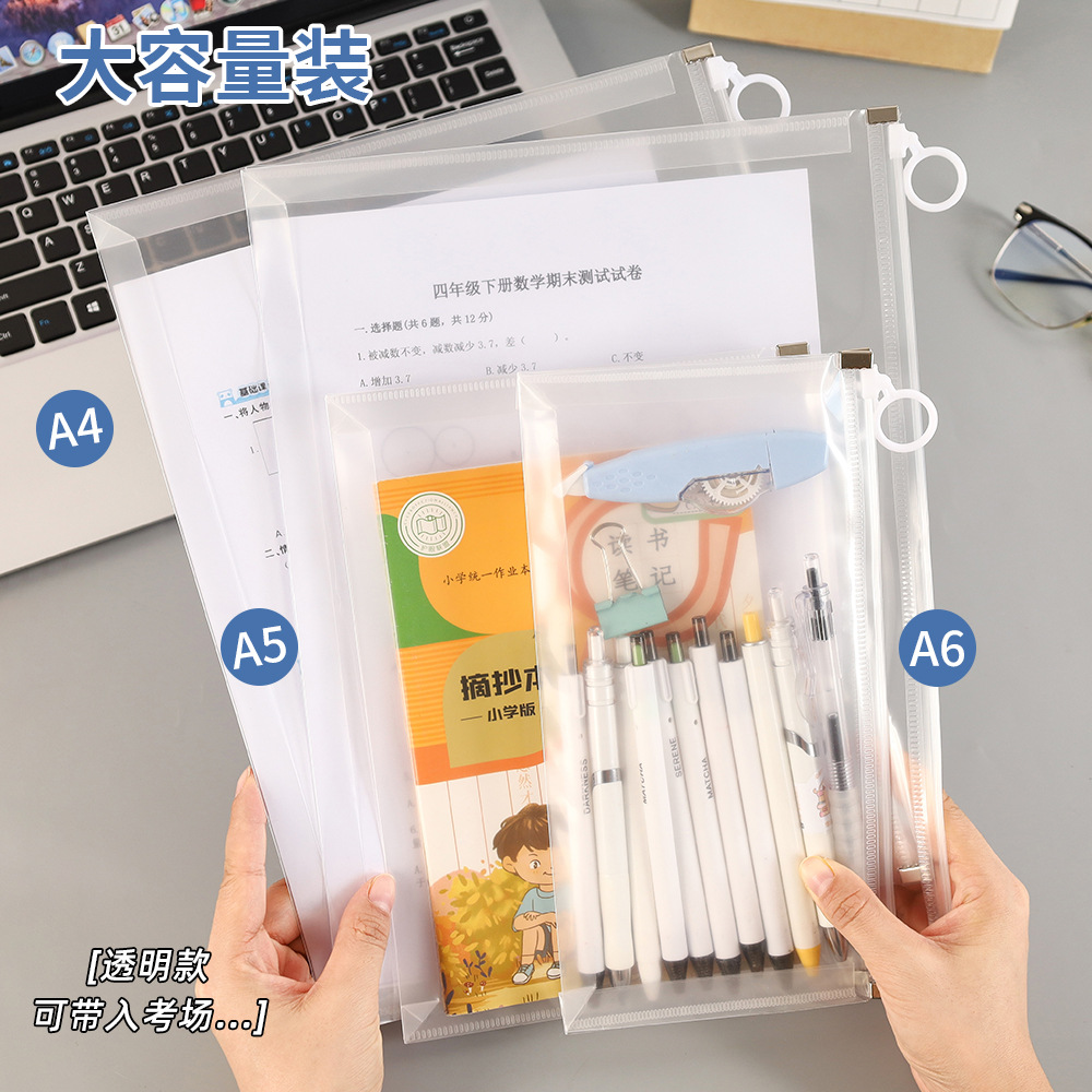 创意A4拉链式文件袋大容量学生考试专用文具袋磨砂塑料票据资料袋