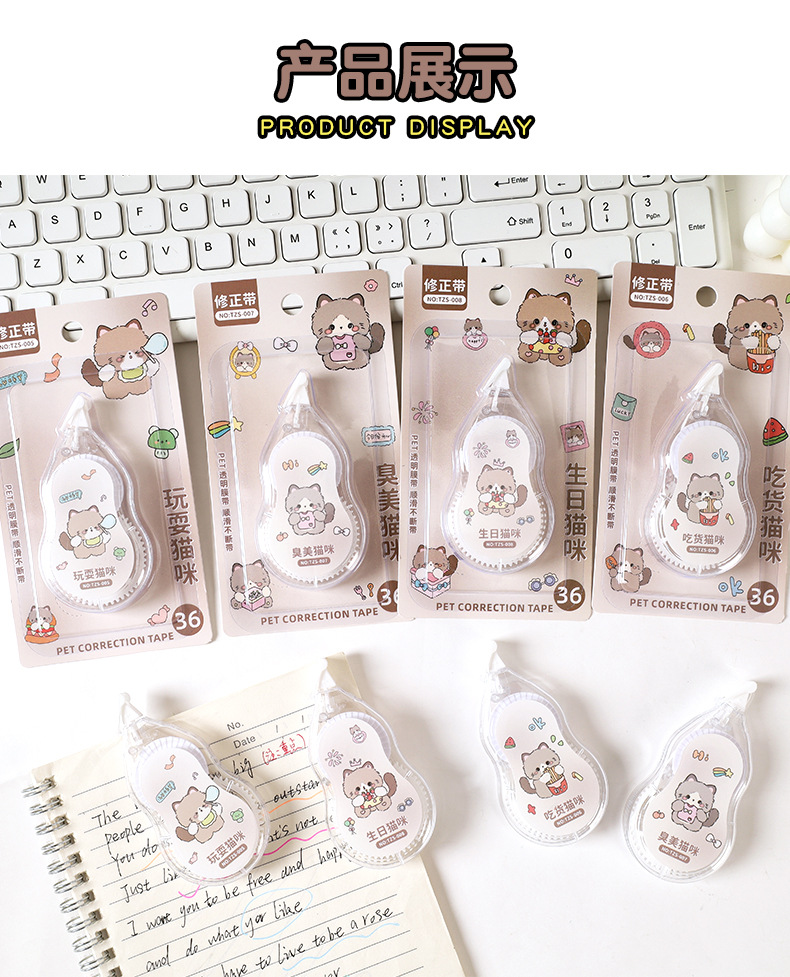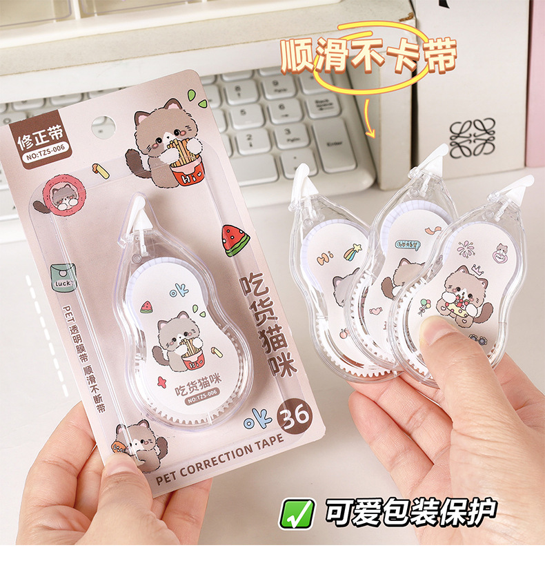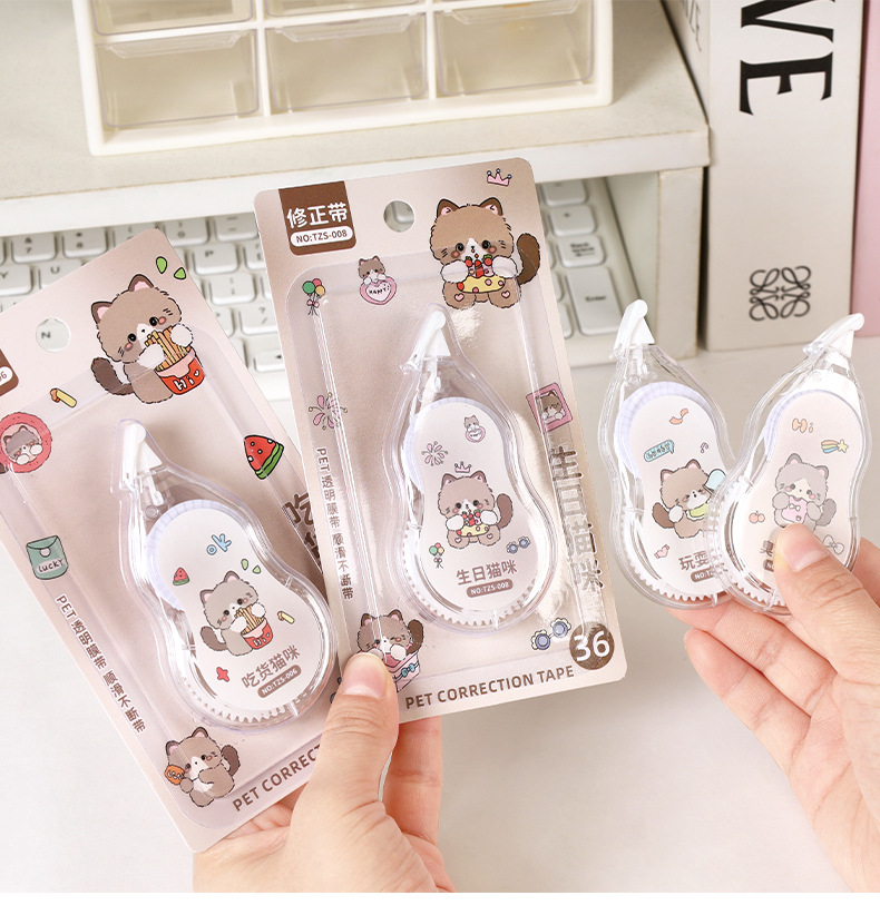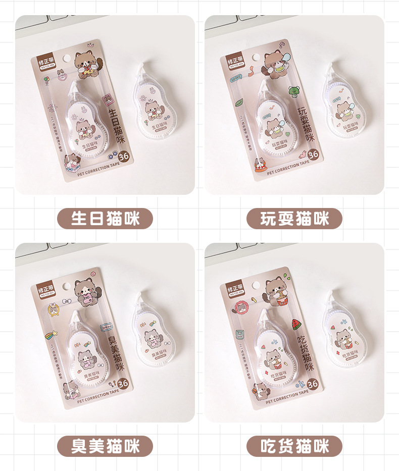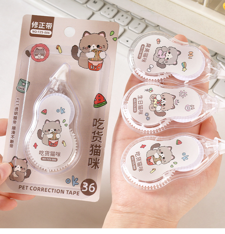 创意卡通猫咪修正带 小学生专用大容量6米改正带高颜值涂改带批发