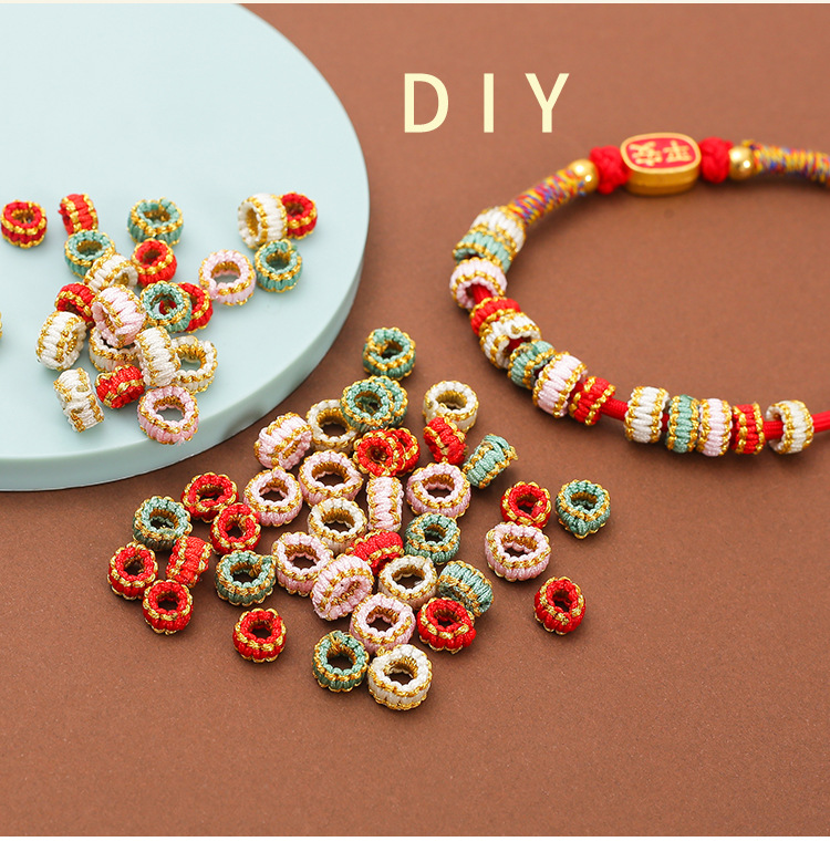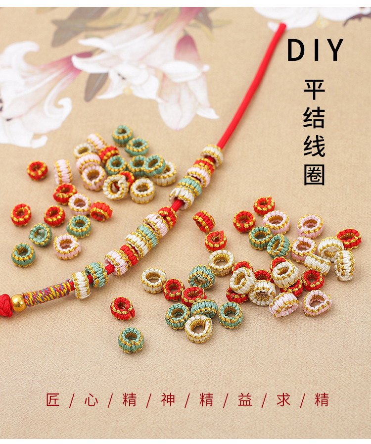 五彩绳红绳手链收尾平结线圈编绳拉圈手工编织diy饰品配件菠萝圈