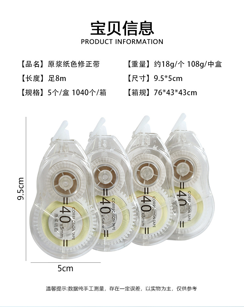 创意原浆纸色静音修正带大容量足8m改正带学生顺滑涂改带文具批发
