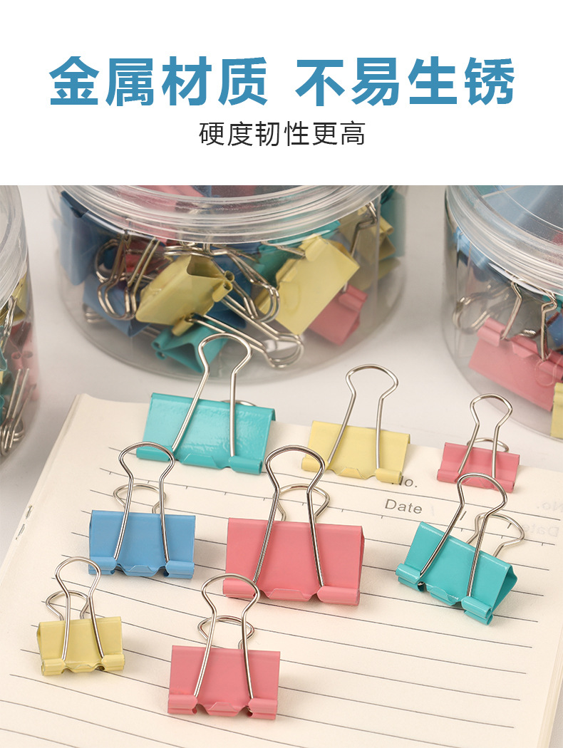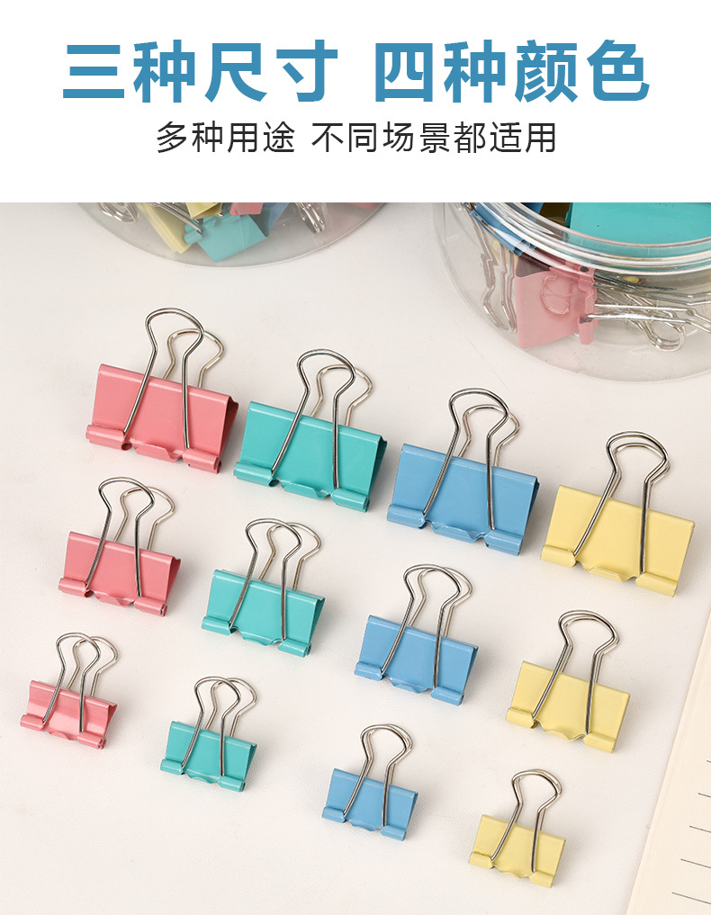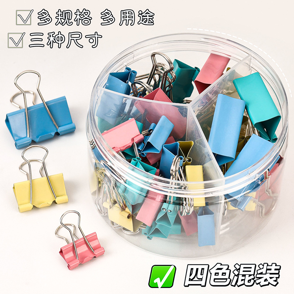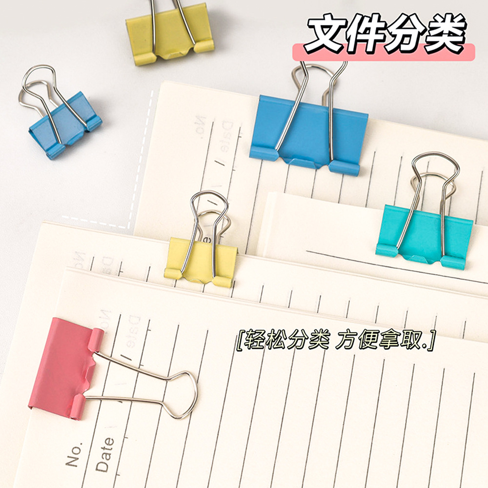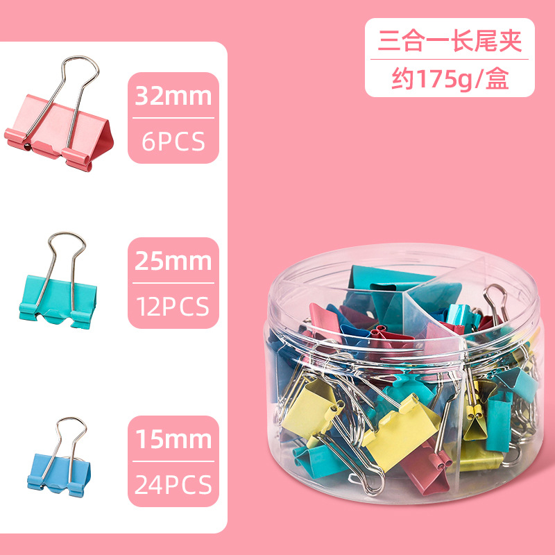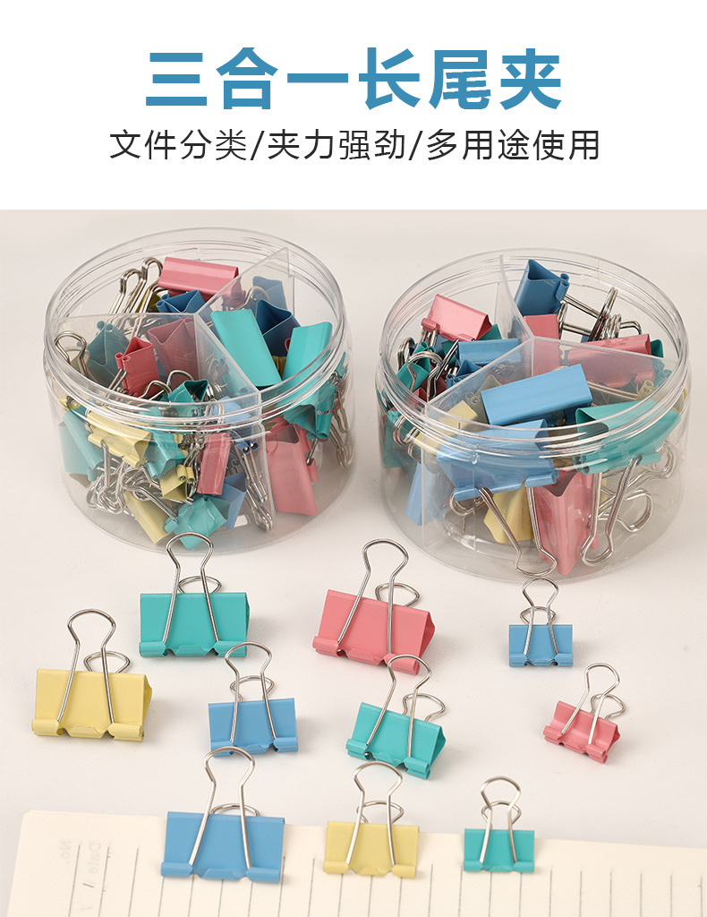 彩色长尾夹办公金属三合一票据夹高颜值燕尾夹混装19mm文件小夹子