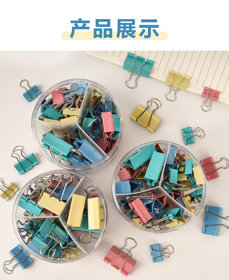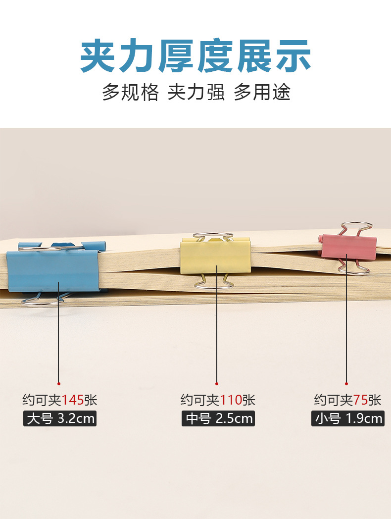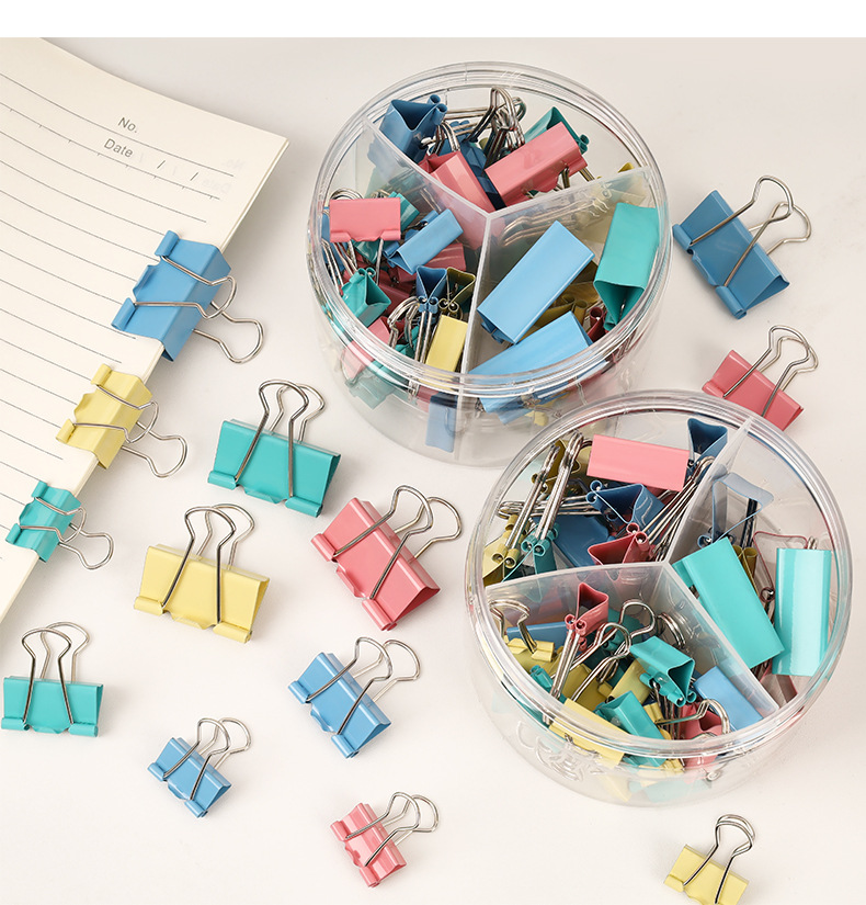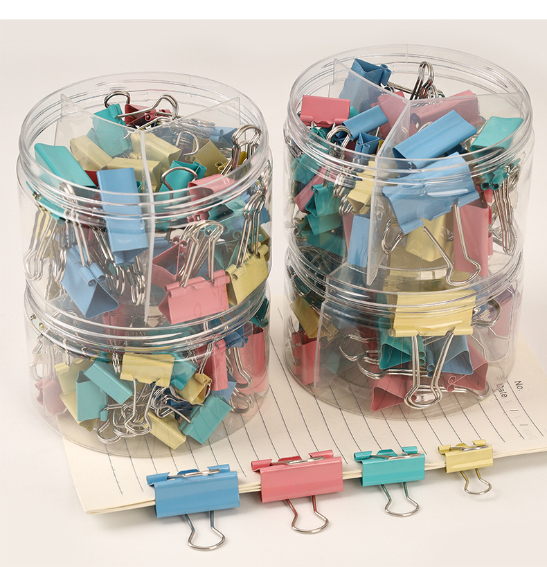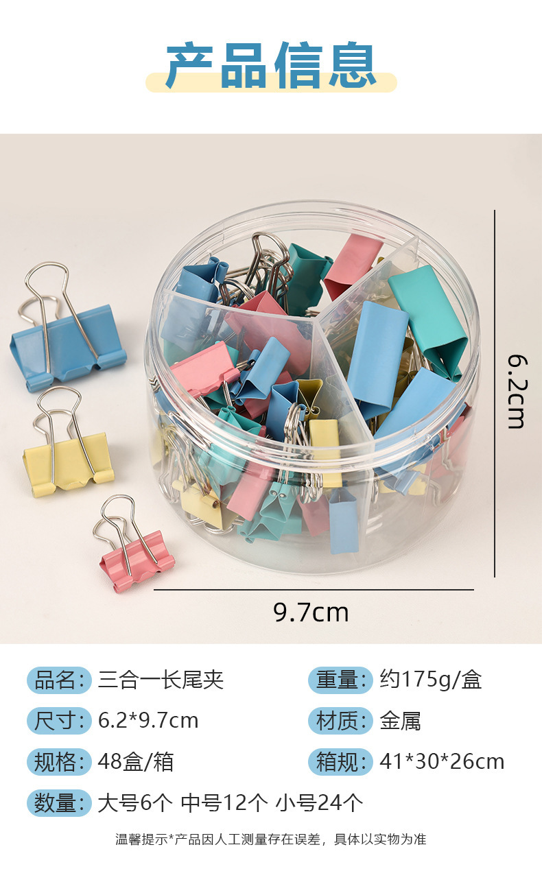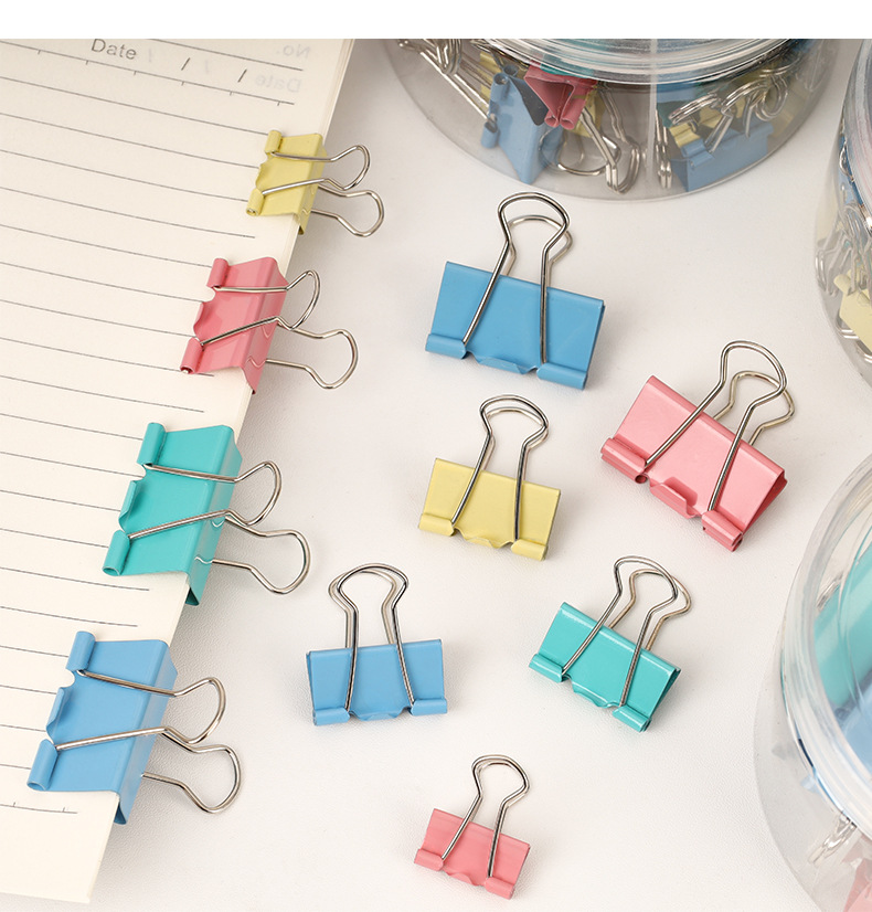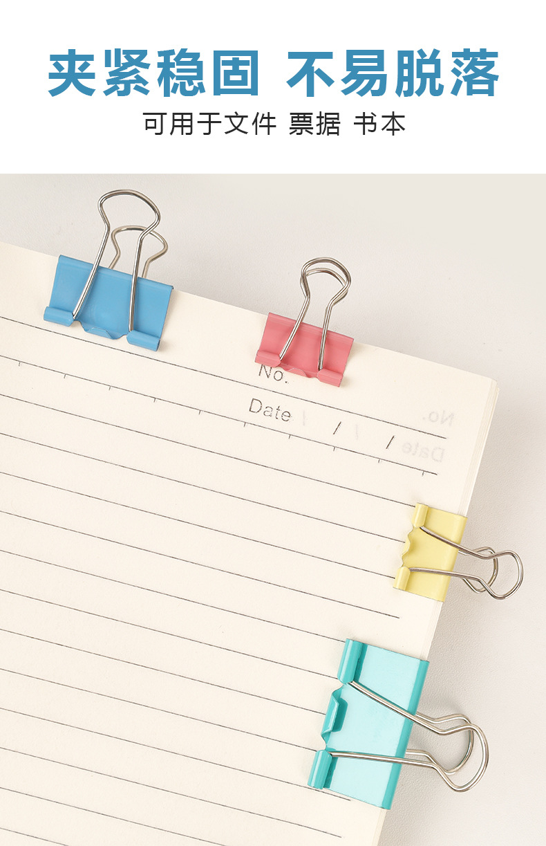 彩色长尾夹办公金属三合一票据夹高颜值燕尾夹混装19mm文件小夹子