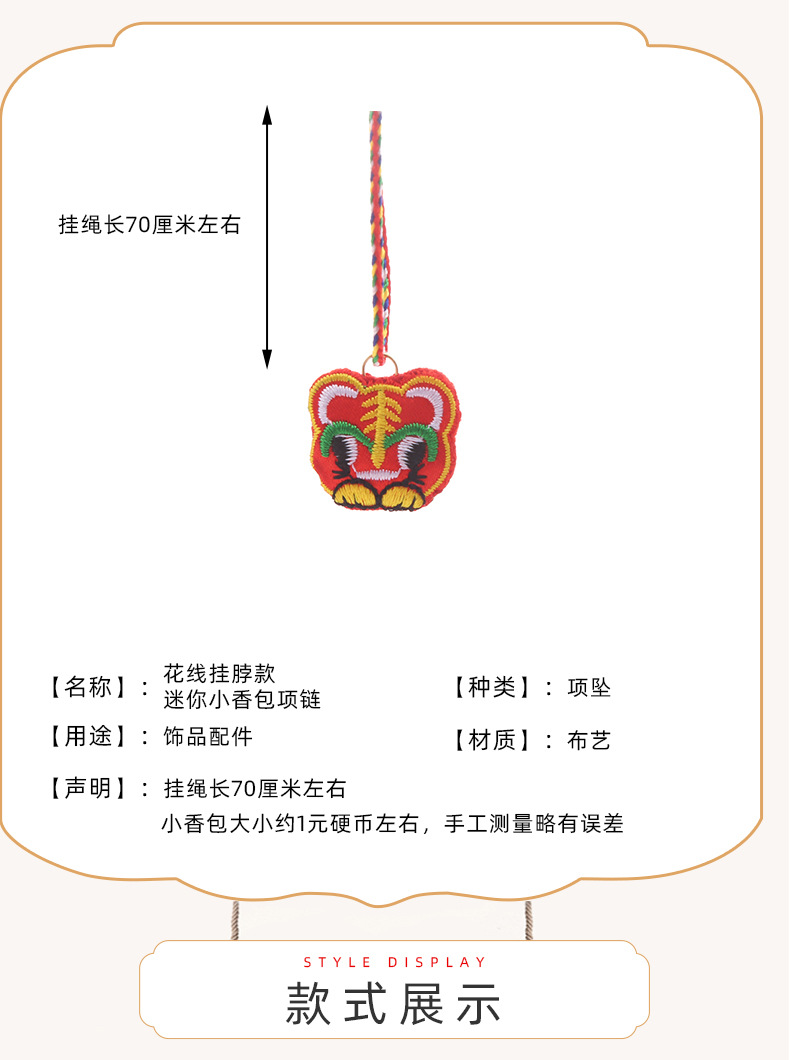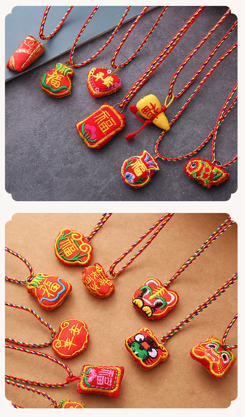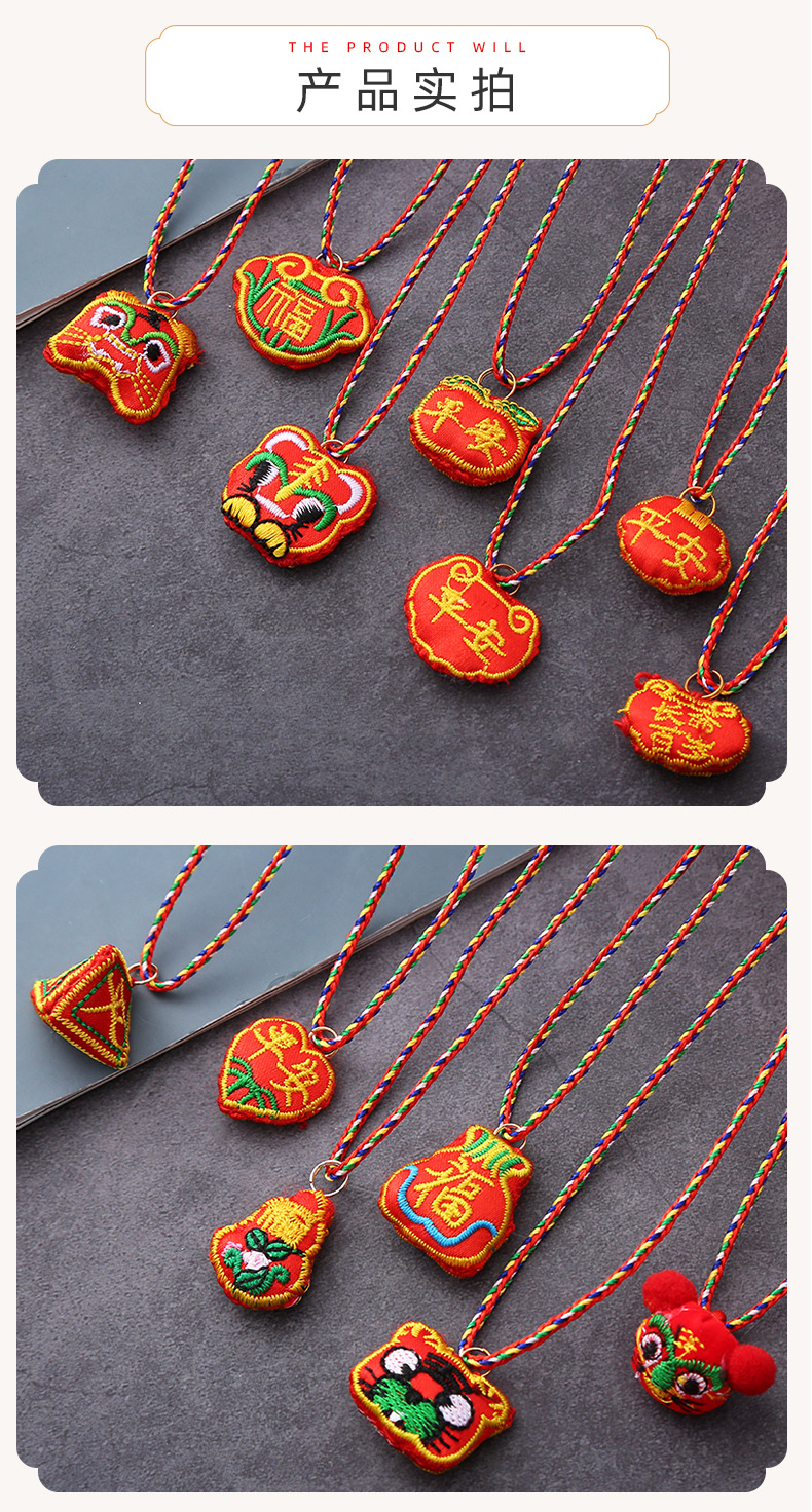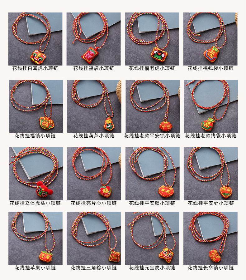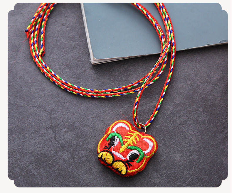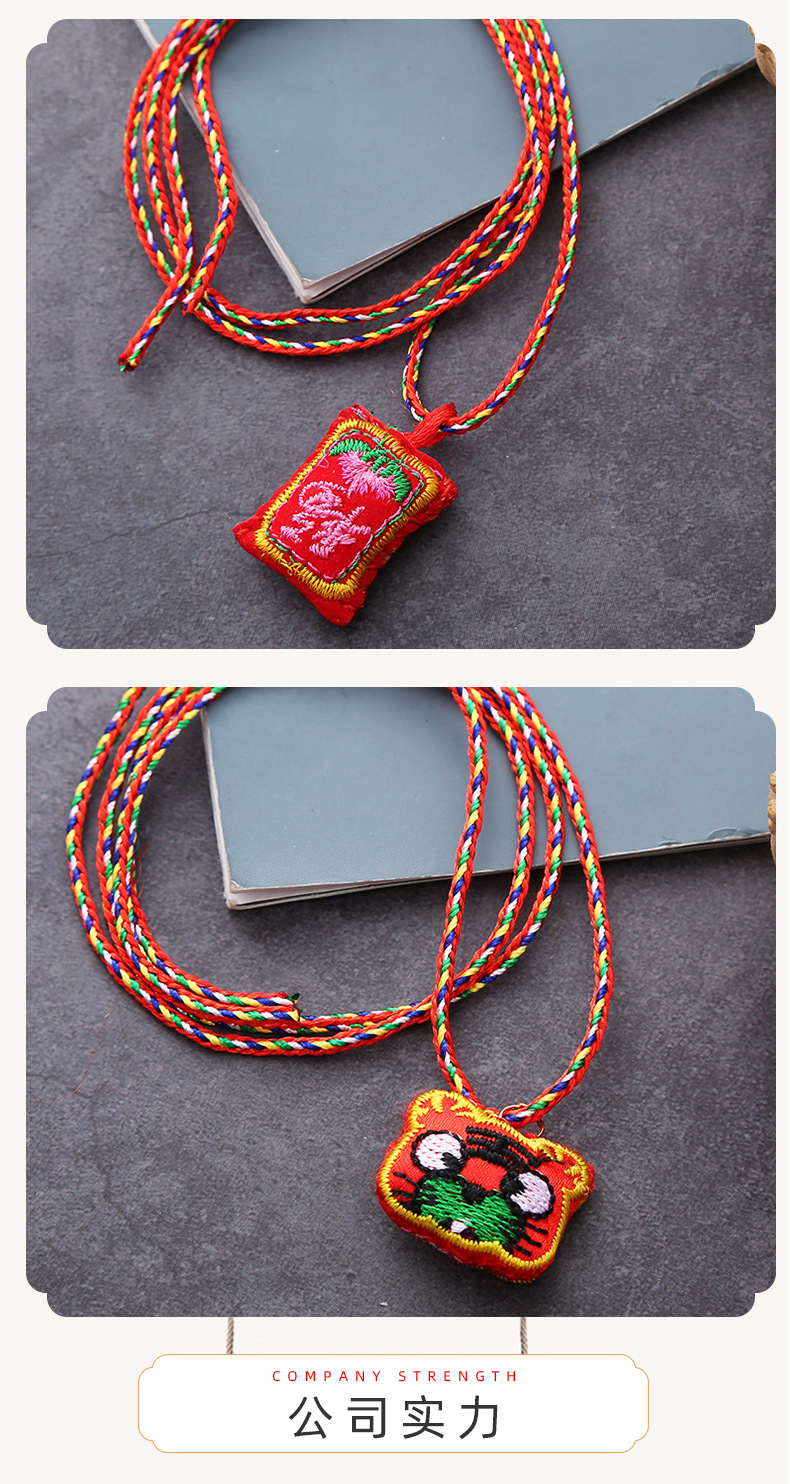 端午节五彩绳挂脖款迷你小香包项链电脑刺绣粽子老虎儿童项链批发