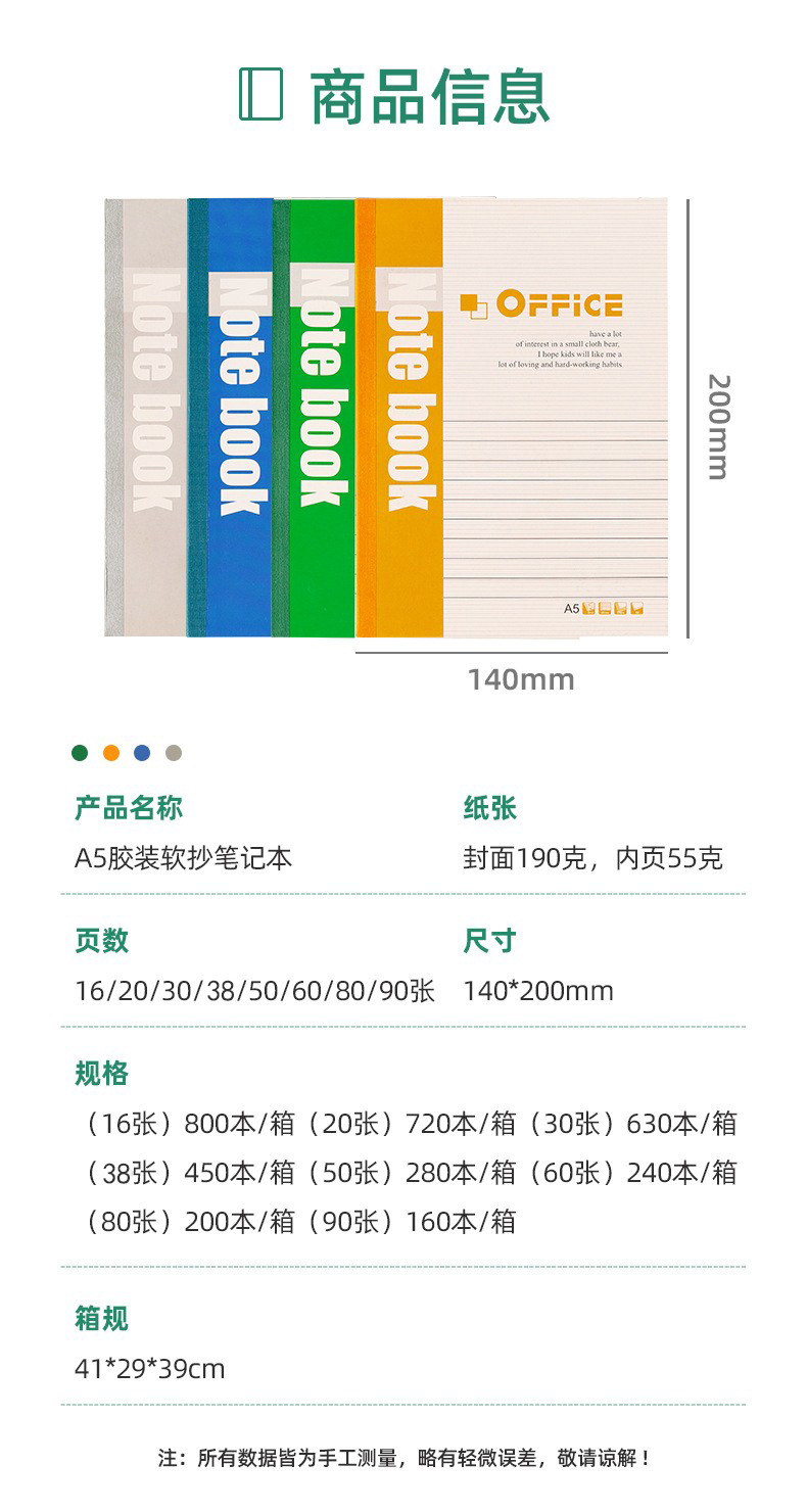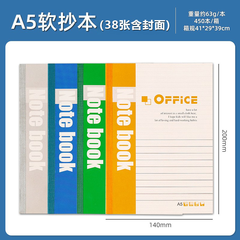 软面抄a5本子学生办公用加厚笔记本横线胶装包背条日记本文具批发