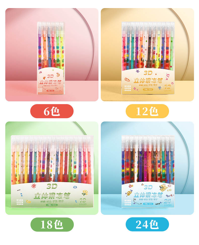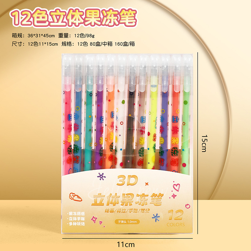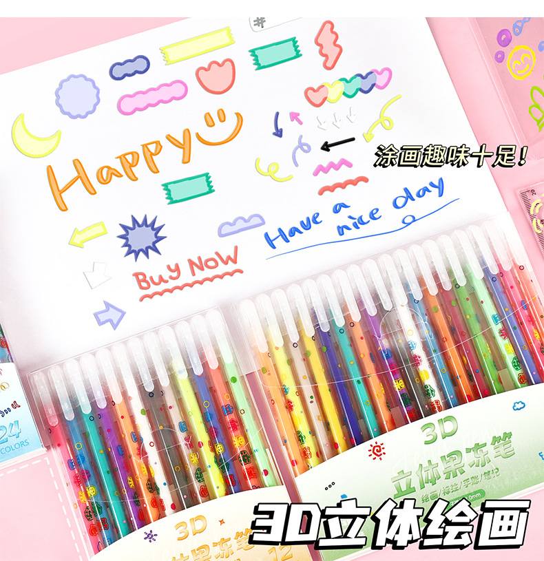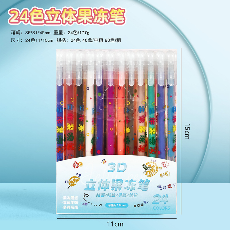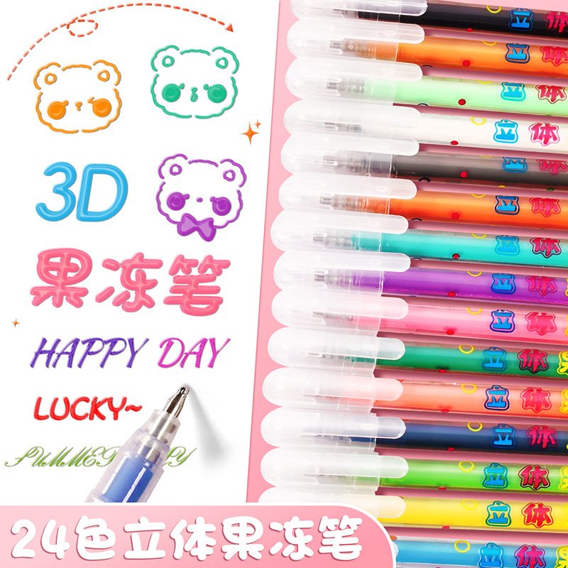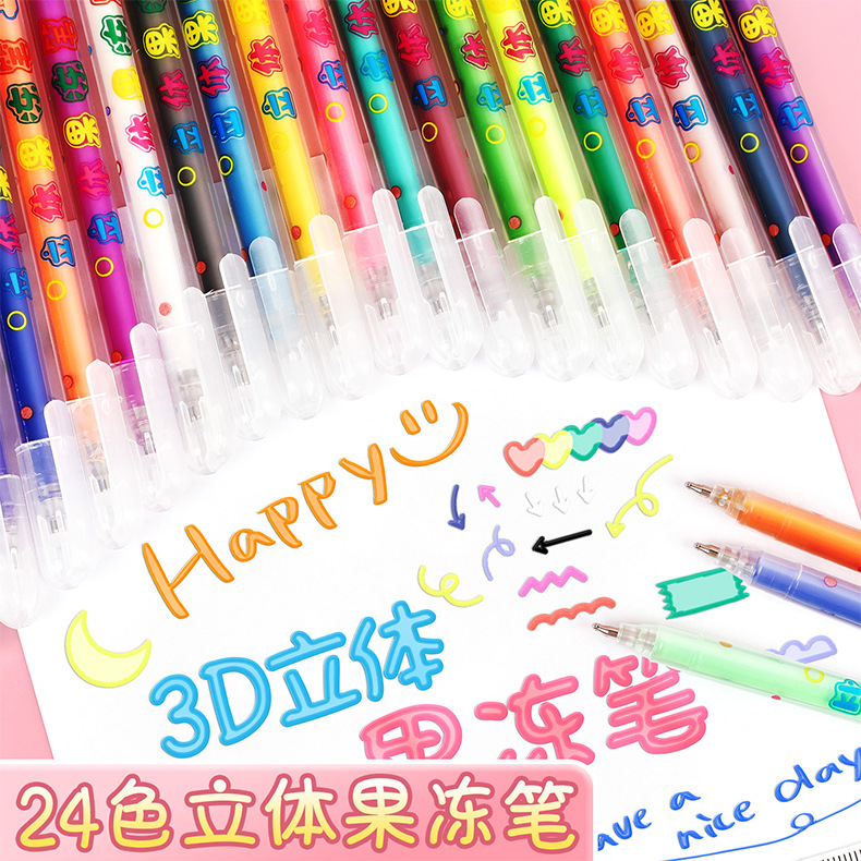 小学生果冻笔3d立体笔24色儿童手账涂鸦彩色划重点中性笔套装批发