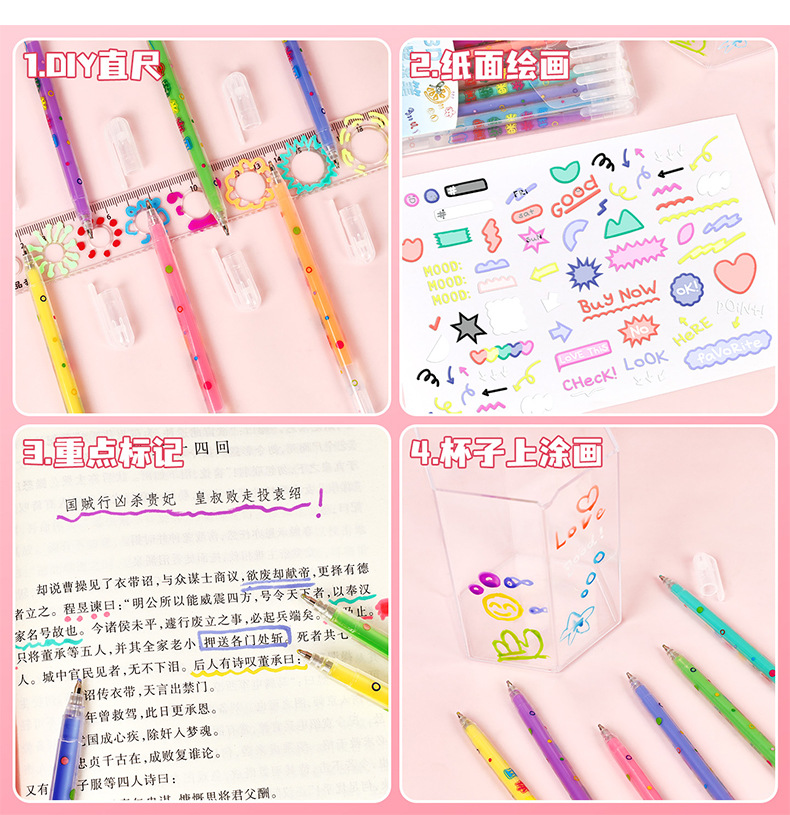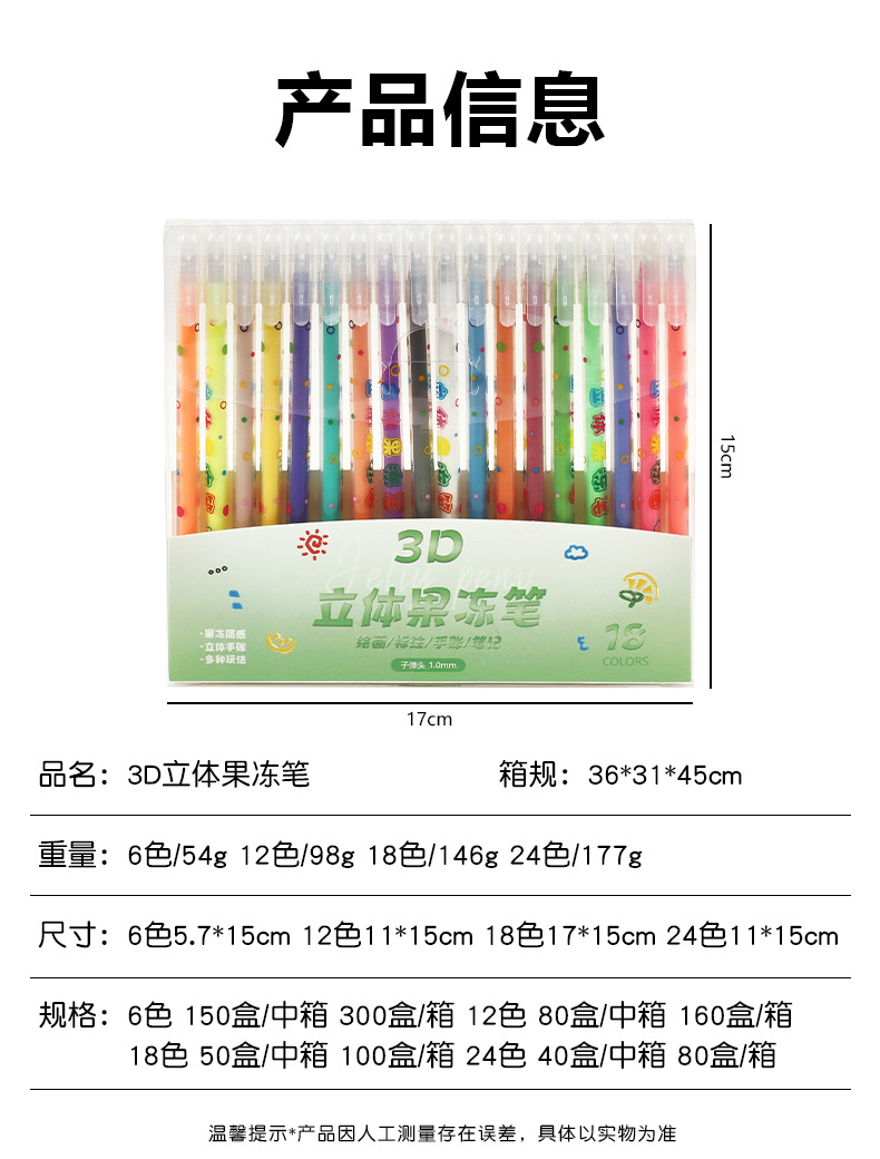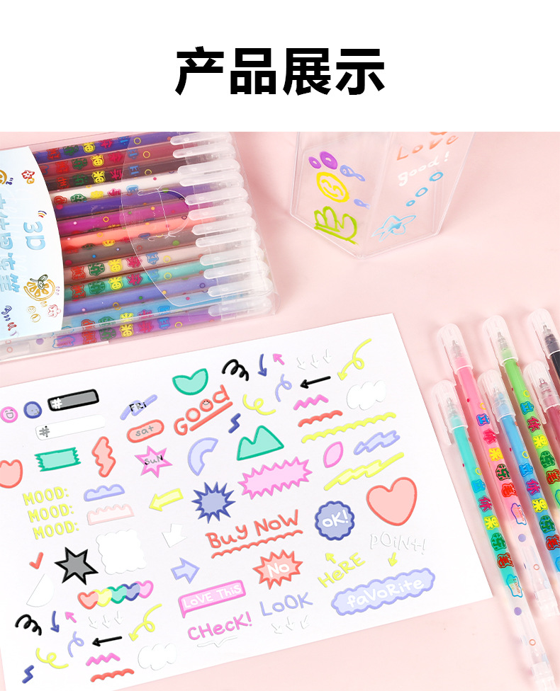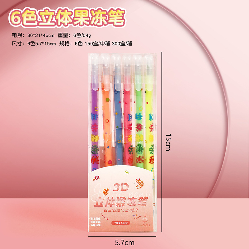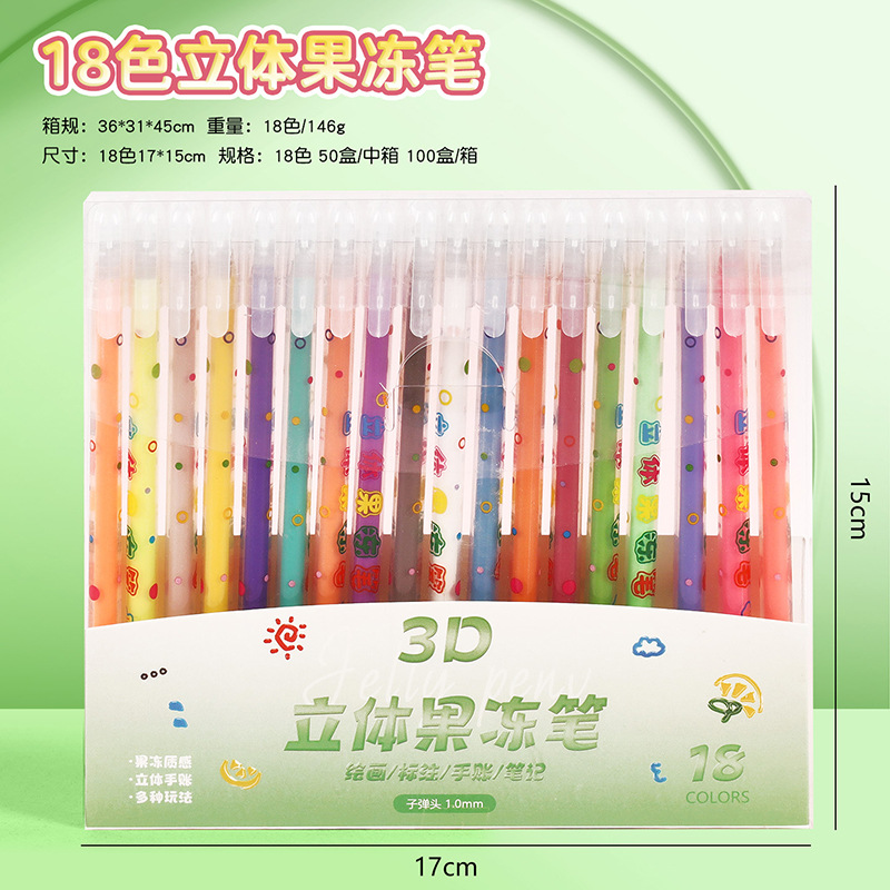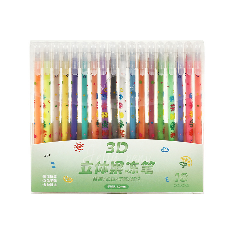 小学生果冻笔3d立体笔24色儿童手账涂鸦彩色划重点中性笔套装批发