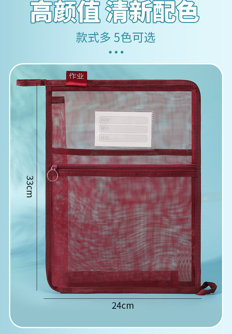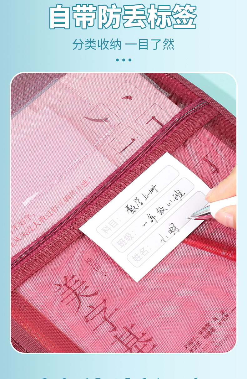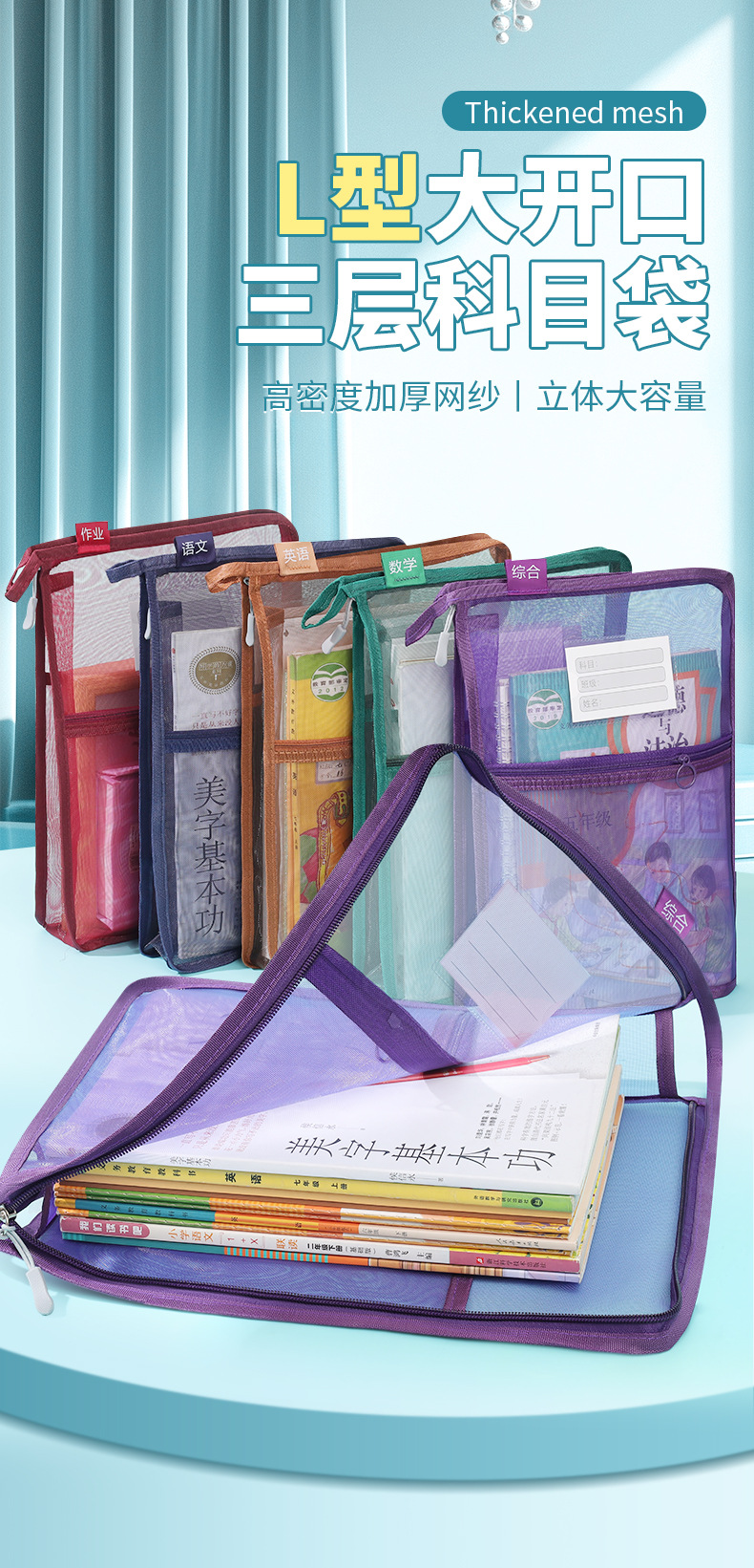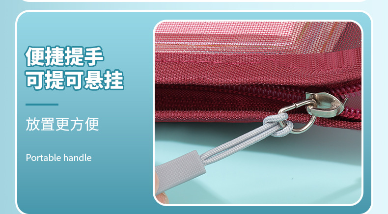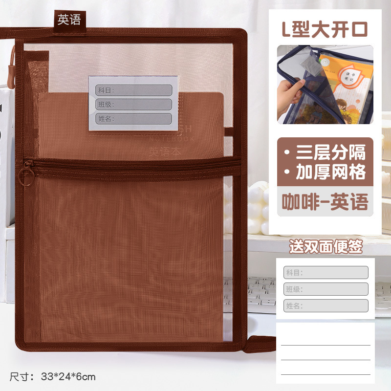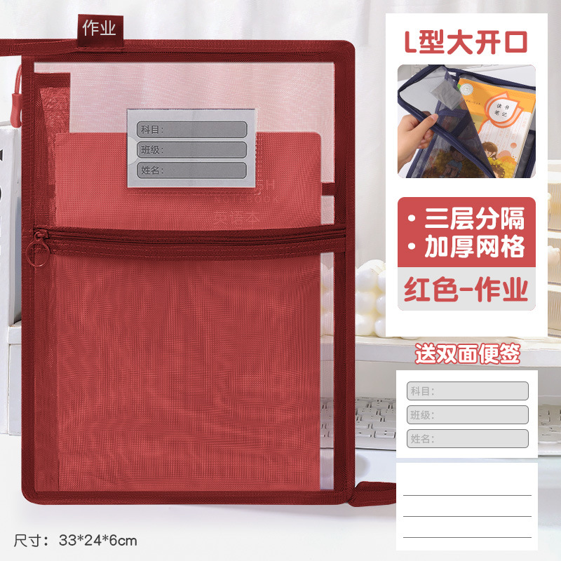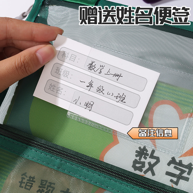 创意大容量L型网纱科目袋透明办公拉链文件袋学生手提试卷收纳袋