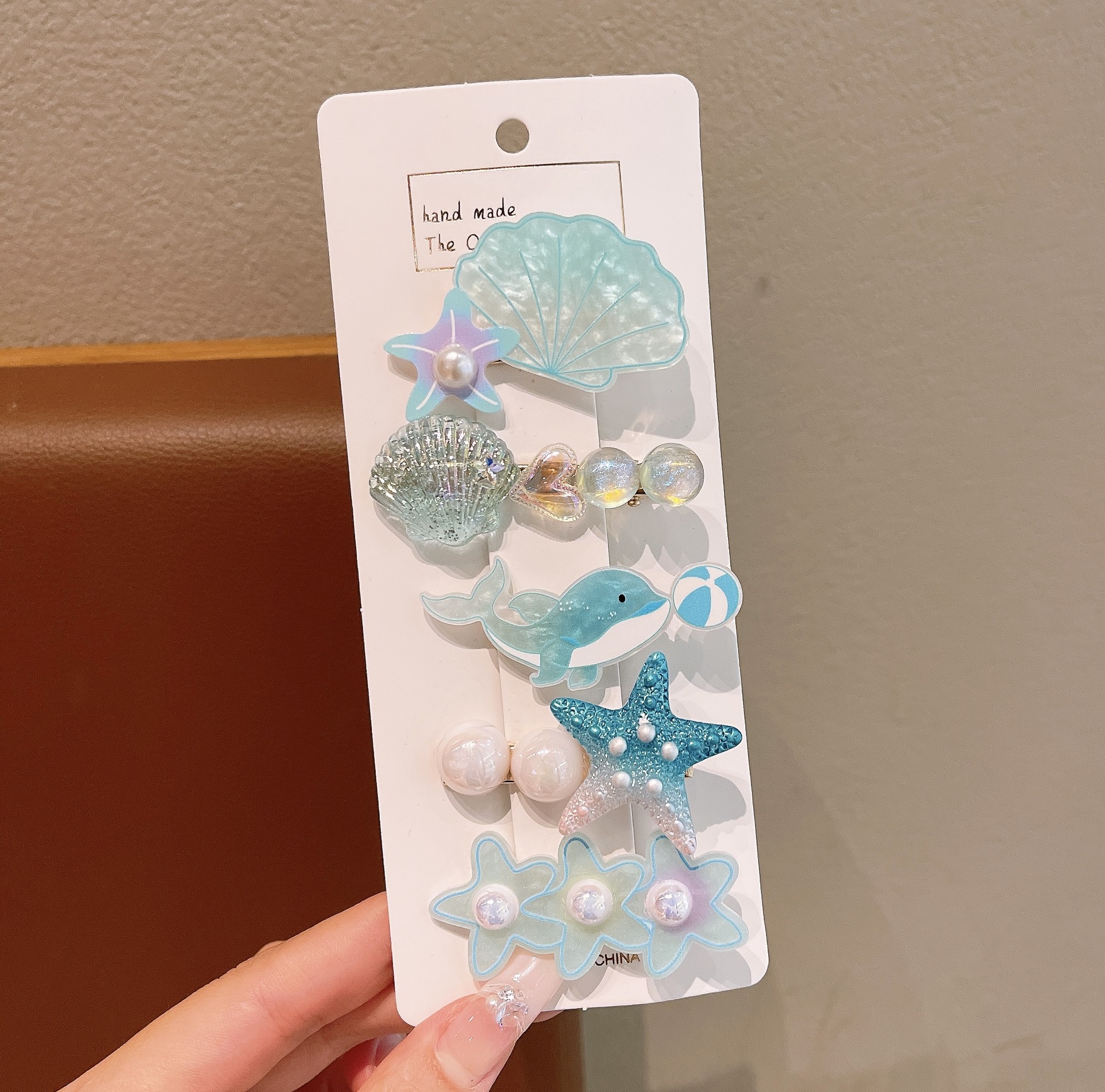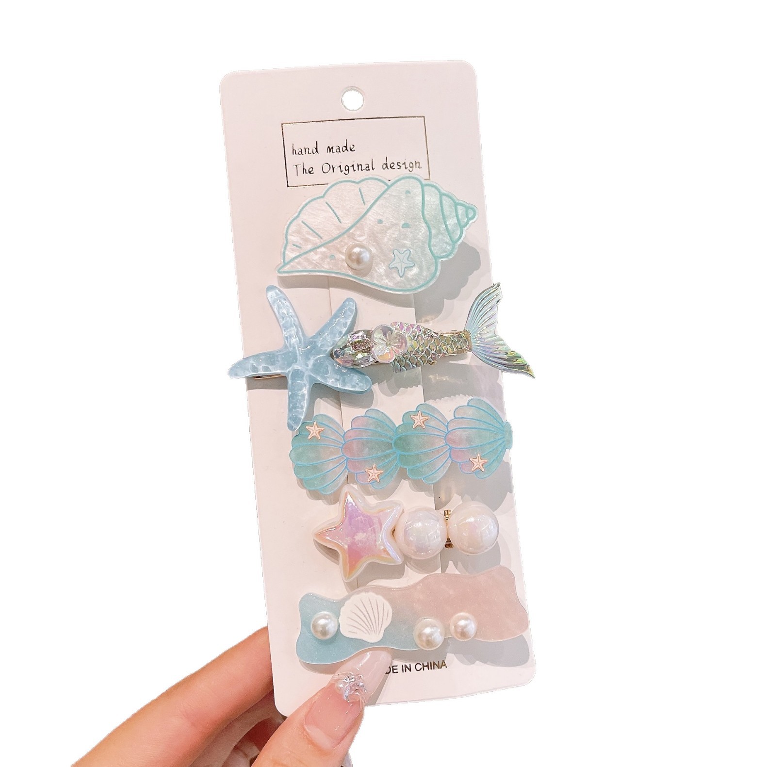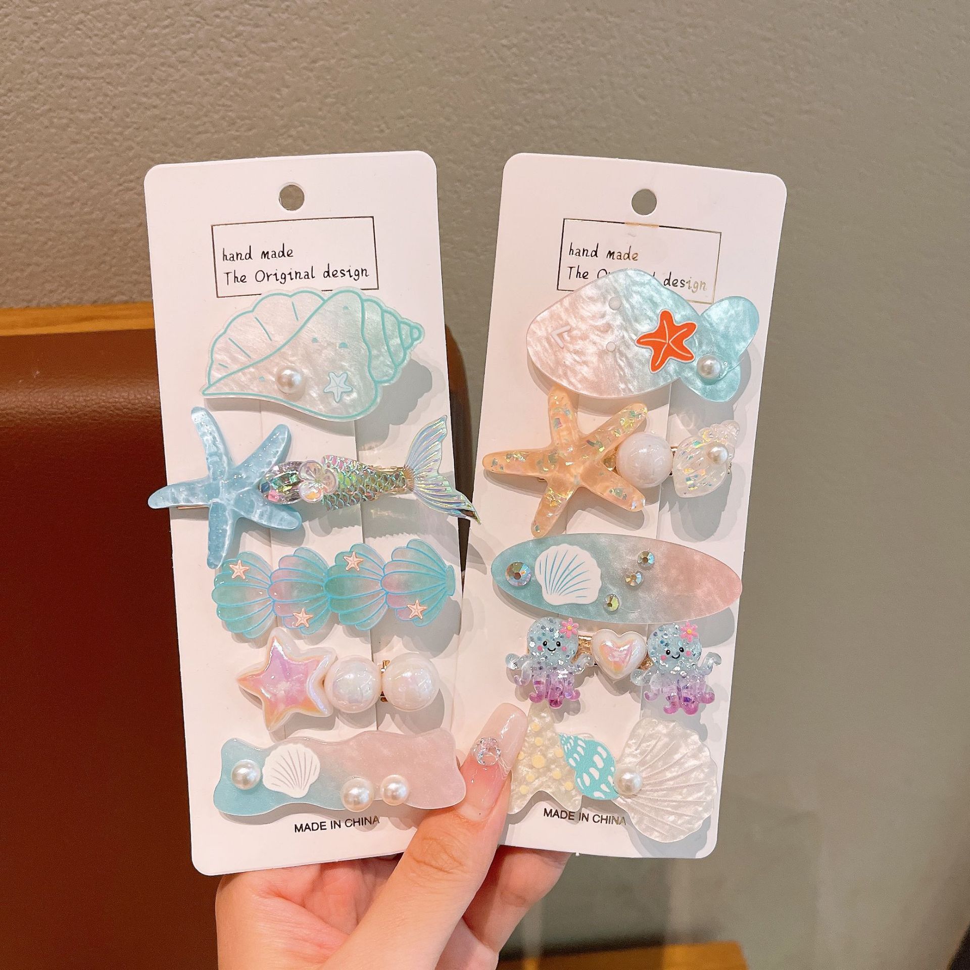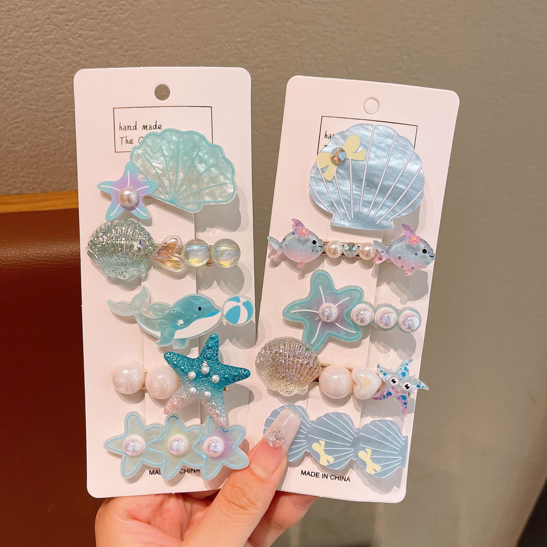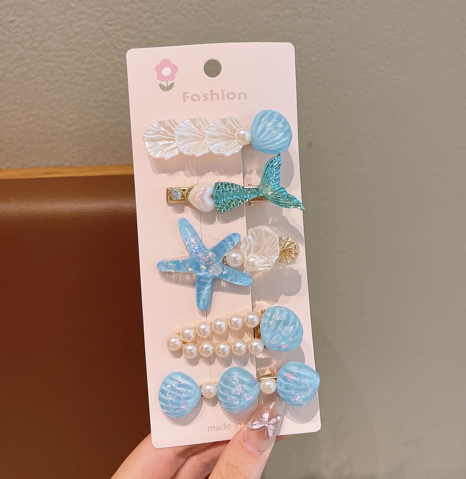 可爱波浪海星贝壳发夹刘海夹海蓝色贝壳海星醋酸高级感边夹发饰