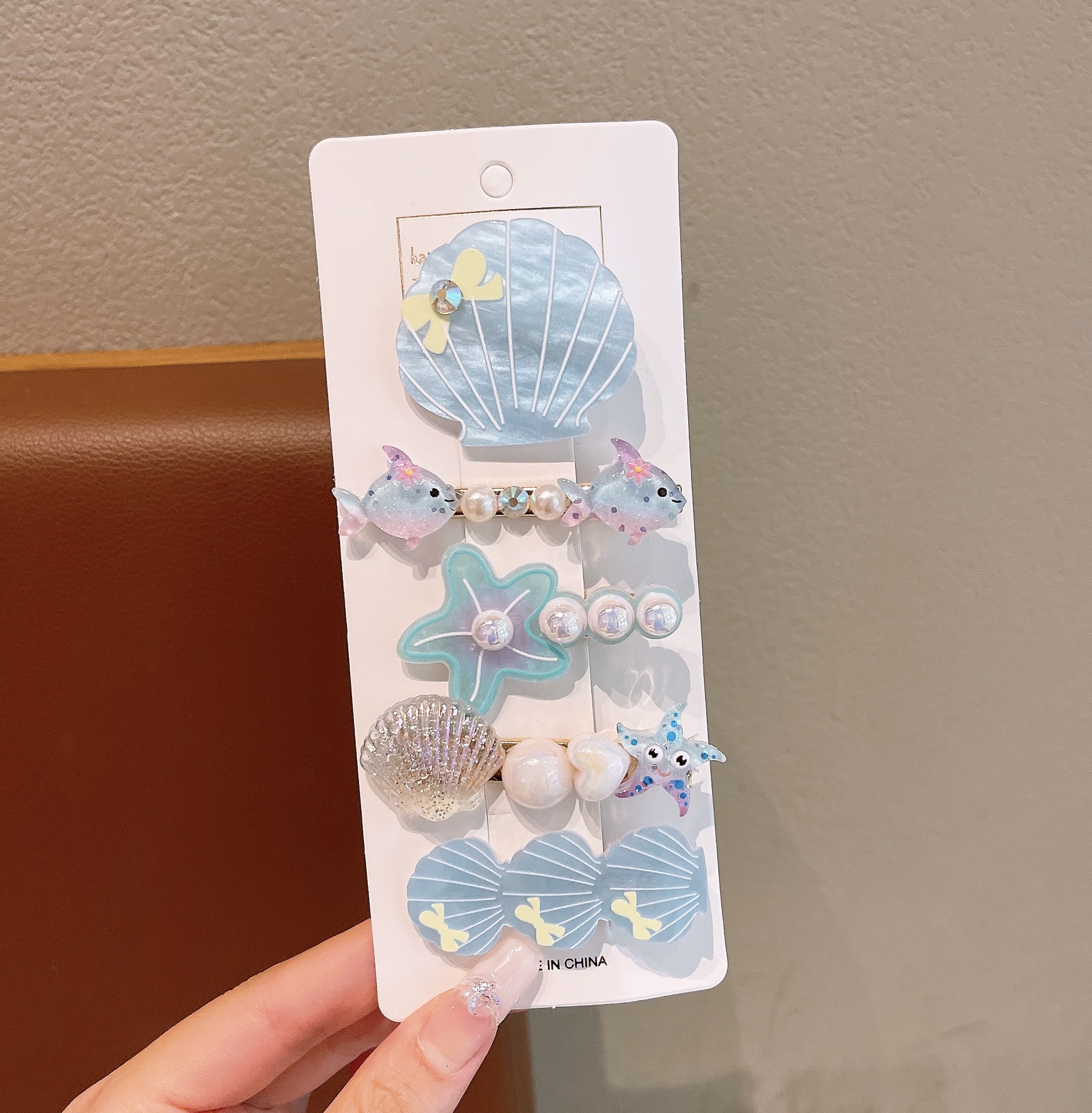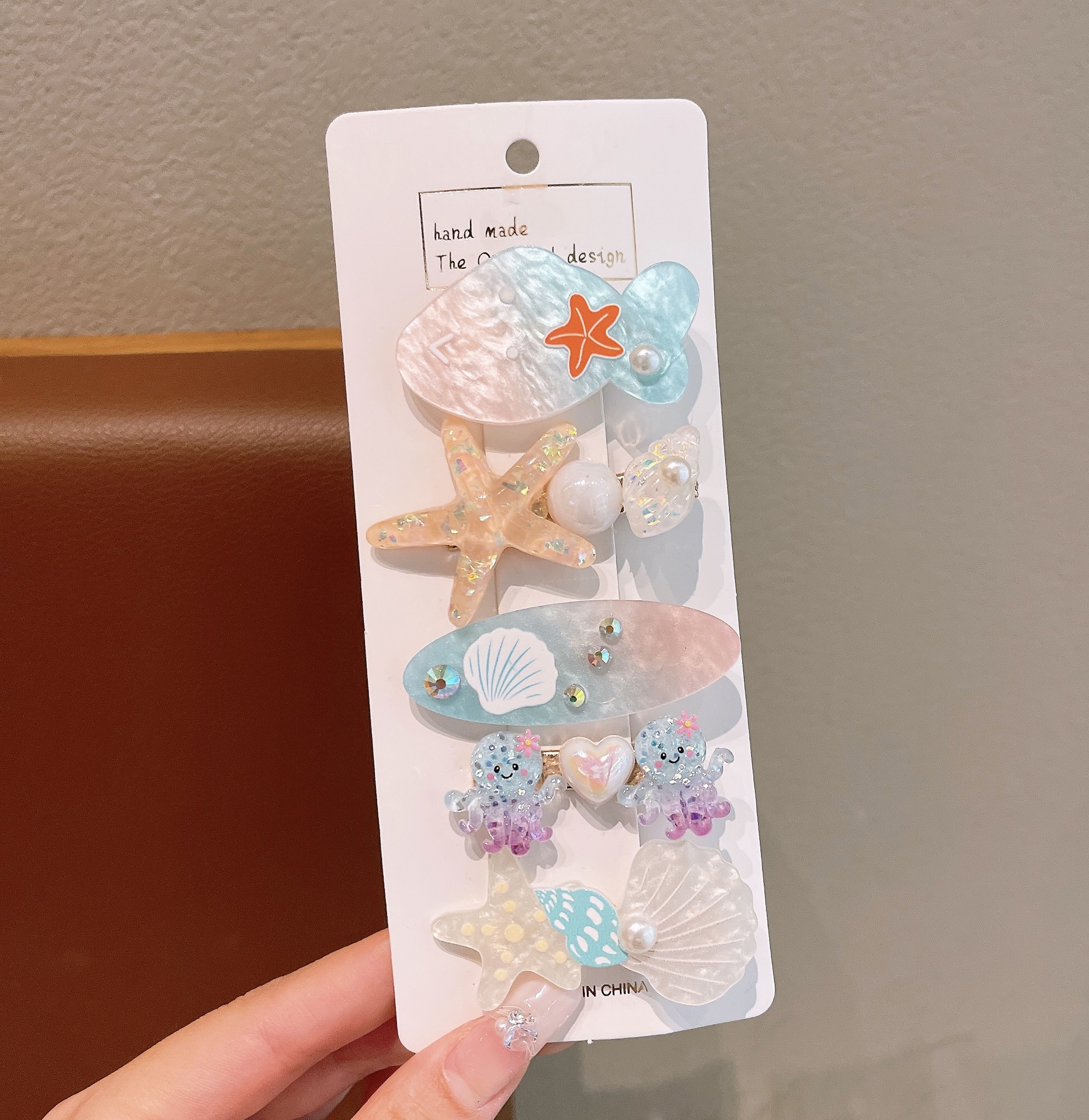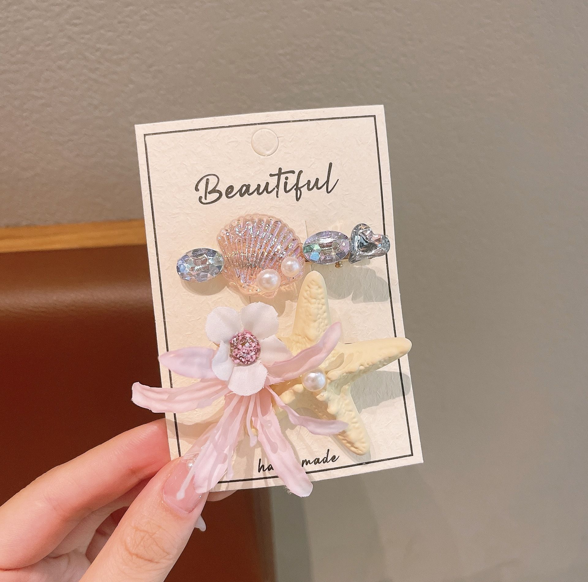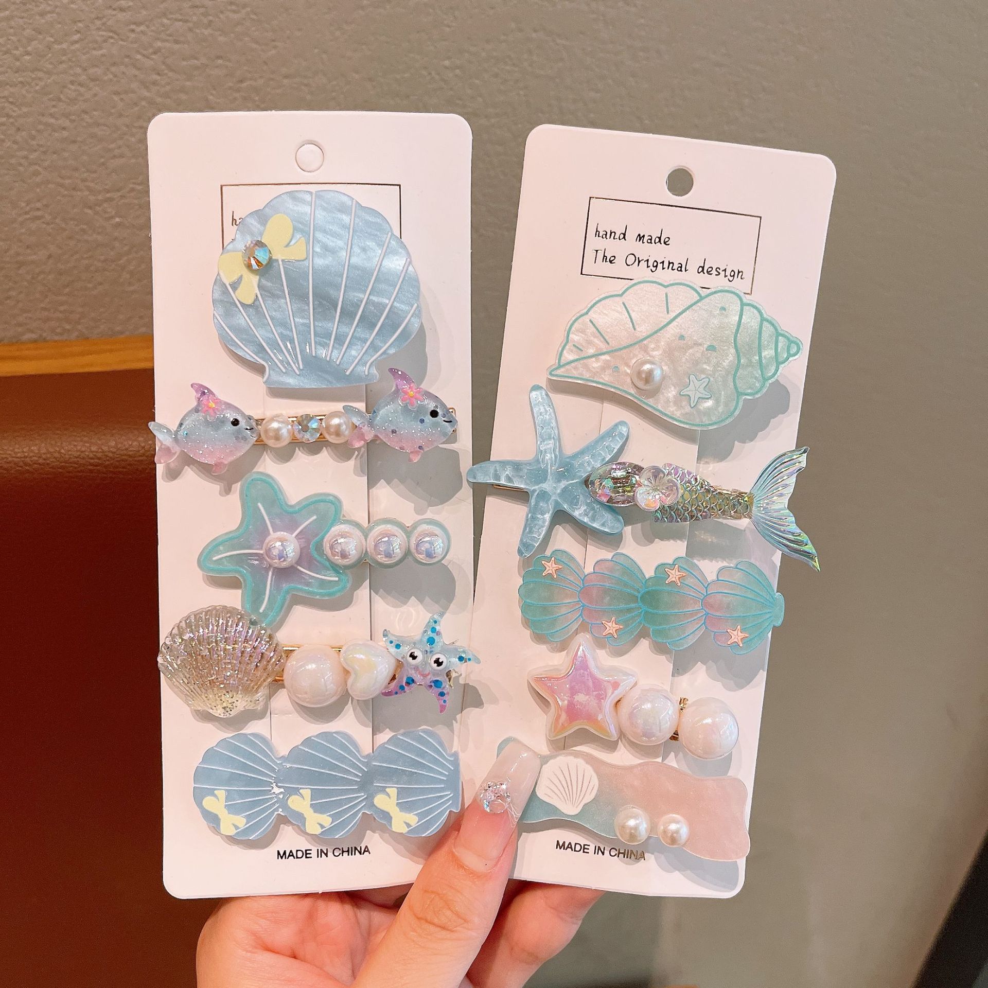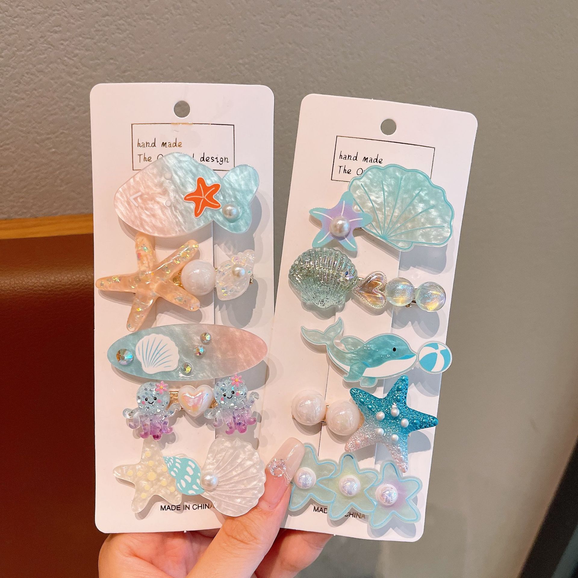 可爱波浪海星贝壳发夹刘海夹海蓝色贝壳海星醋酸高级感边夹发饰