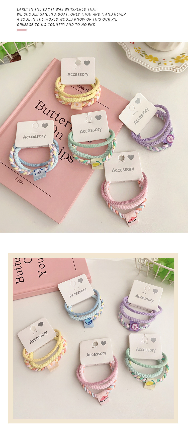糖果色麻花编织发绳双色组合加粗基础发圈高弹力扎头发头绳皮筋女