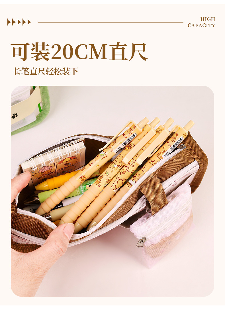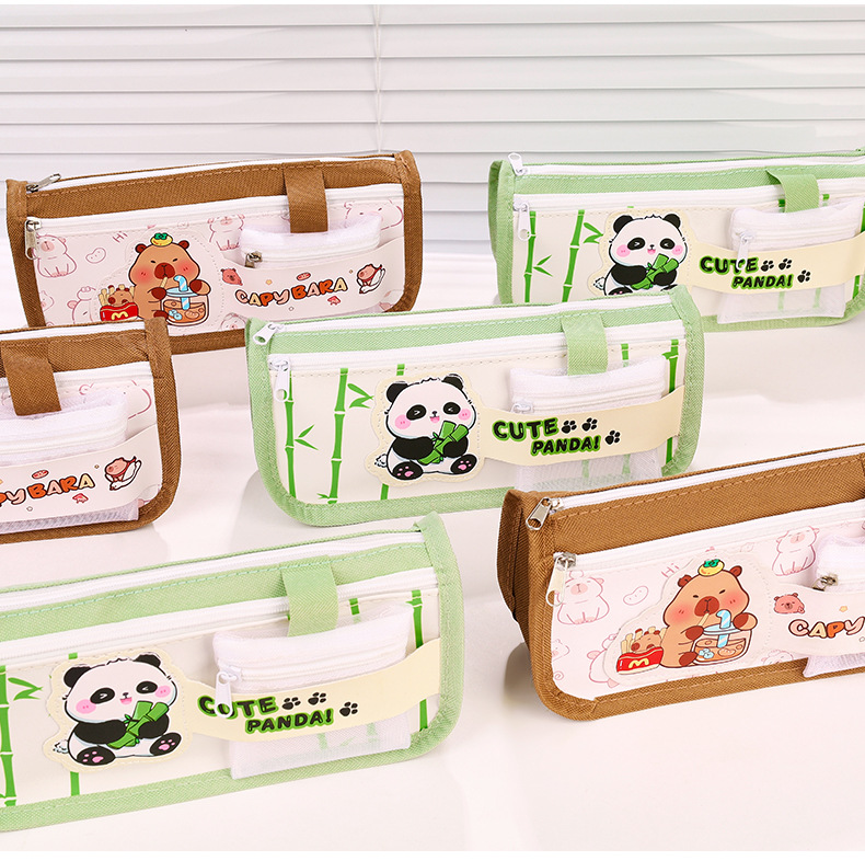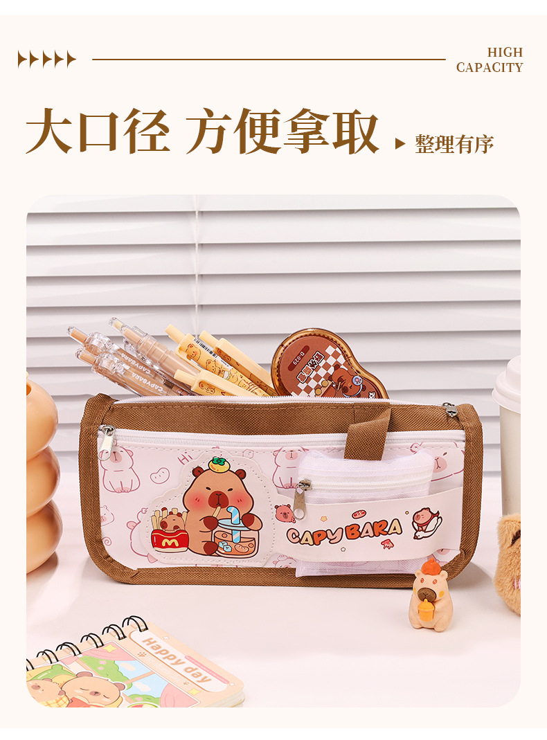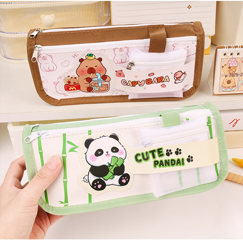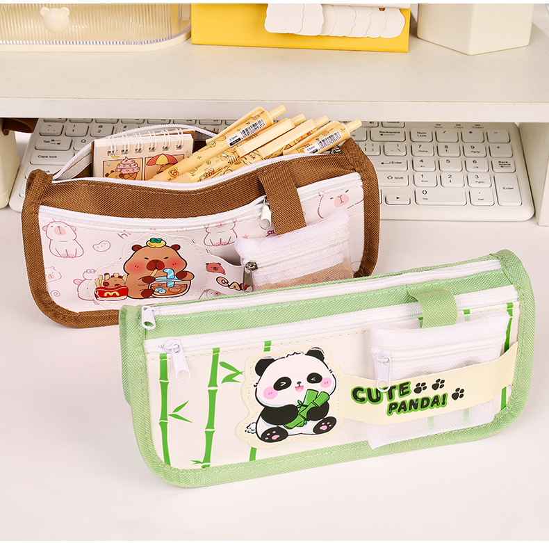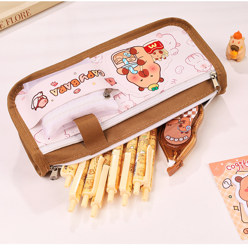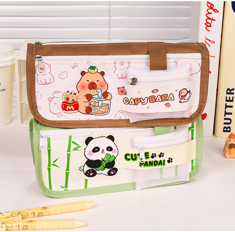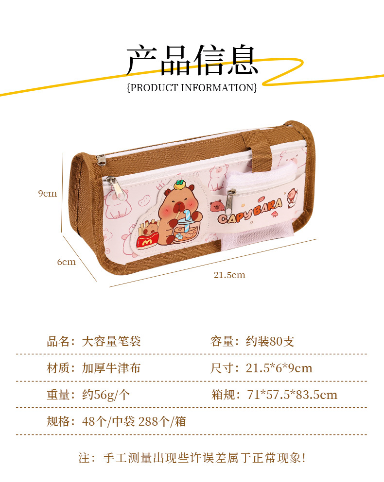 卡通双层大容量牛津布笔袋小学生高颜值卡皮巴拉铅笔袋文具袋批发