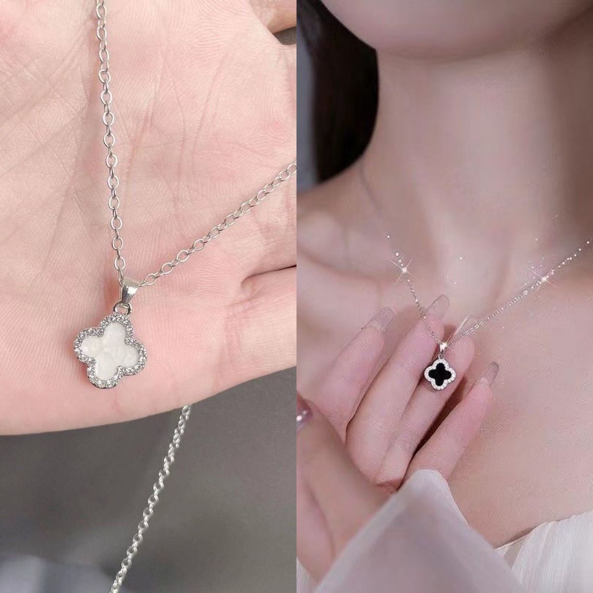 跨境虾皮款四叶草项链女日韩时候简约款五花好运百搭手饰