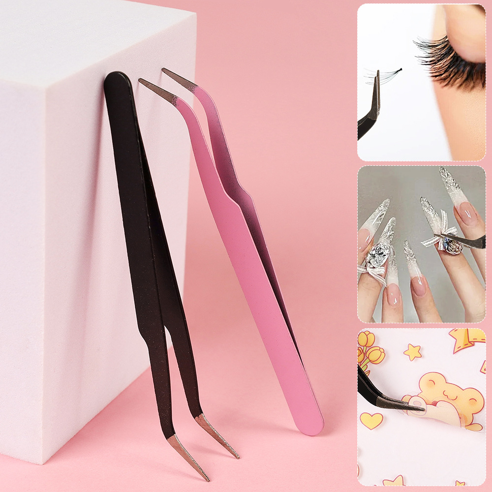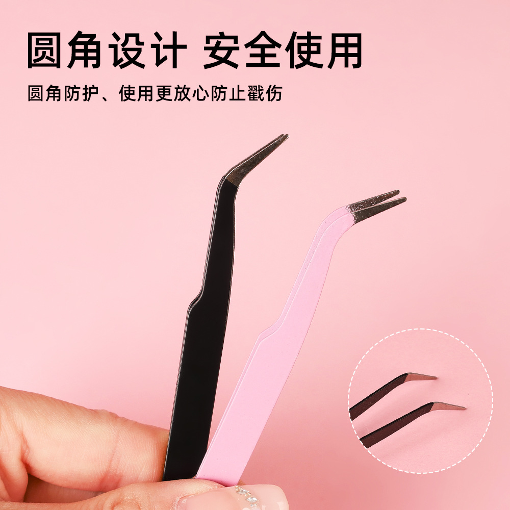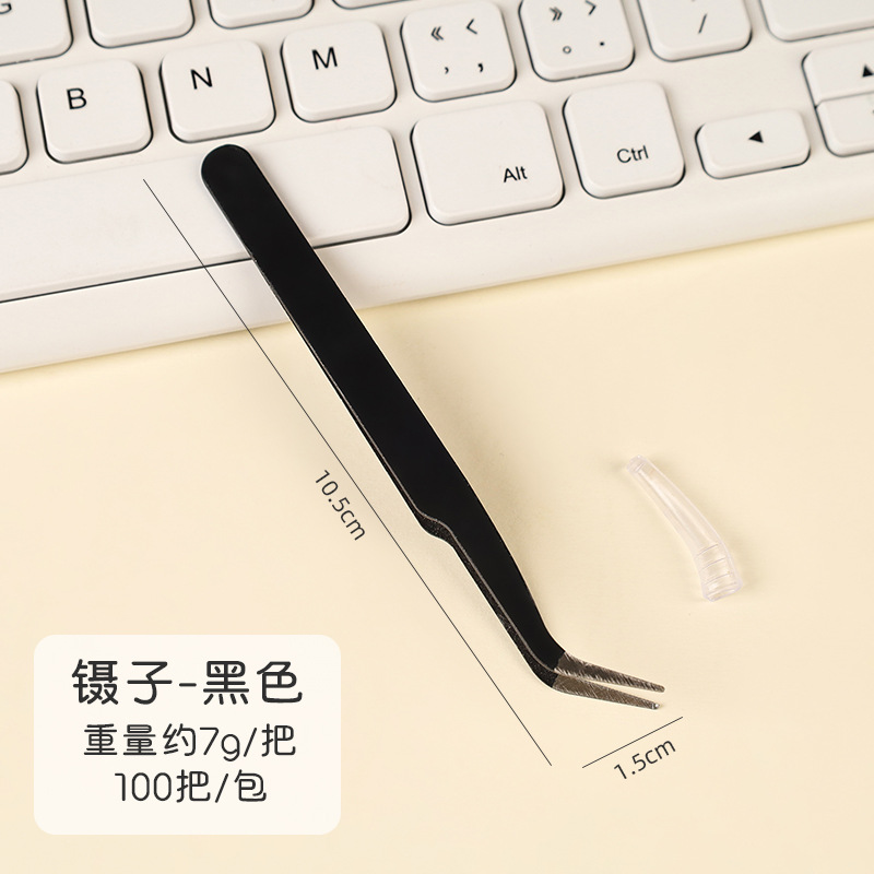 不锈钢黑色弯头镊子加厚美甲镊子手工手帐工具不锈钢睫毛镊子批发