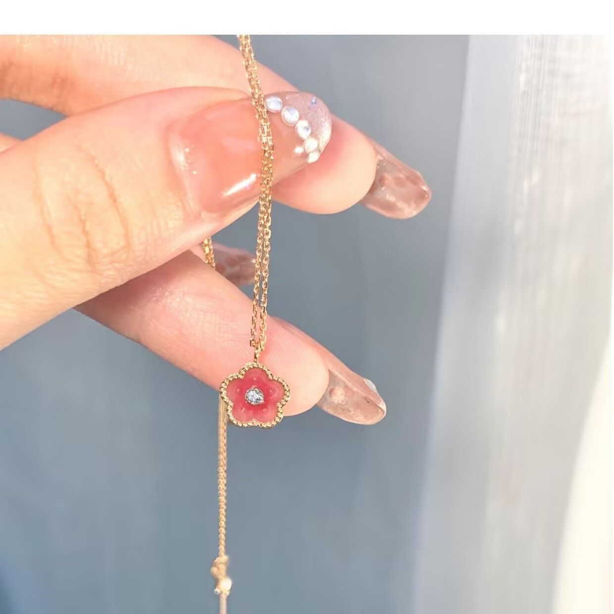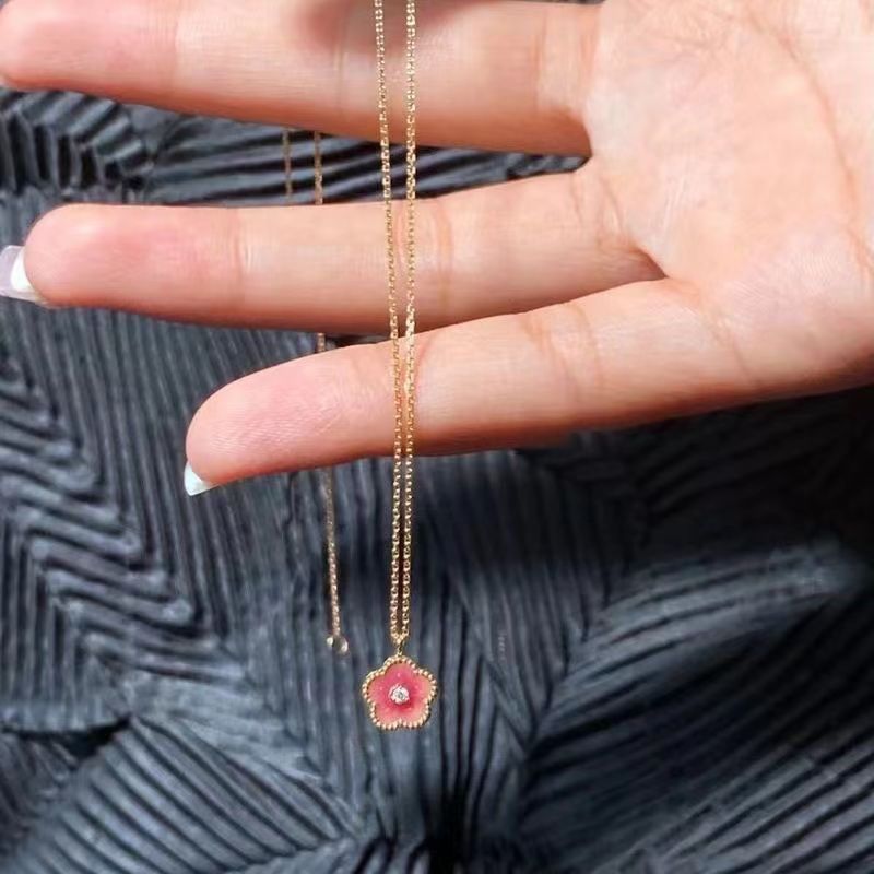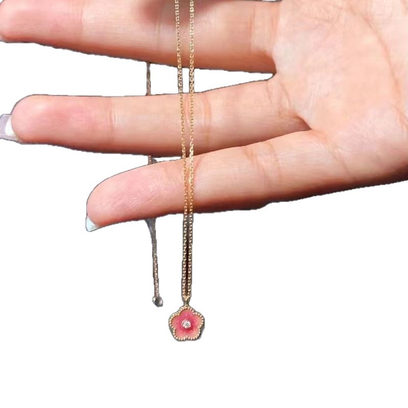 新款小桃花项链女粉红温柔仙气ins小众设计气质高级感甜美锁骨链