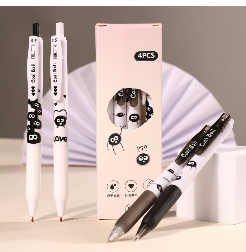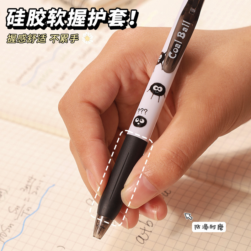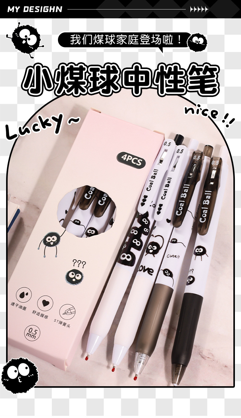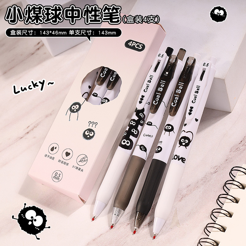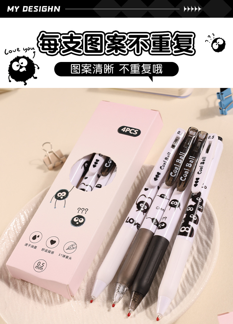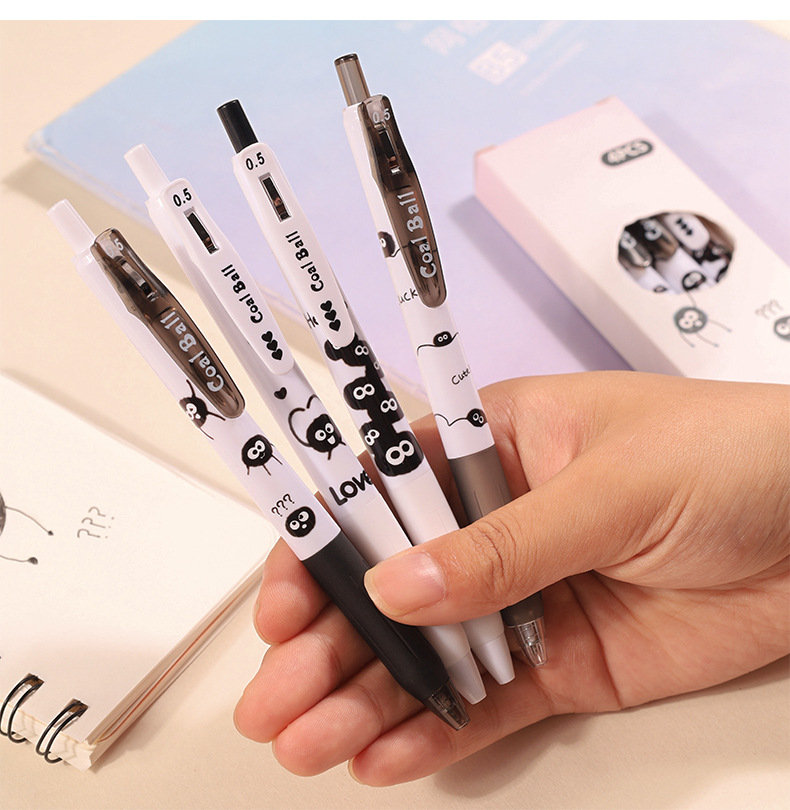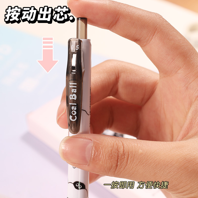 创意小煤球按动笔套装学生高颜值0.5顺滑ST头速干中性笔文具批发