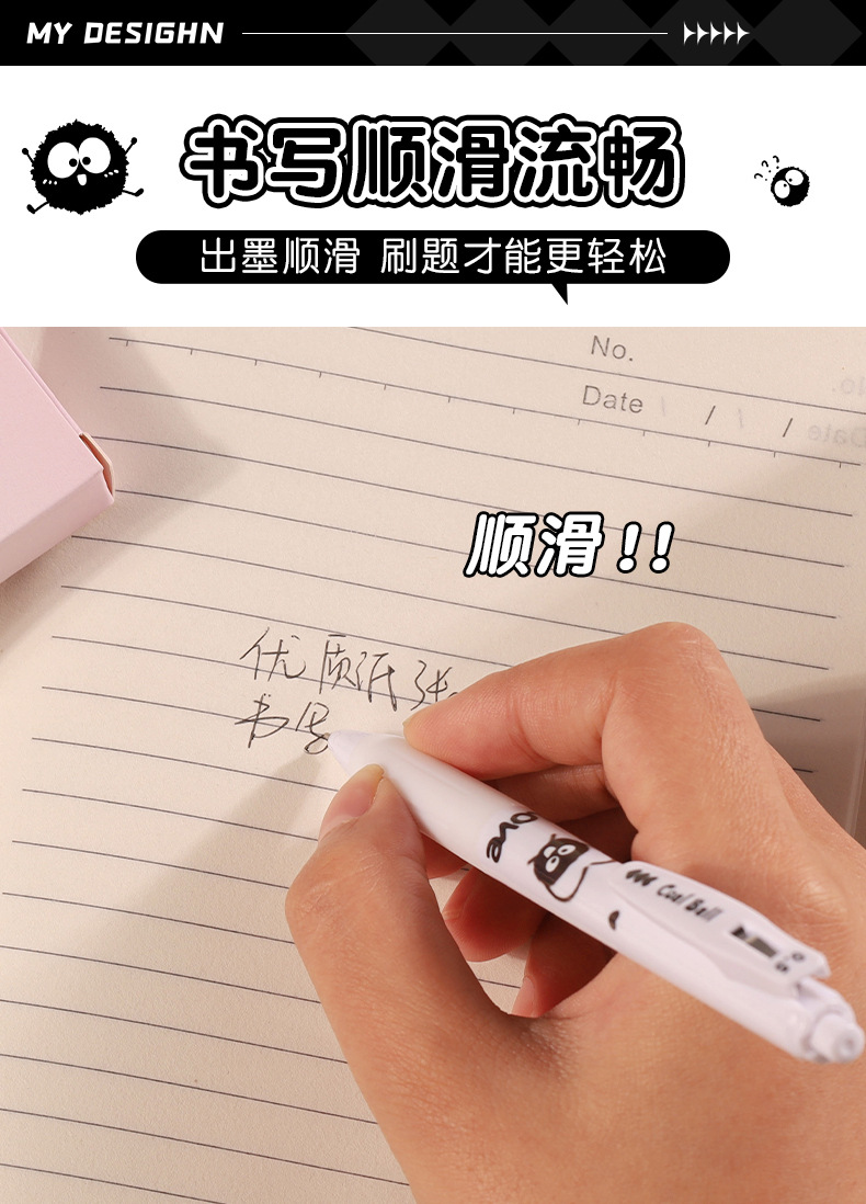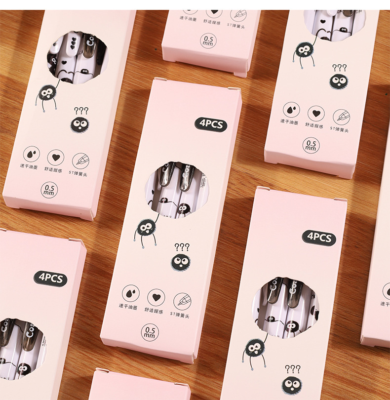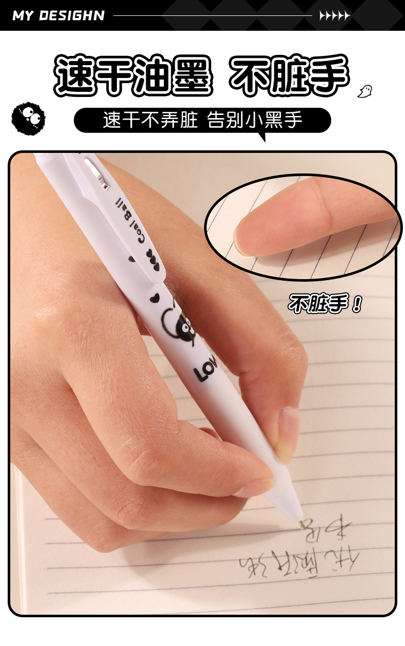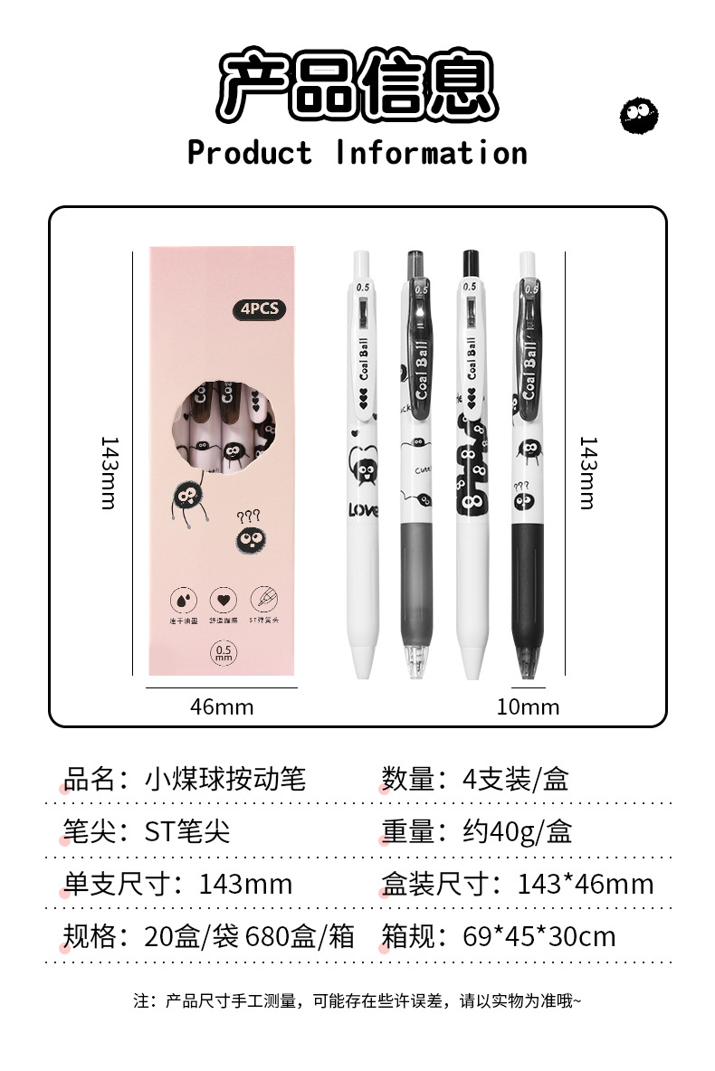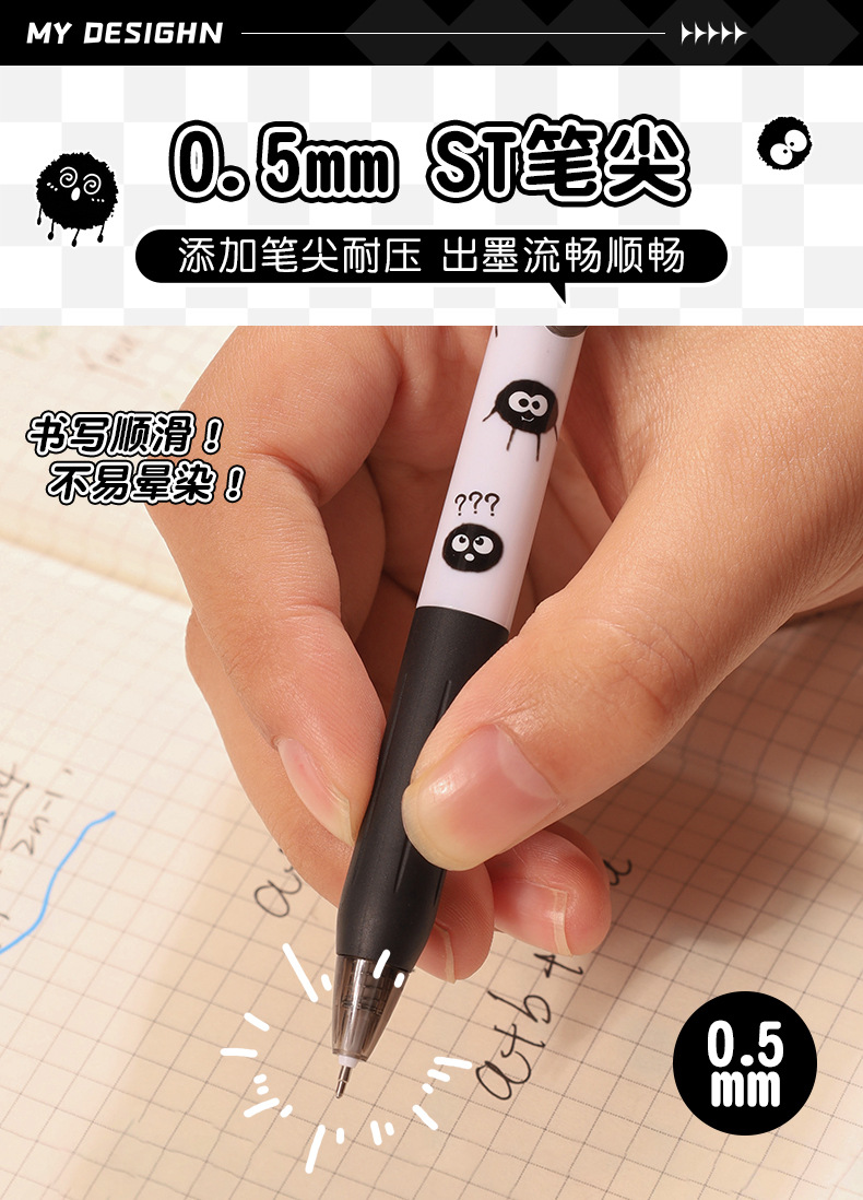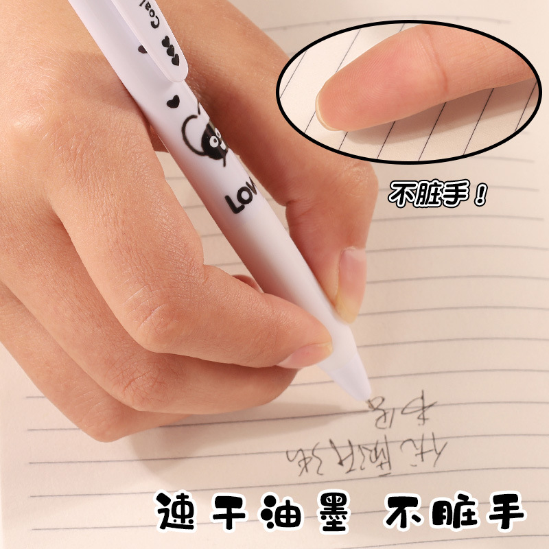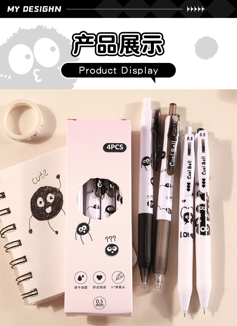 创意小煤球按动笔套装学生高颜值0.5顺滑ST头速干中性笔文具批发