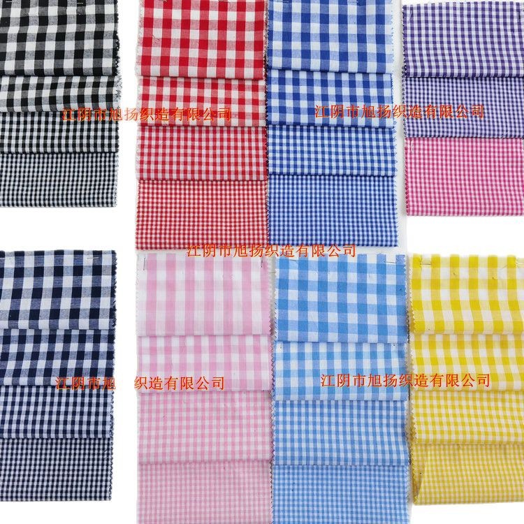 现货32支涤棉格子布 高密度100平方克 高棉含量 色织平纹格子布