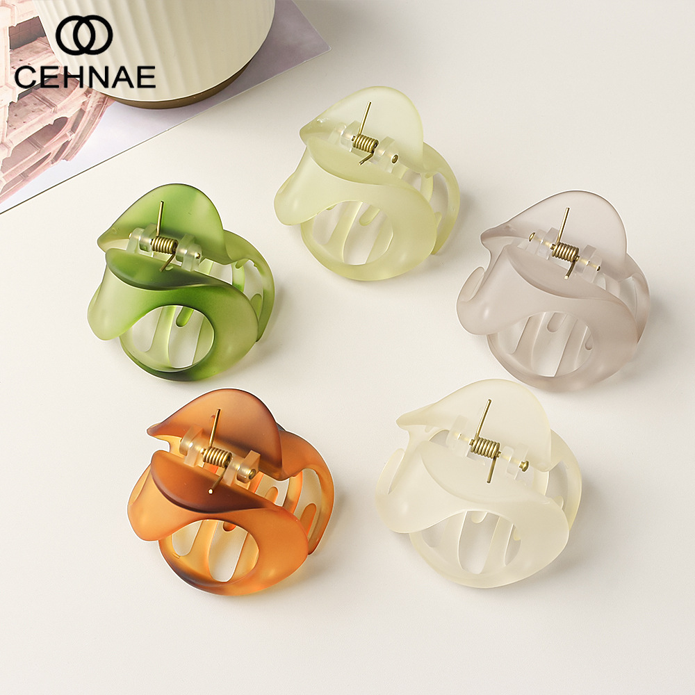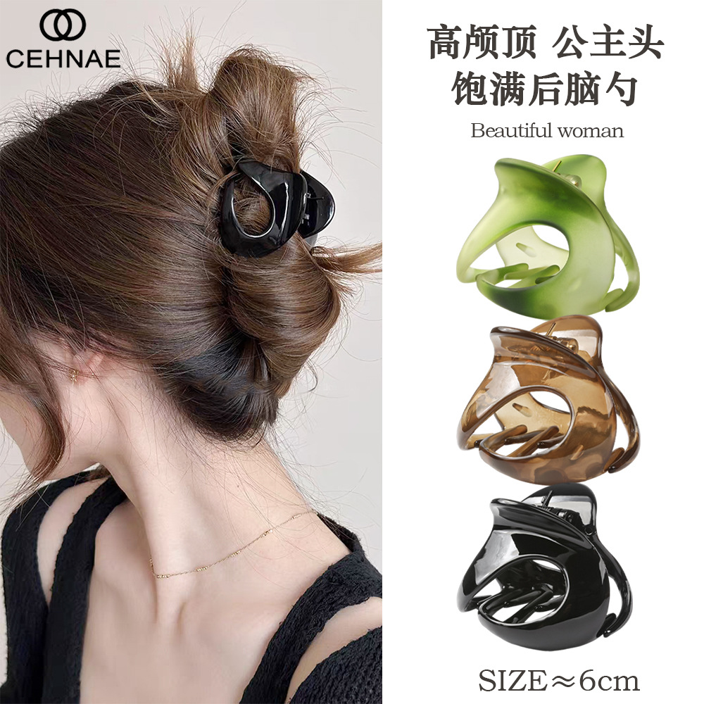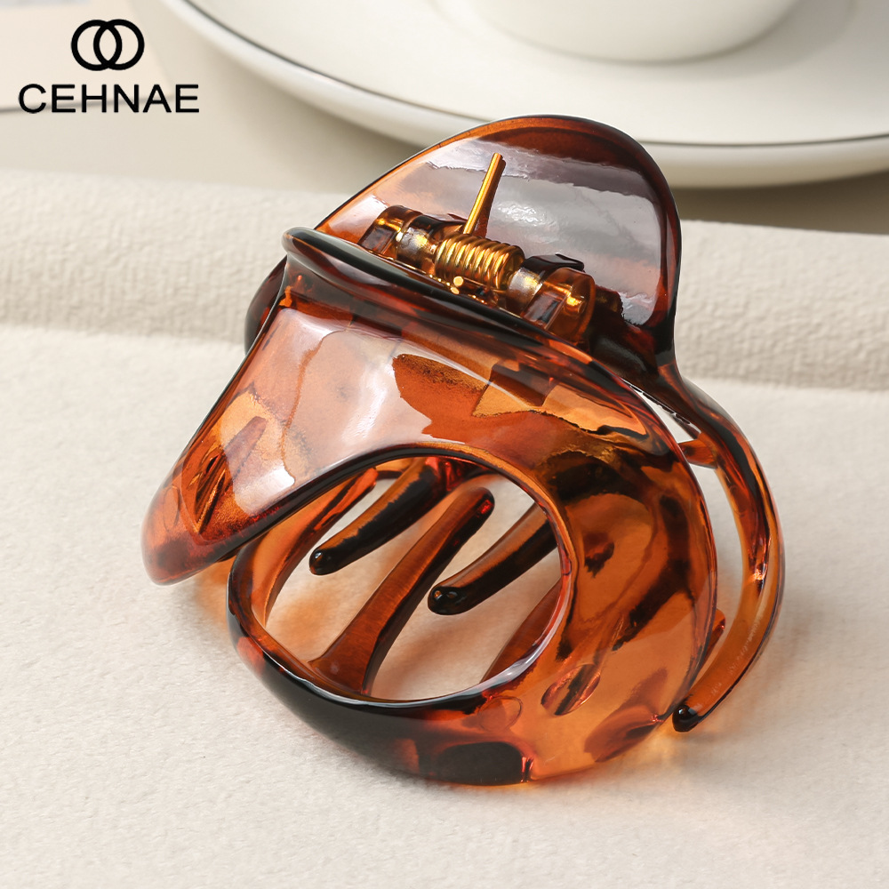 新款镂空抓夹磨砂质感大号琥珀色鲨鱼夹时尚通勤发饰发夹发抓批发
