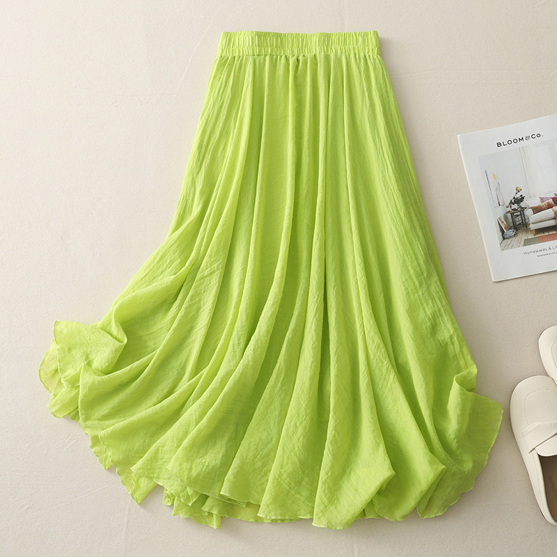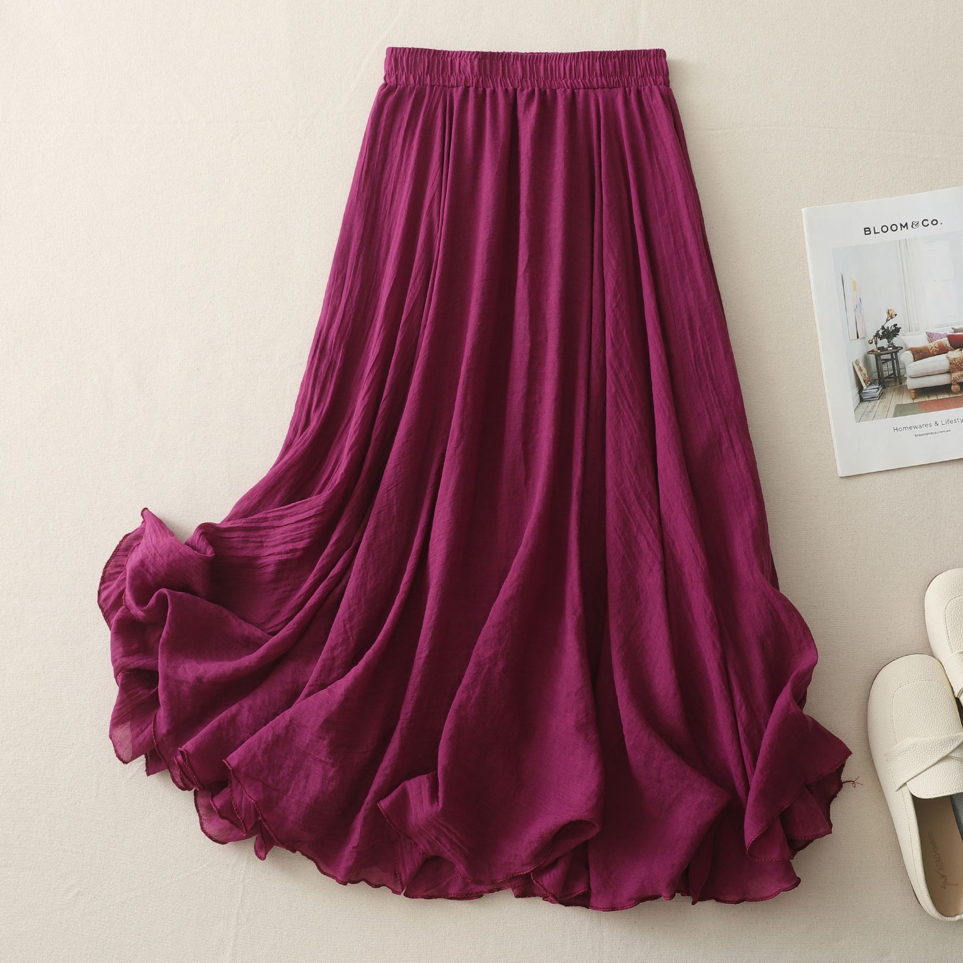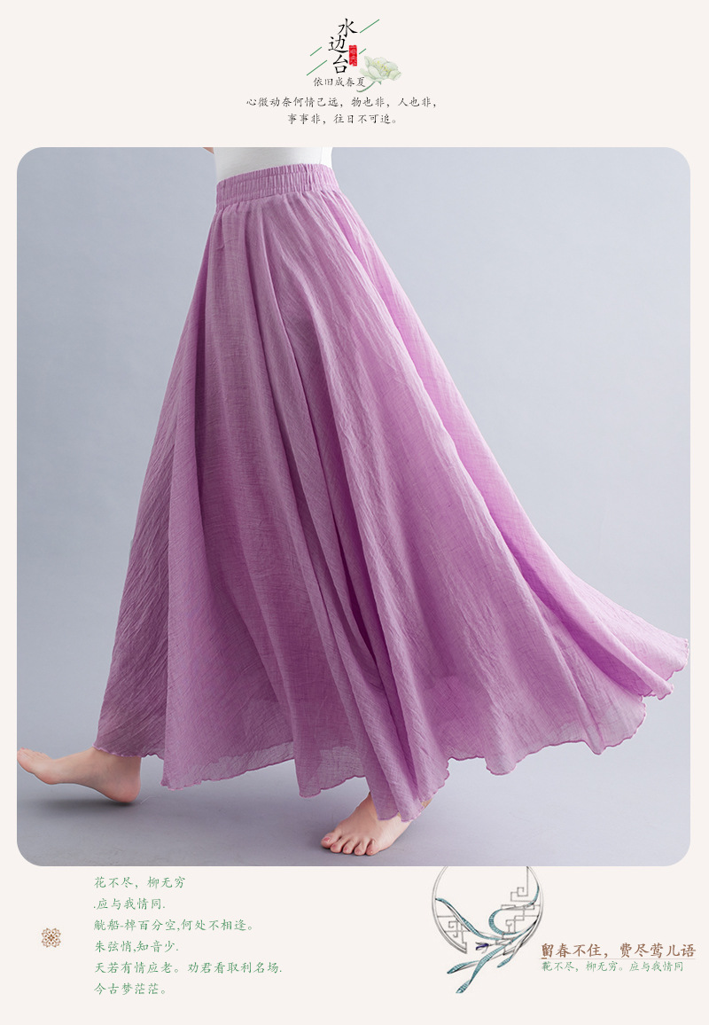 森女文艺大码棉麻半身裙松紧腰A字裙长款纯色民族风大摆裙 24色