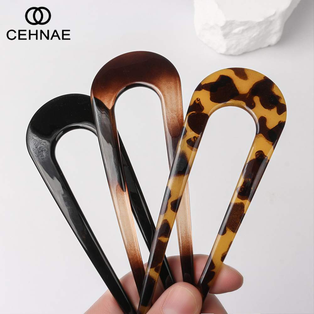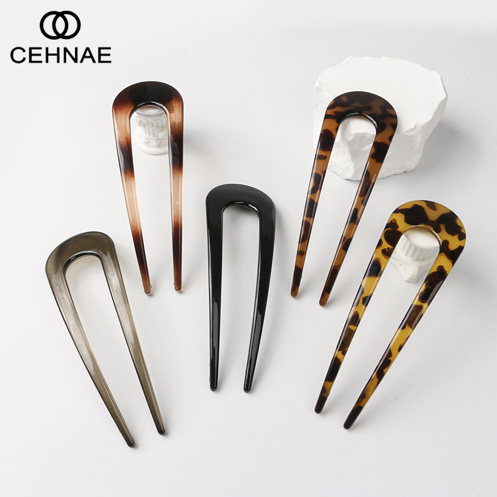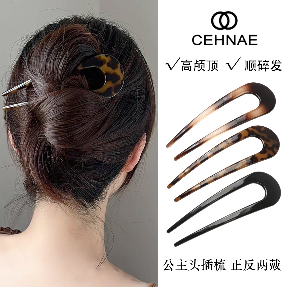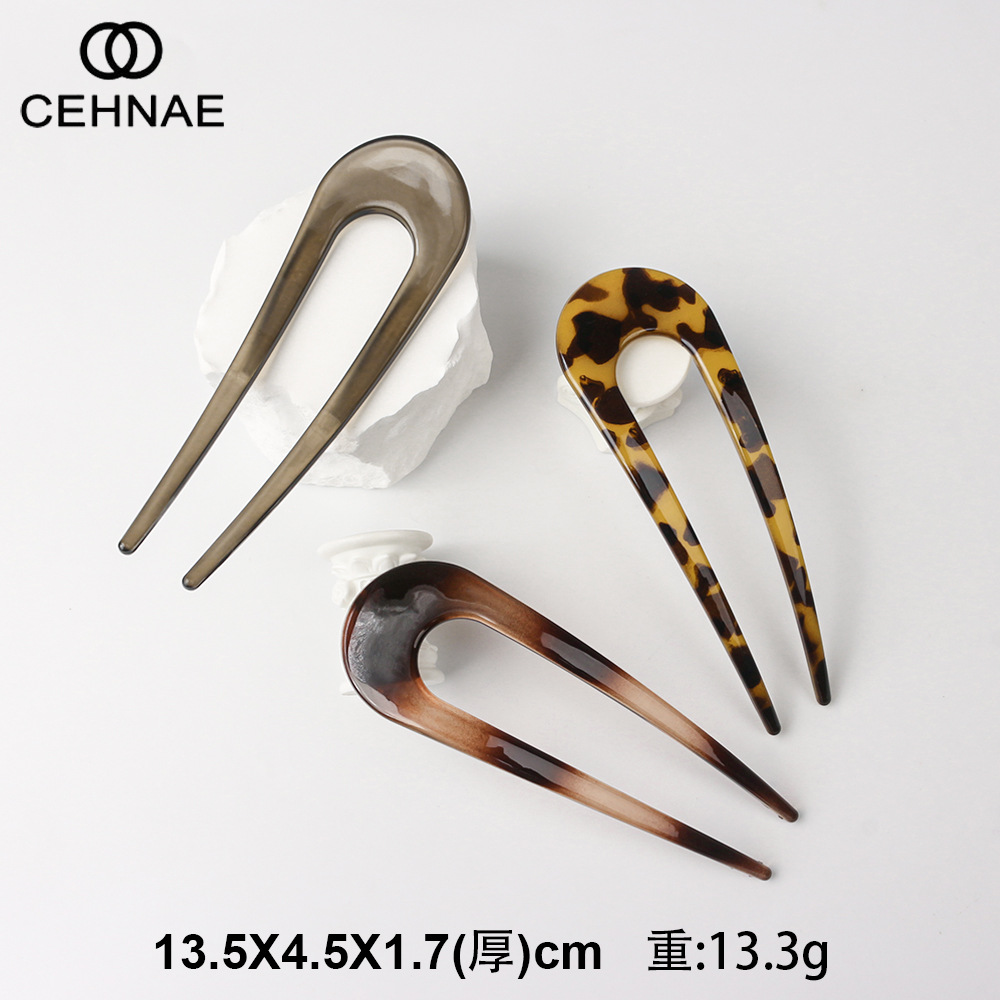 新款大号簪子新中式PC料U型发簪女丸子头盘发插梳后脑勺头饰发叉