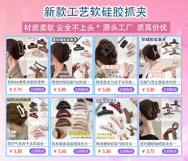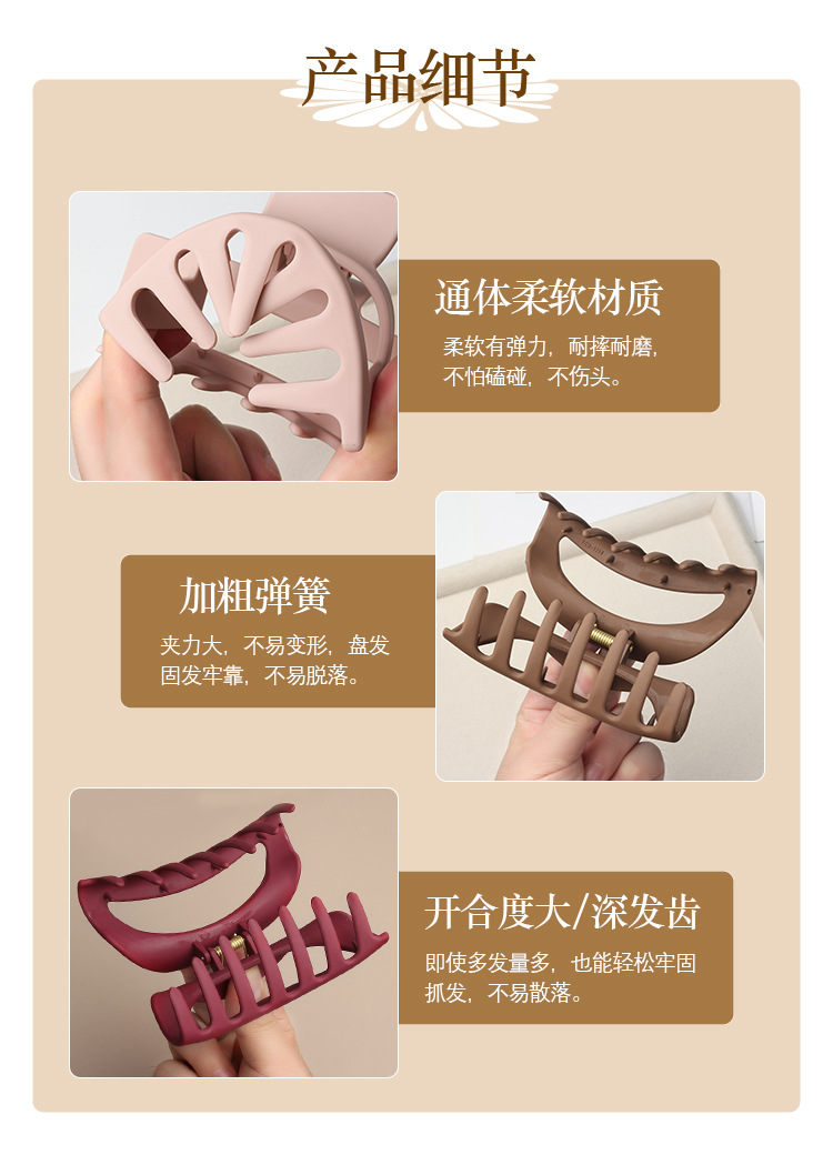 TCB硅胶抓夹高级感盘发后脑勺风衣架款纯色鲨鱼发夹简约橡皮质感