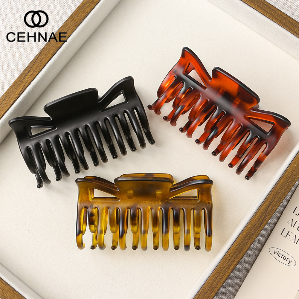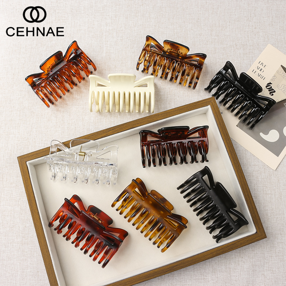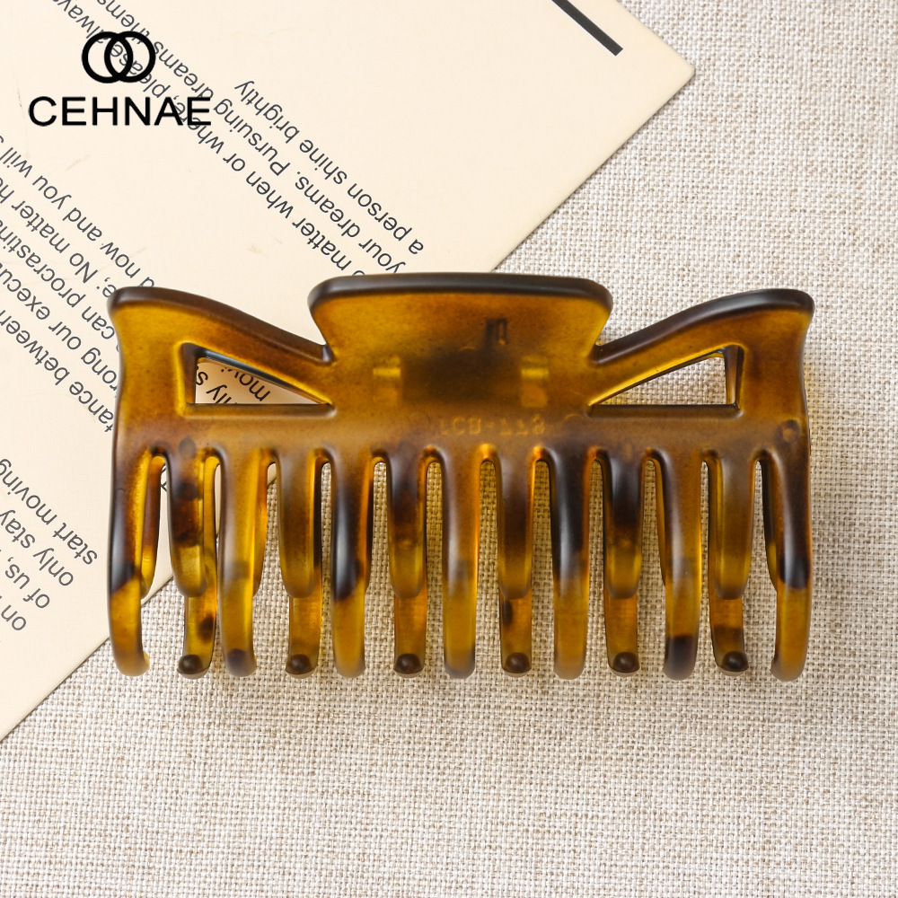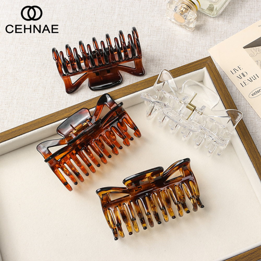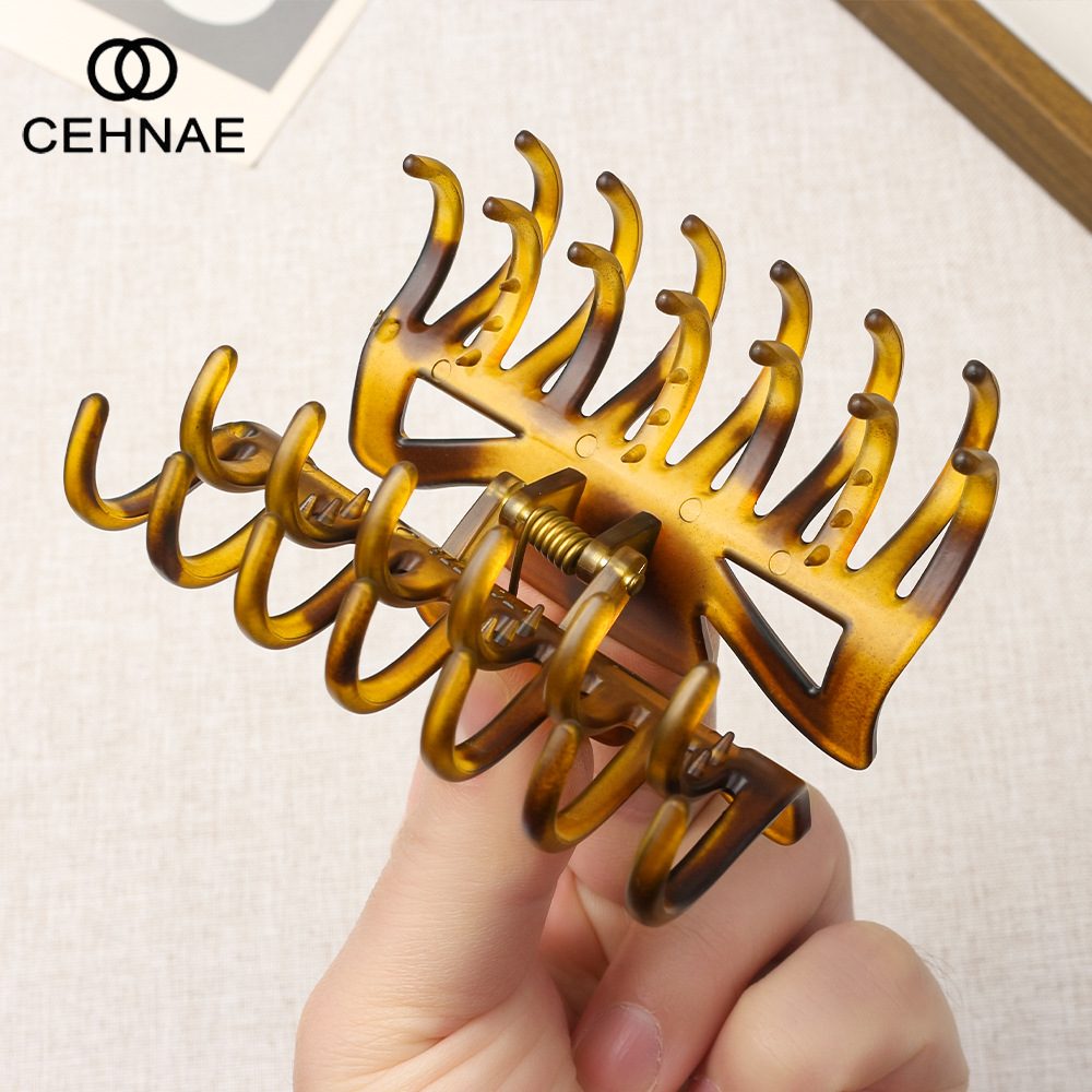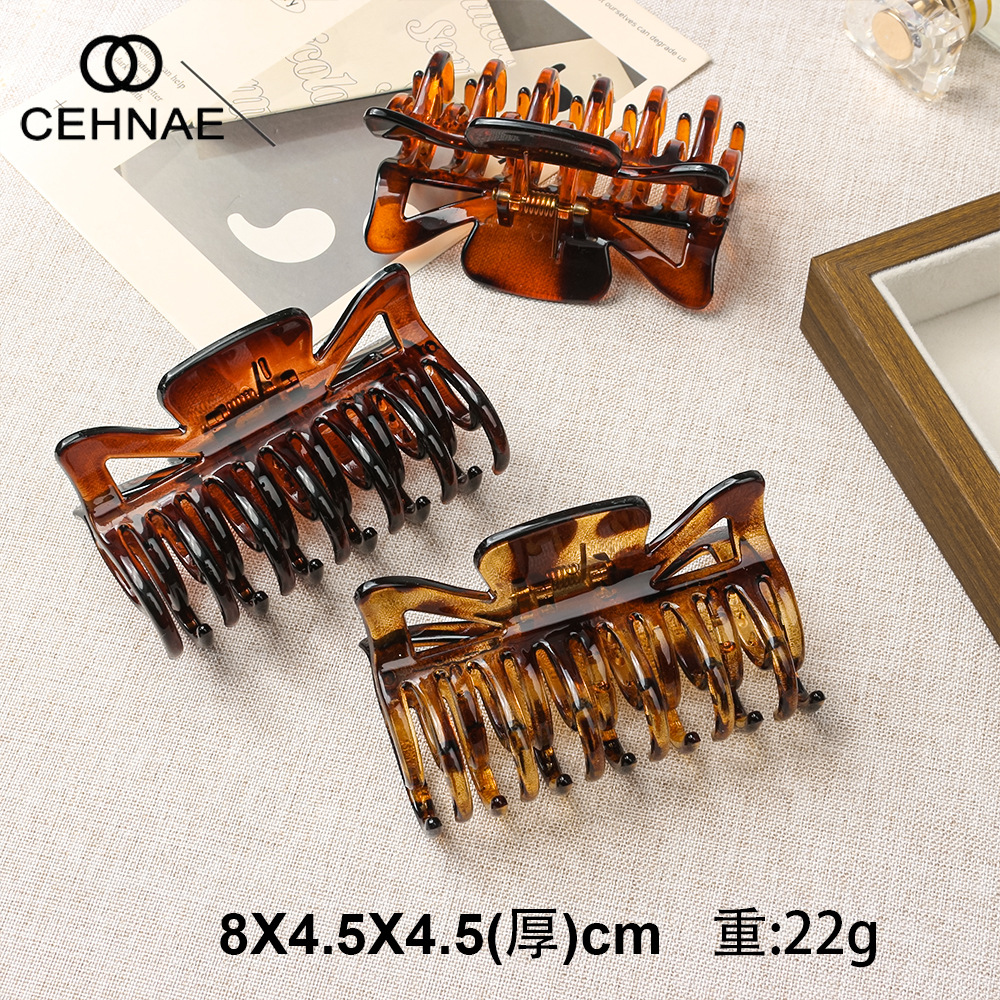 韩版女士简约琥珀透明色发夹双齿抓夹后脑勺盘发马尾夹子发饰批发