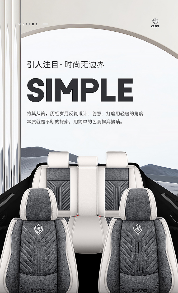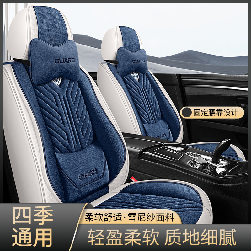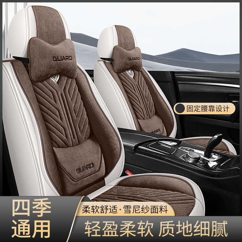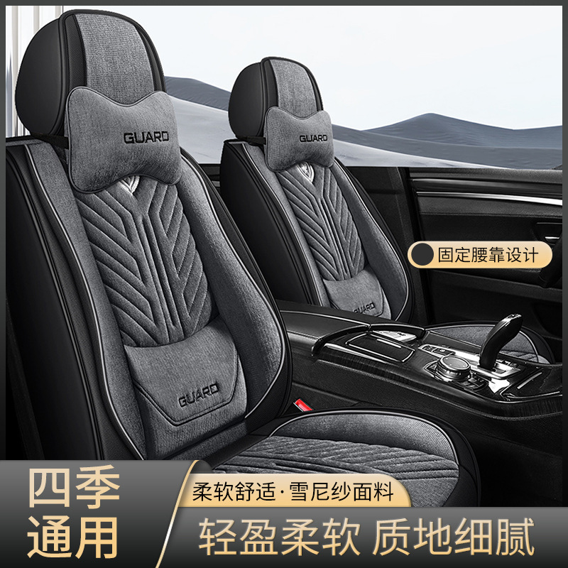 汽车坐垫 全包亚麻布艺座套五座套四季通用围透气座套跨境亚马逊
