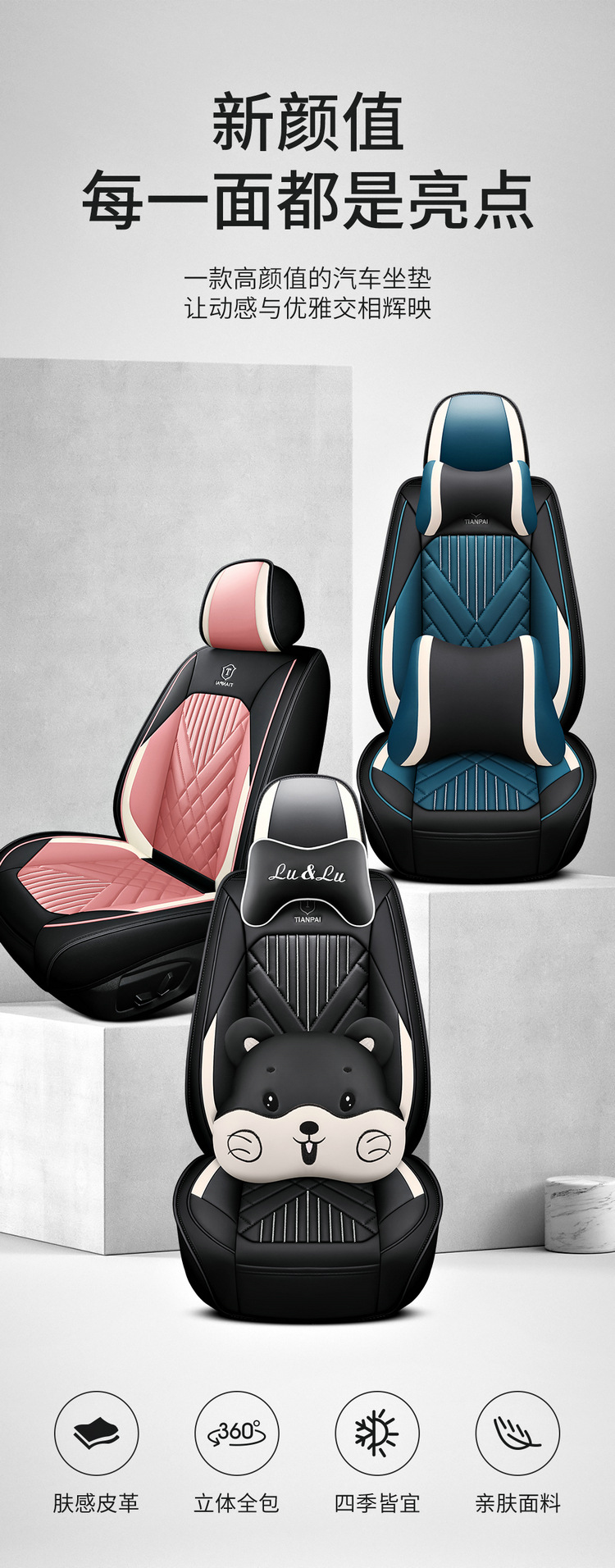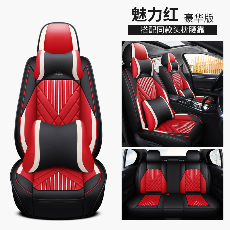 新款汽车坐垫四季通用固定腰靠全包围纳帕皮耐磨全皮座套 五座座