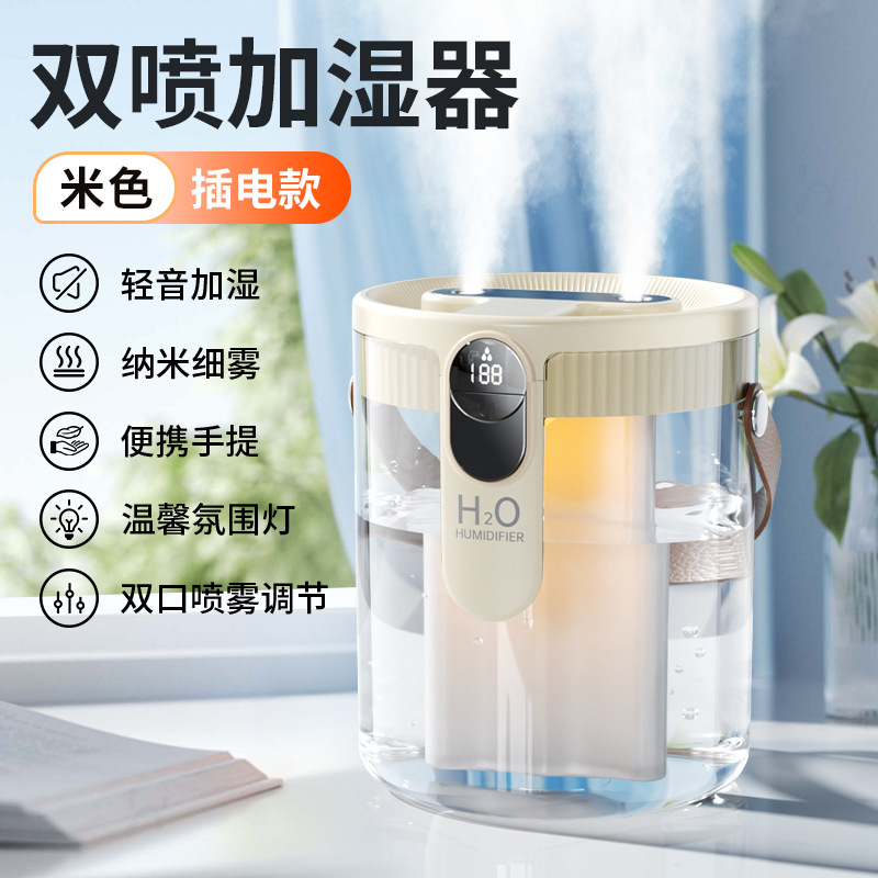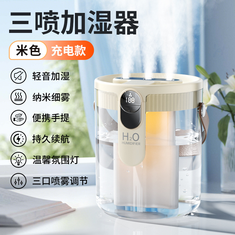 新款1.5L加湿器家用轻音卧室三喷大雾量无线便携式办公室桌面小型