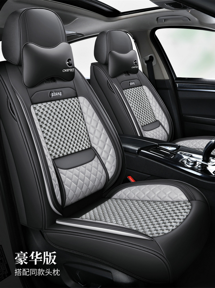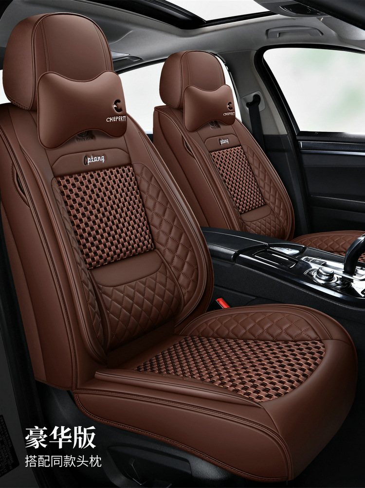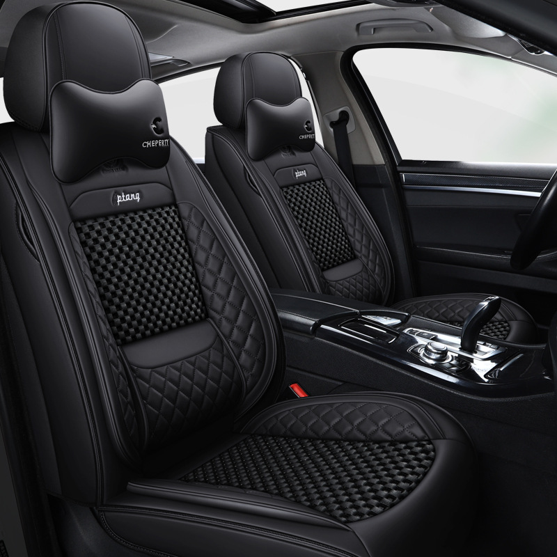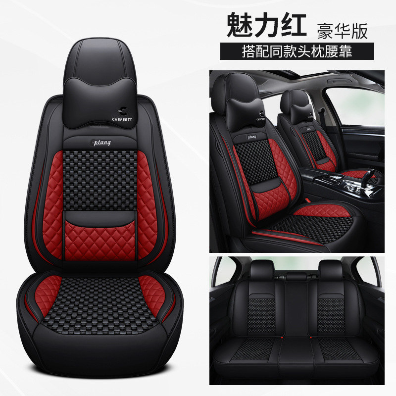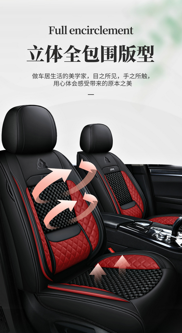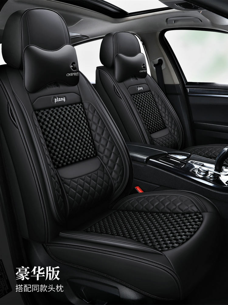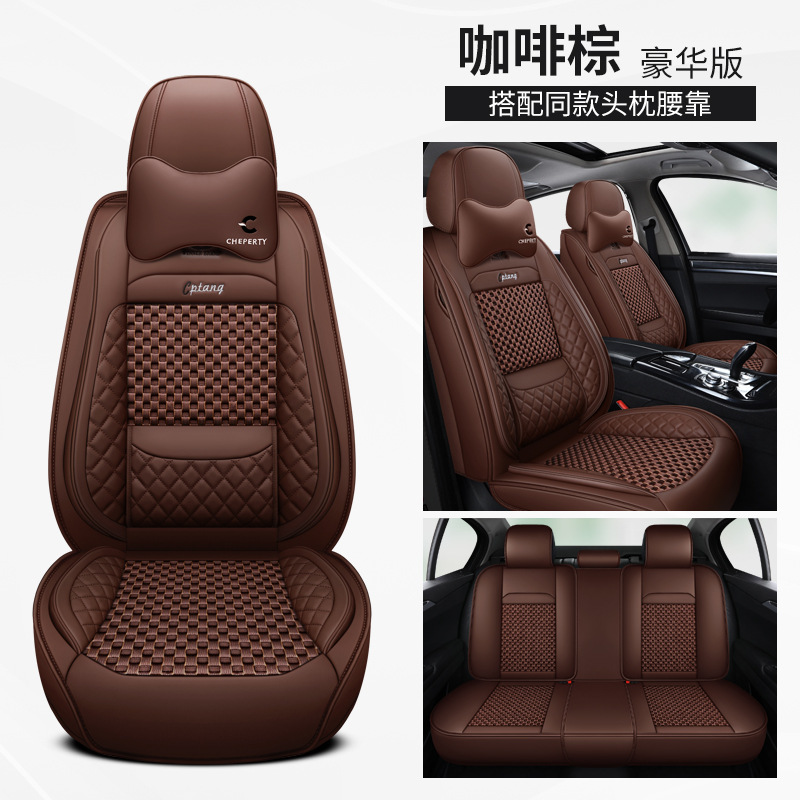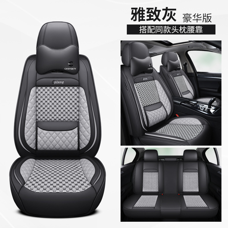 跨境热销款皮加冰丝四季通用透气全包围汽车坐垫适用百分之95车型