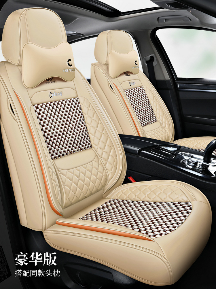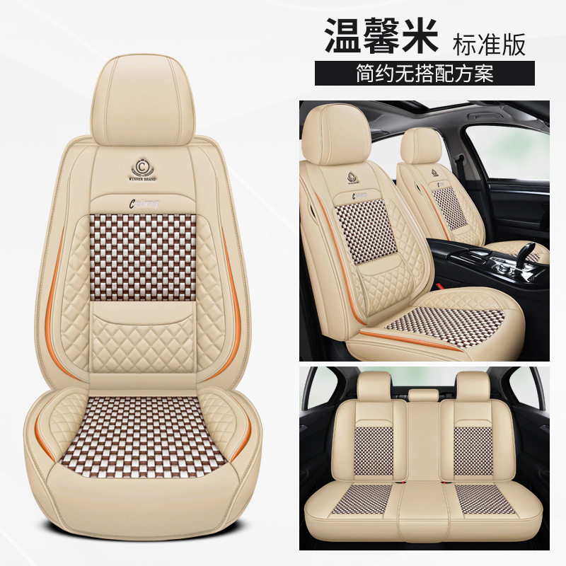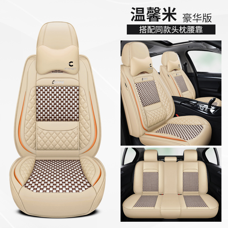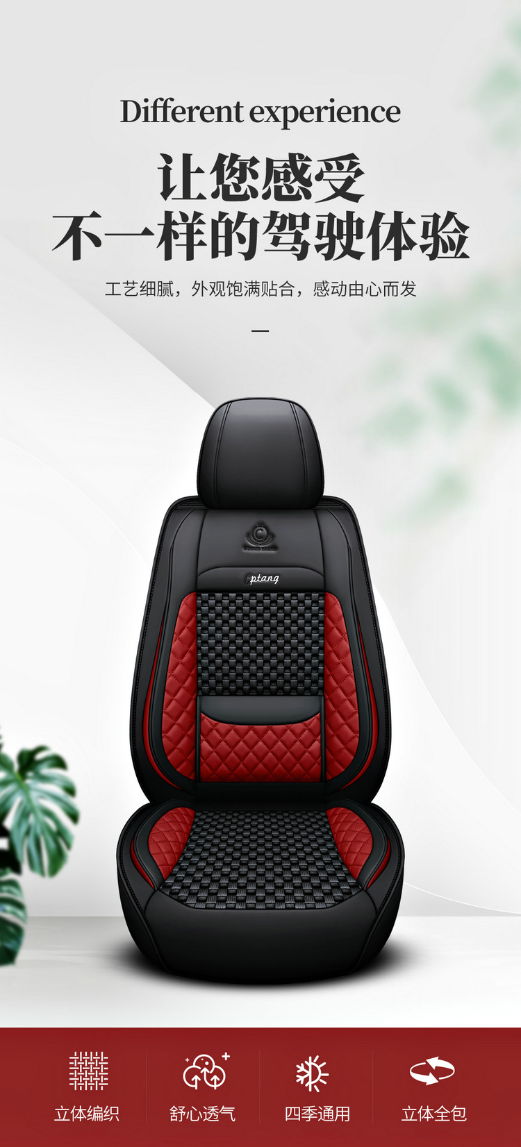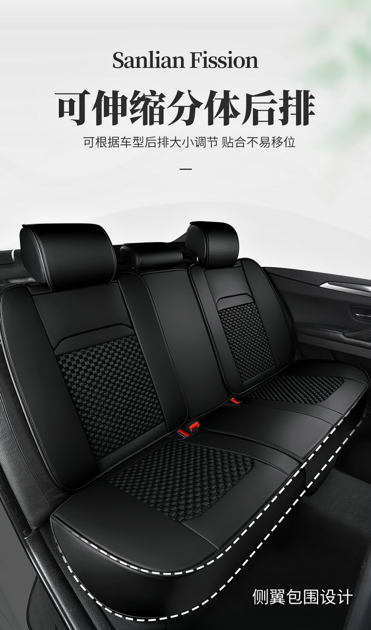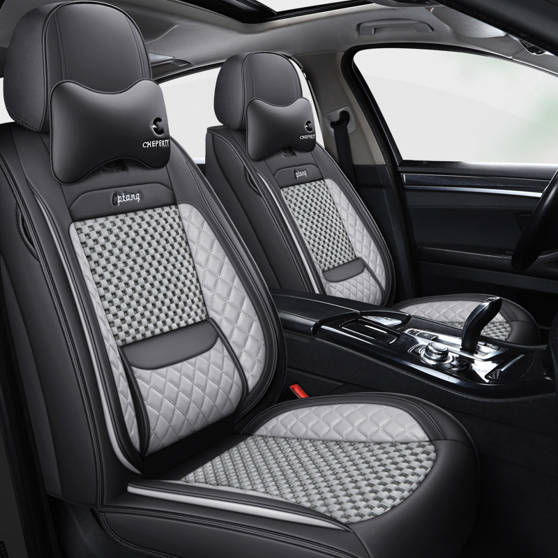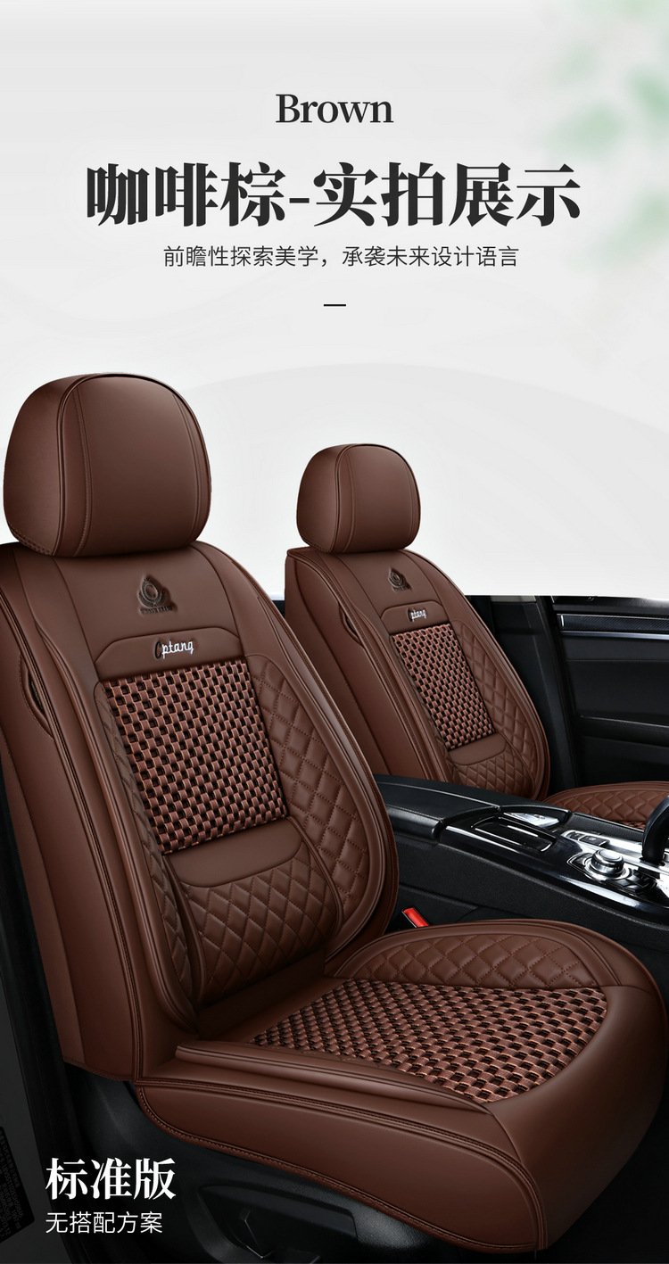 跨境热销款皮加冰丝四季通用透气全包围汽车坐垫适用百分之95车型