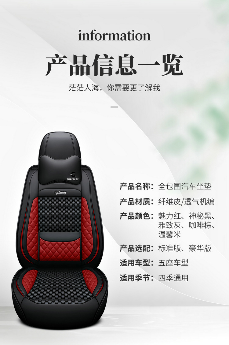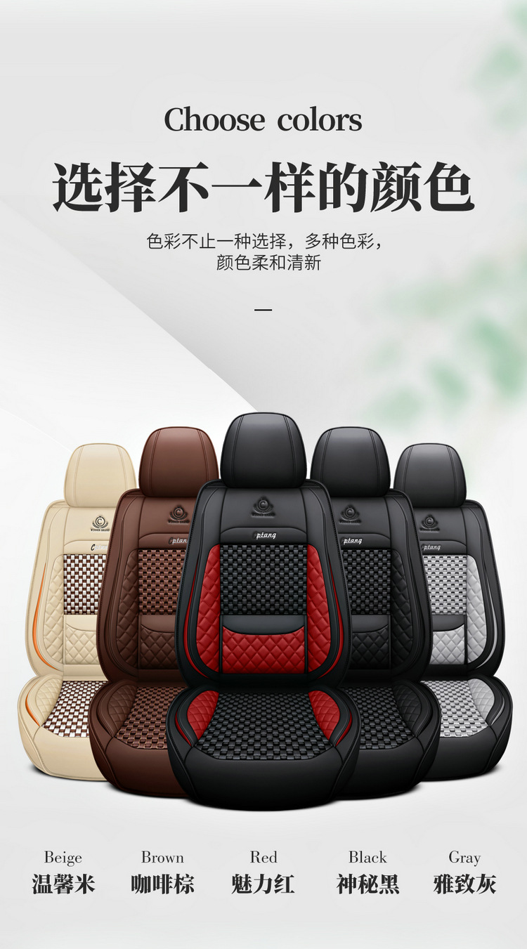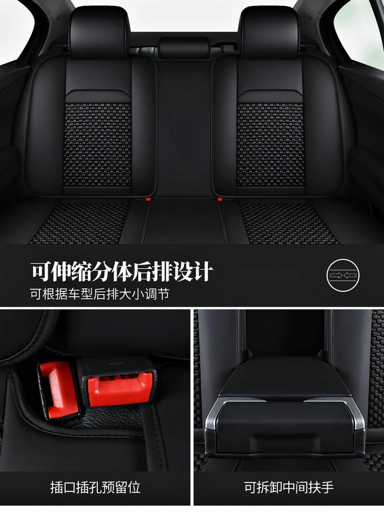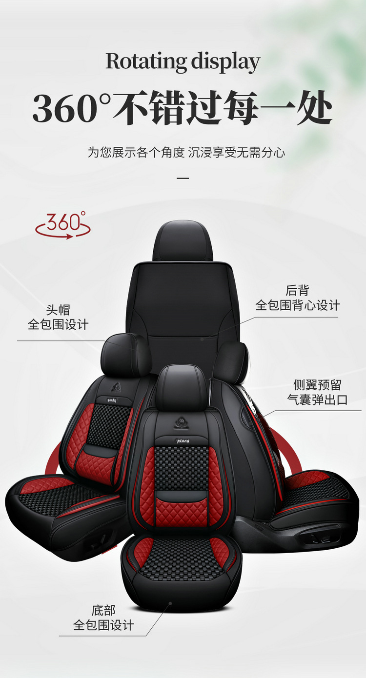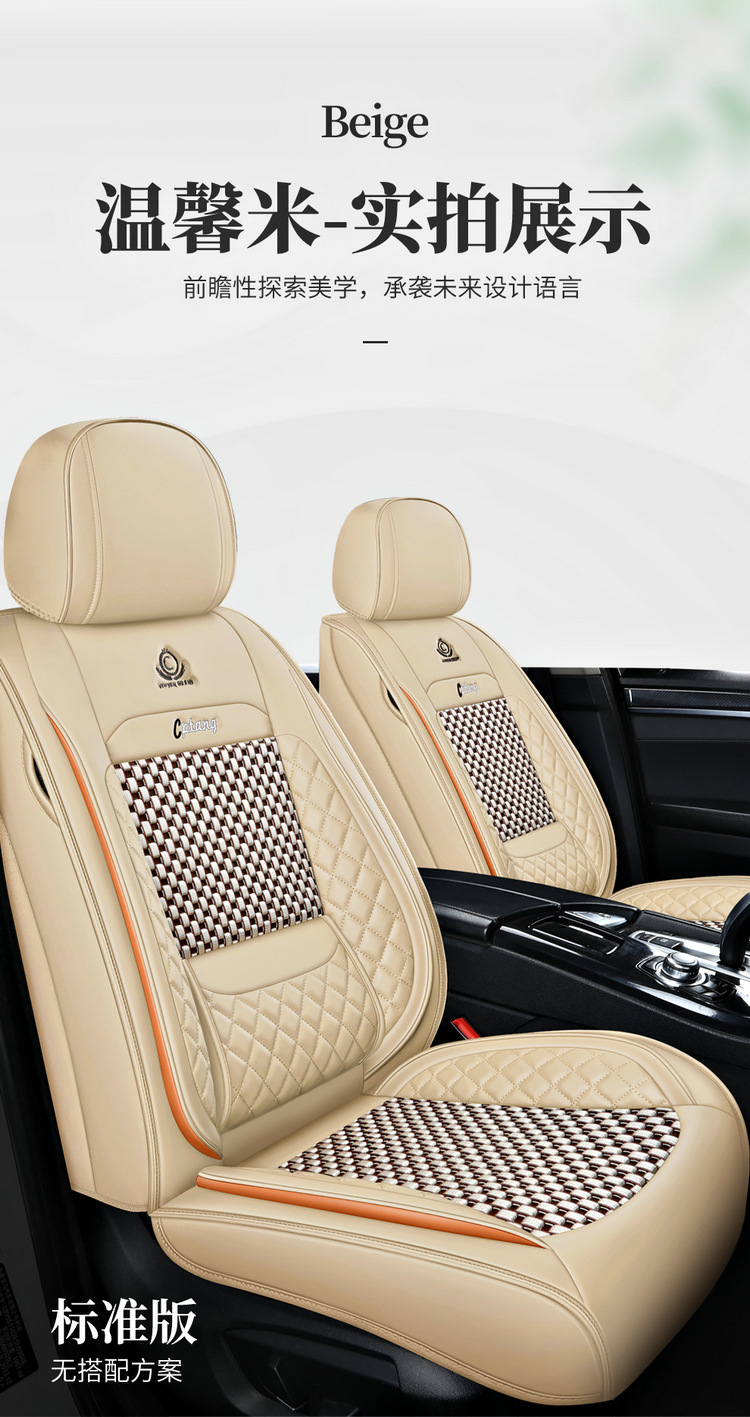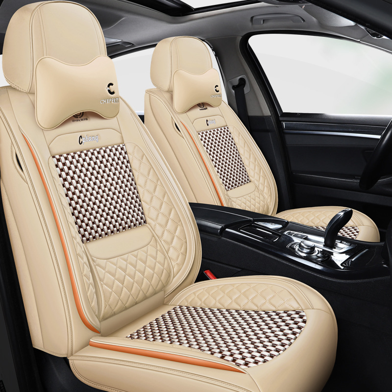 跨境热销款皮加冰丝四季通用透气全包围汽车坐垫适用百分之95车型
