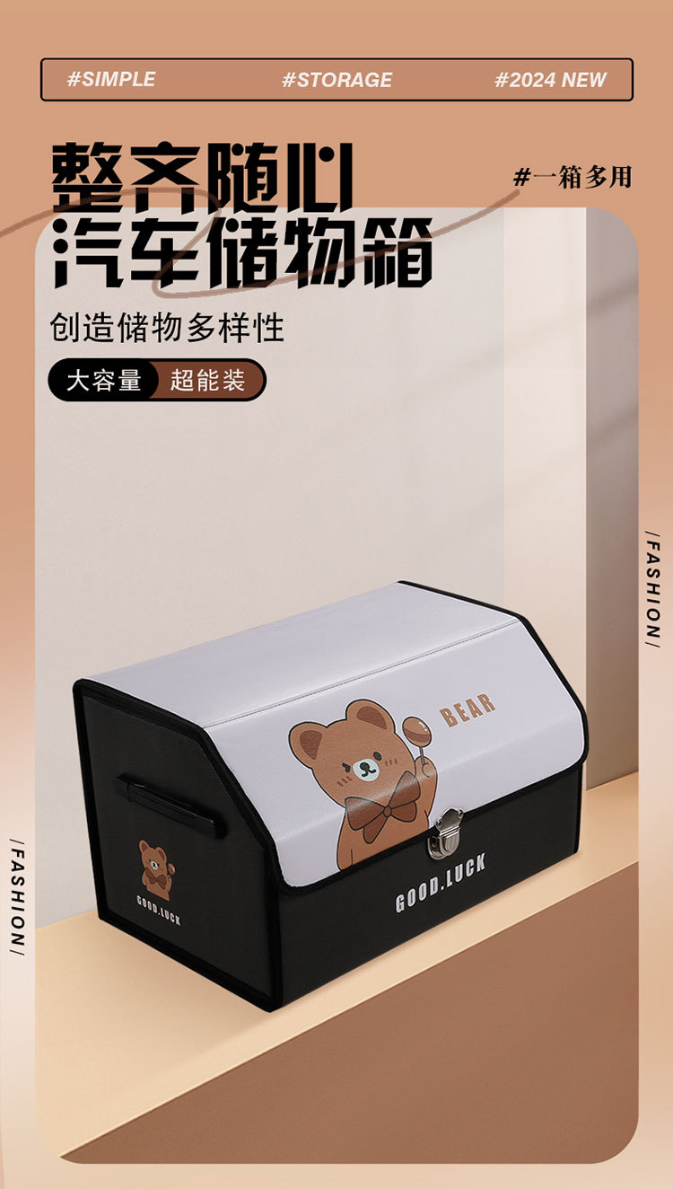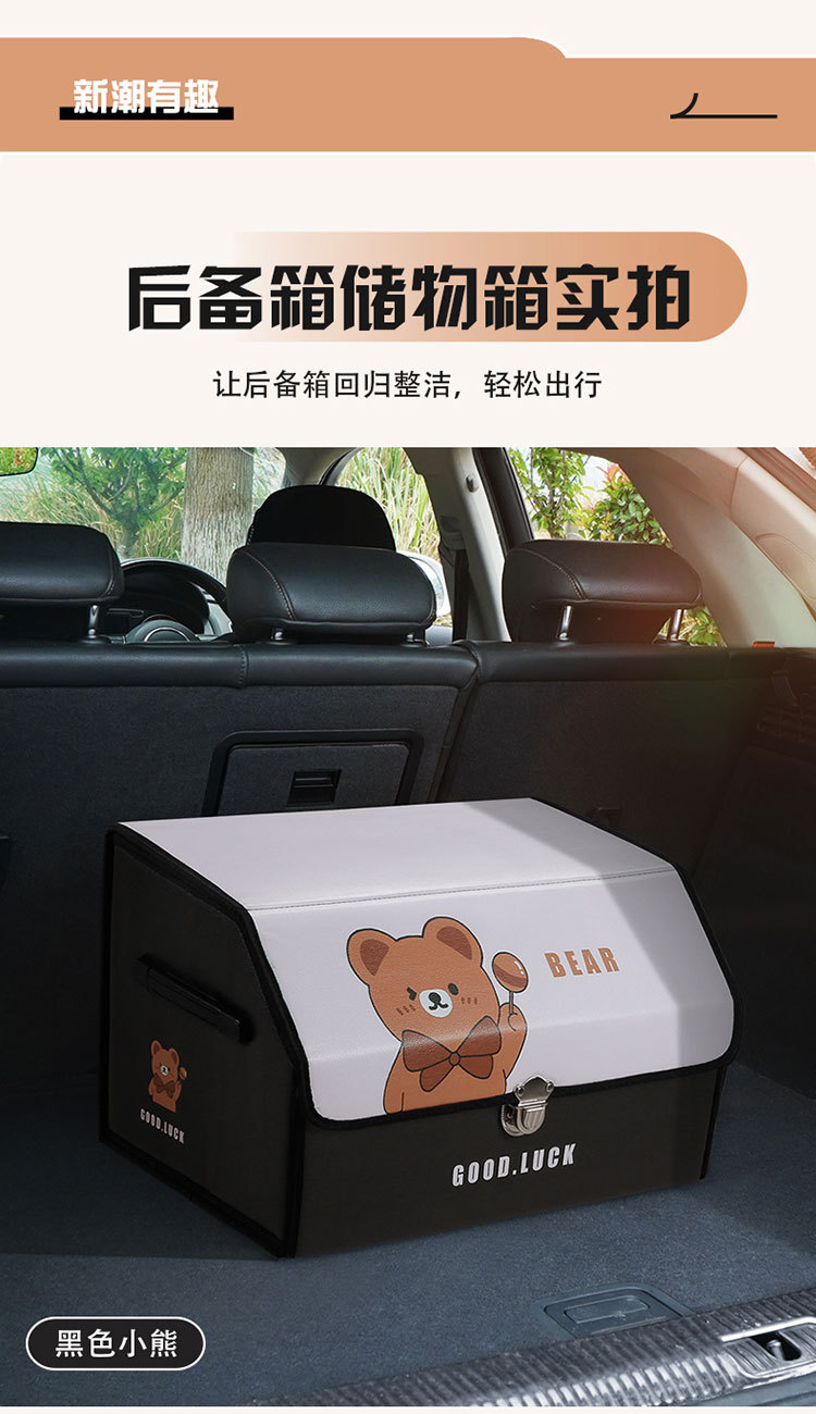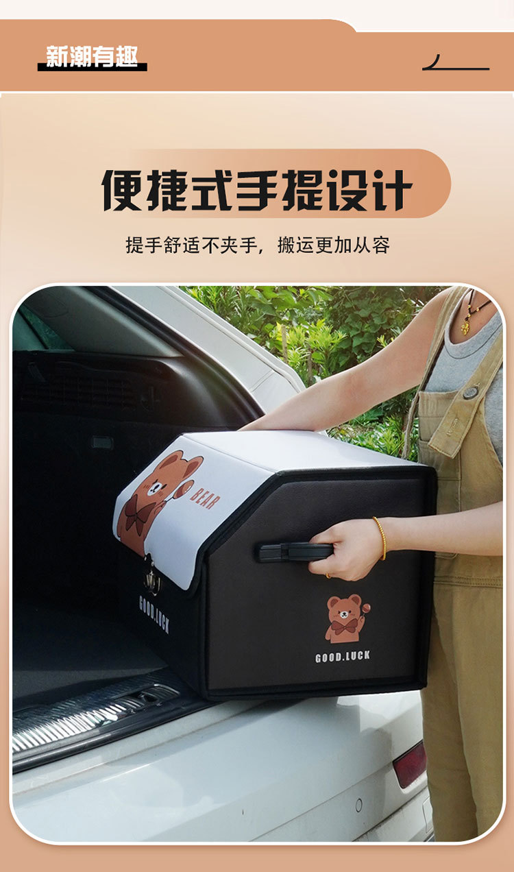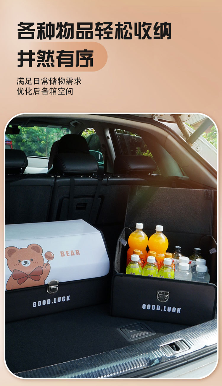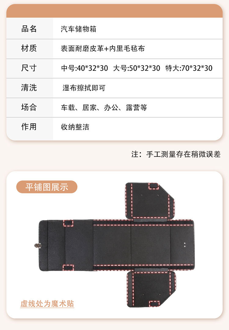 后备箱收纳箱皮革车载储物箱多功能折叠储物盒车尾收纳盒