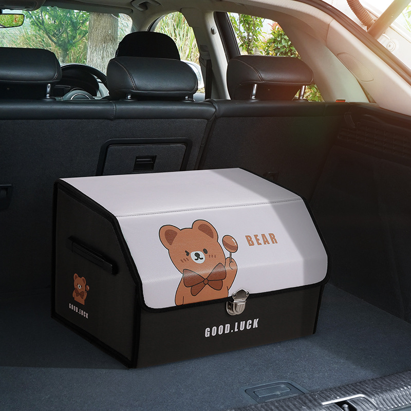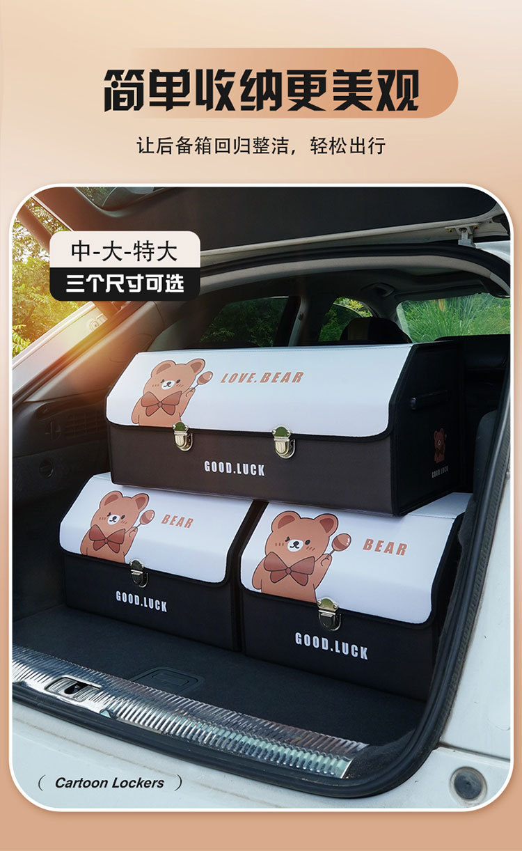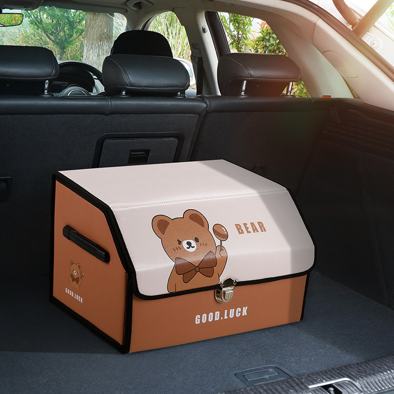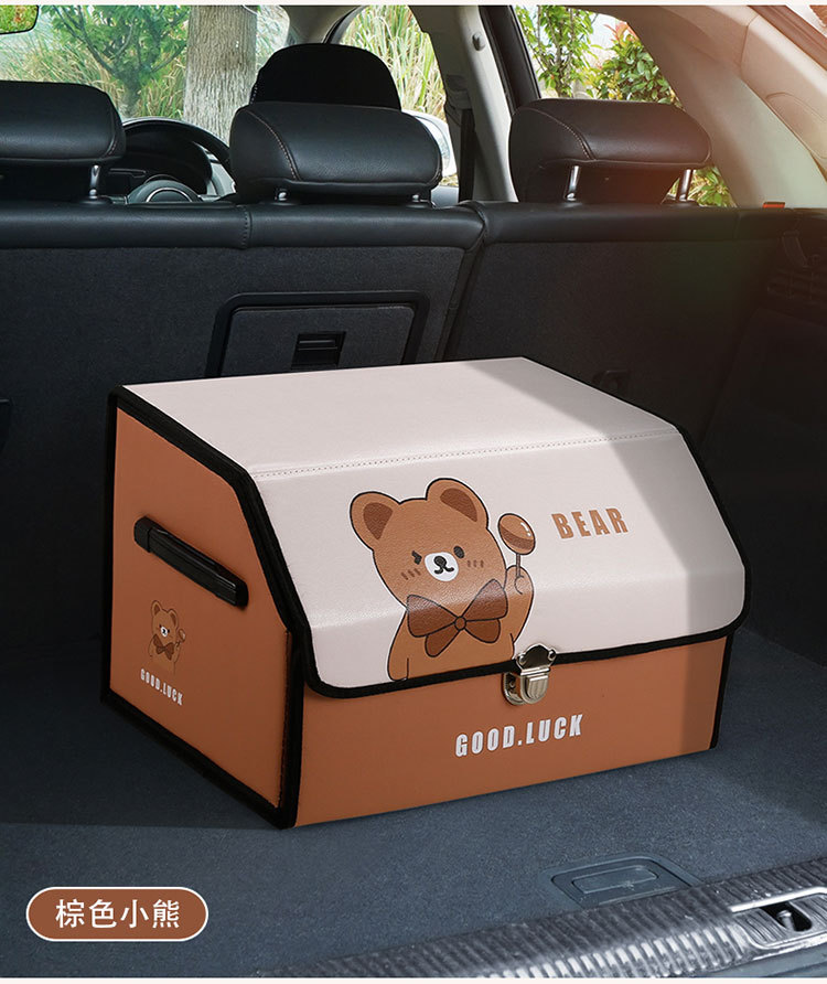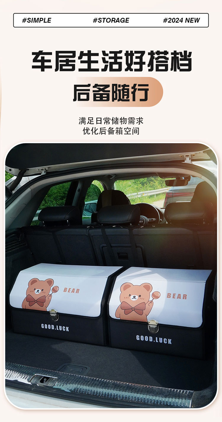 后备箱收纳箱皮革车载储物箱多功能折叠储物盒车尾收纳盒