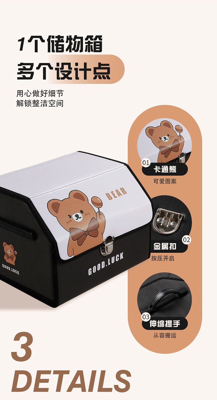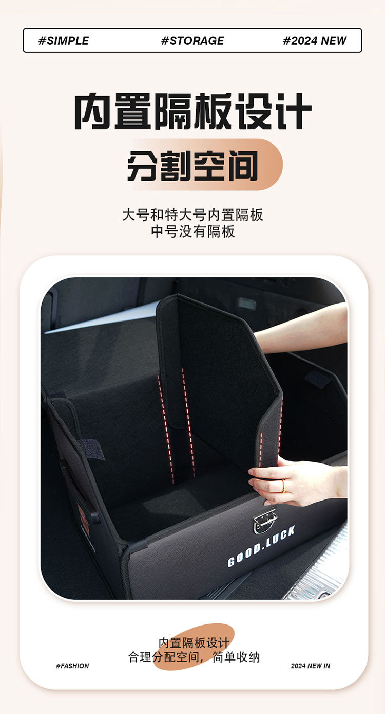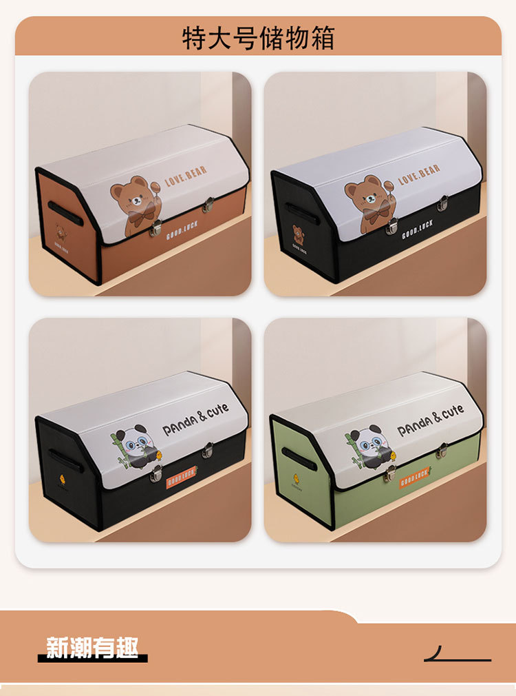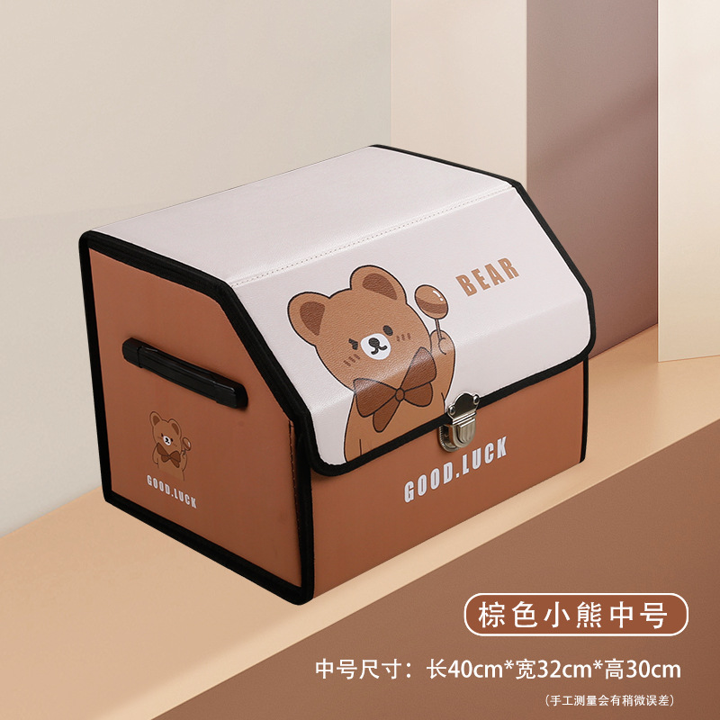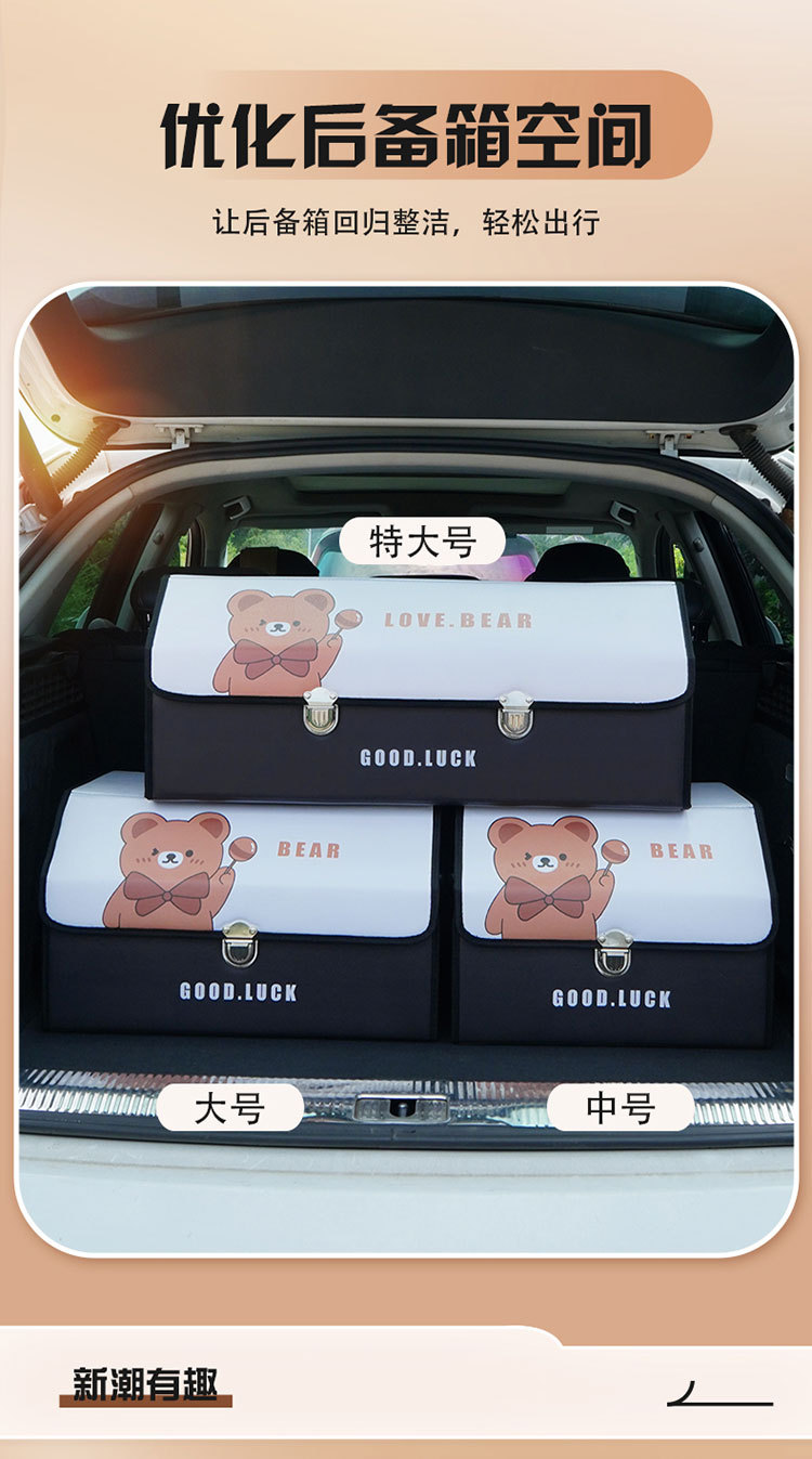 后备箱收纳箱皮革车载储物箱多功能折叠储物盒车尾收纳盒