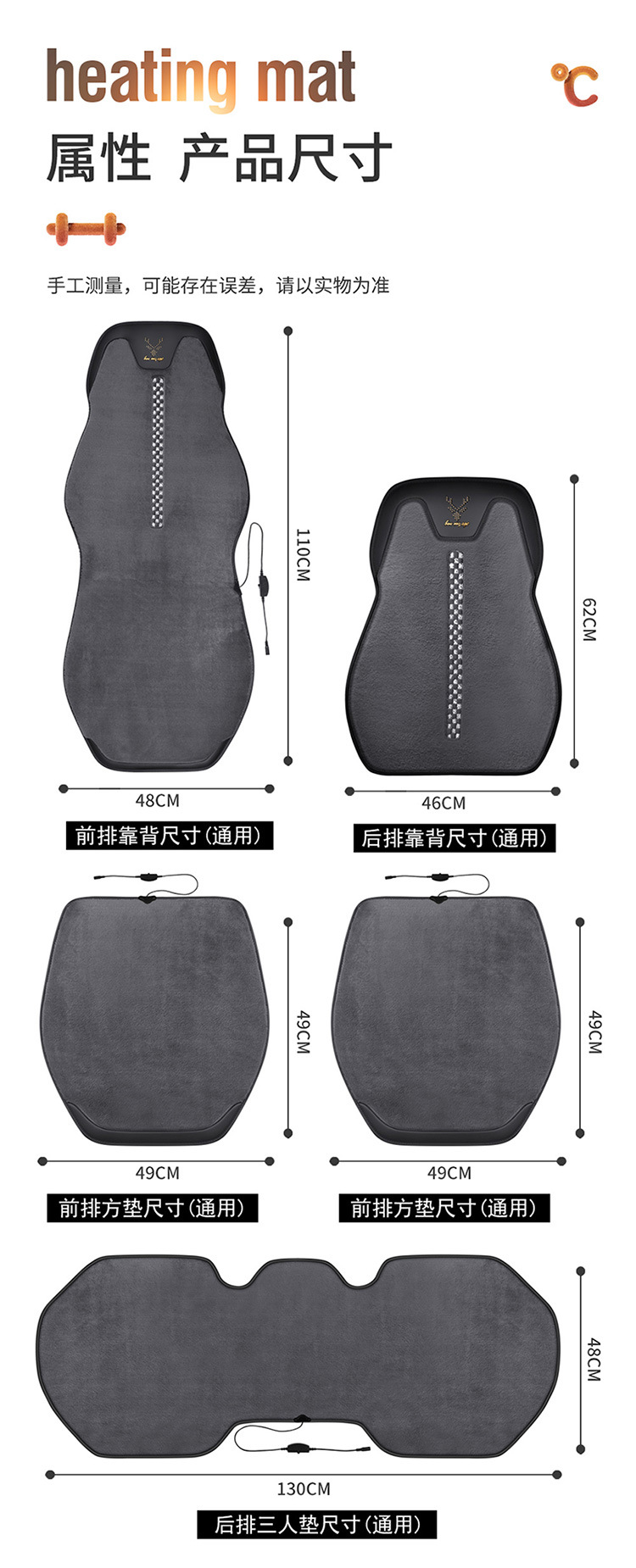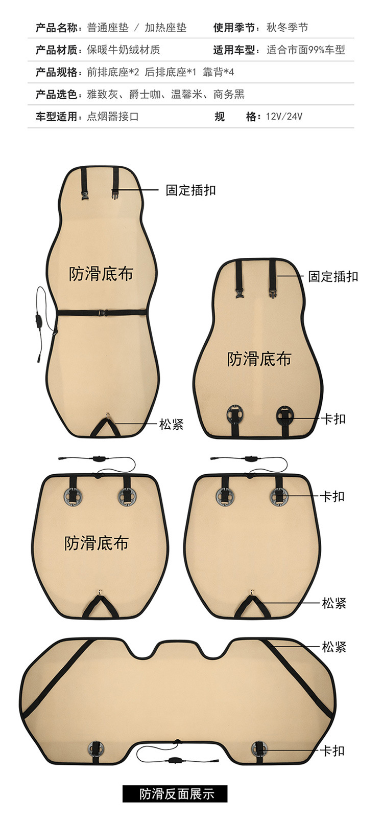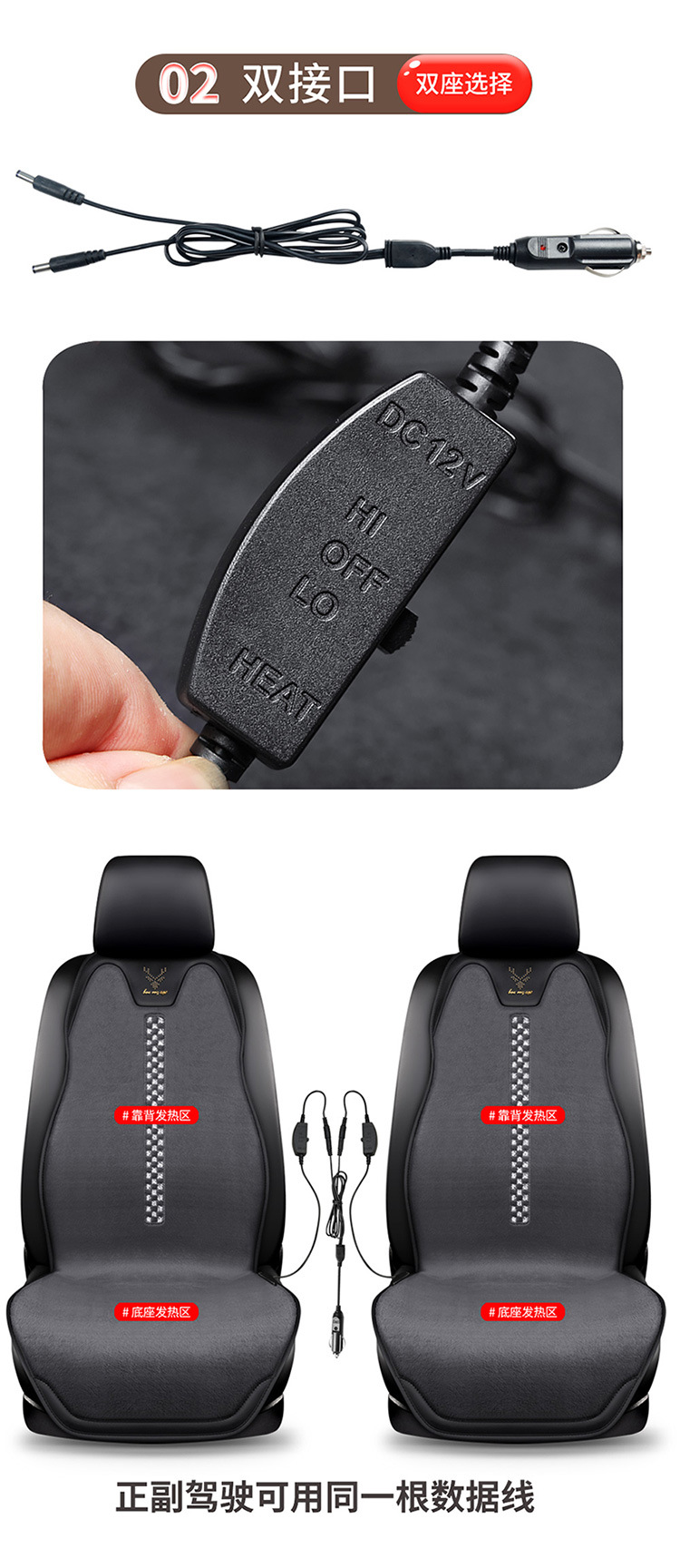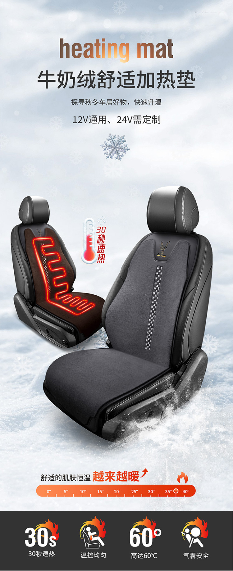 汽车加热坐垫车载座椅垫电热暖垫靠垫通用冬季新款车用12V 24V座