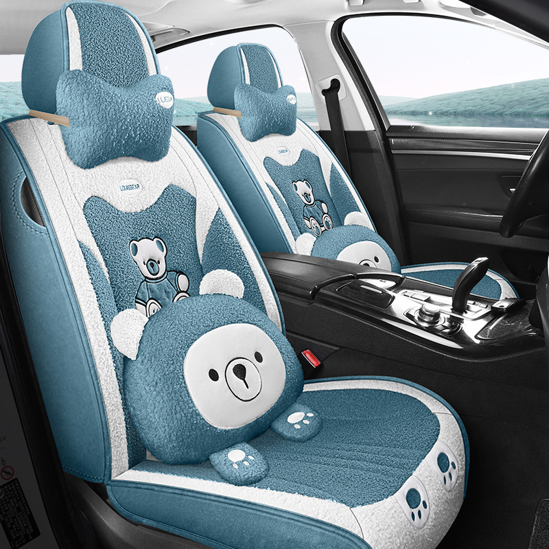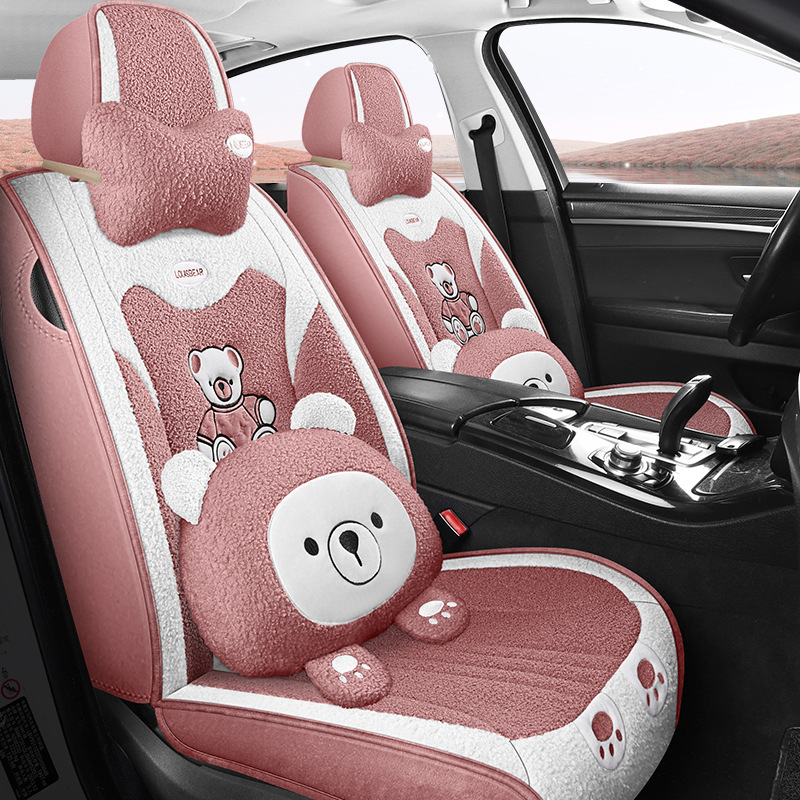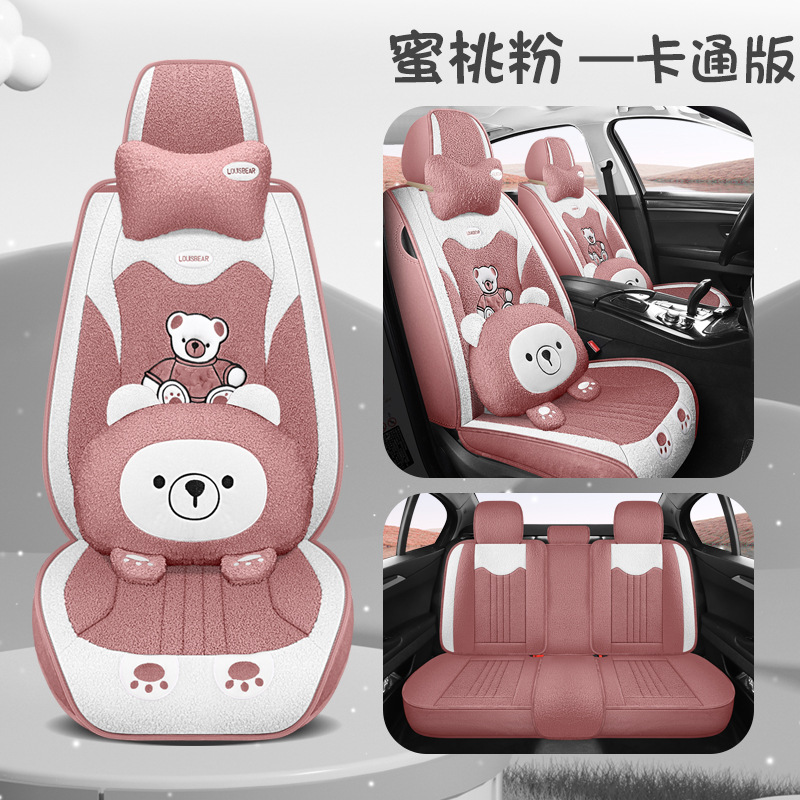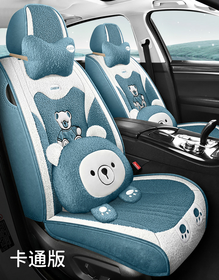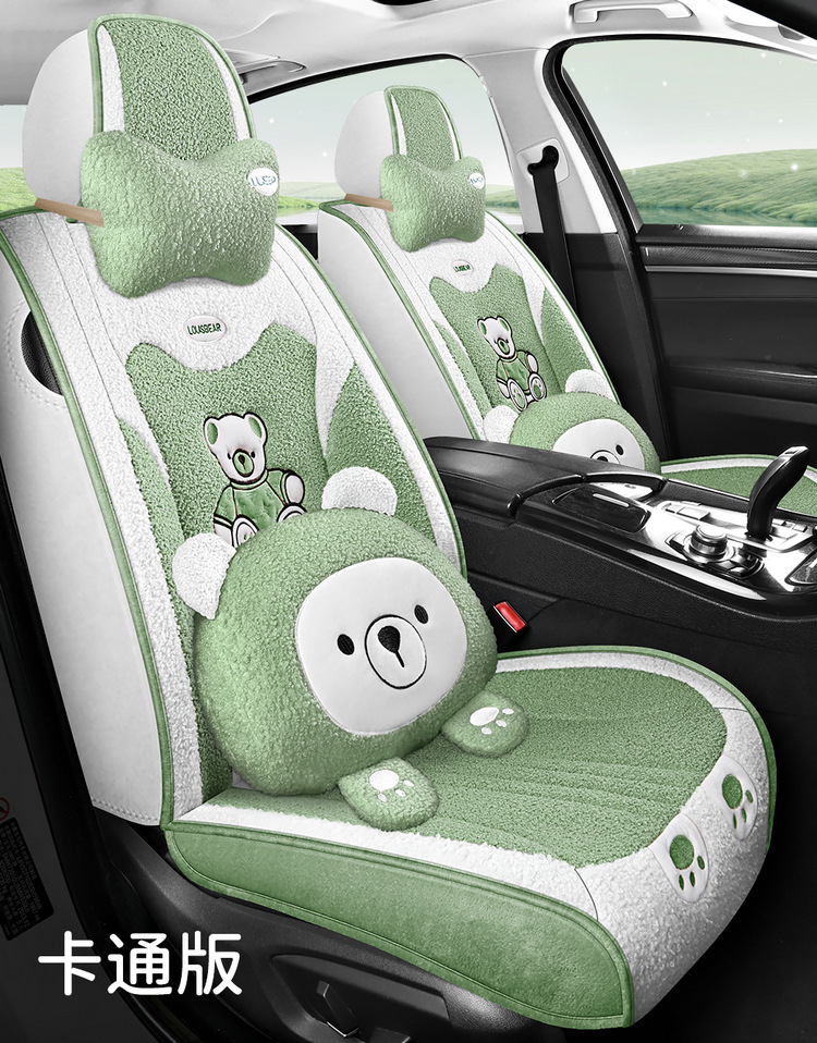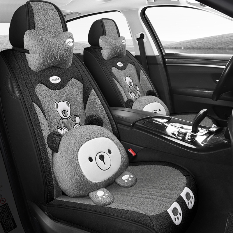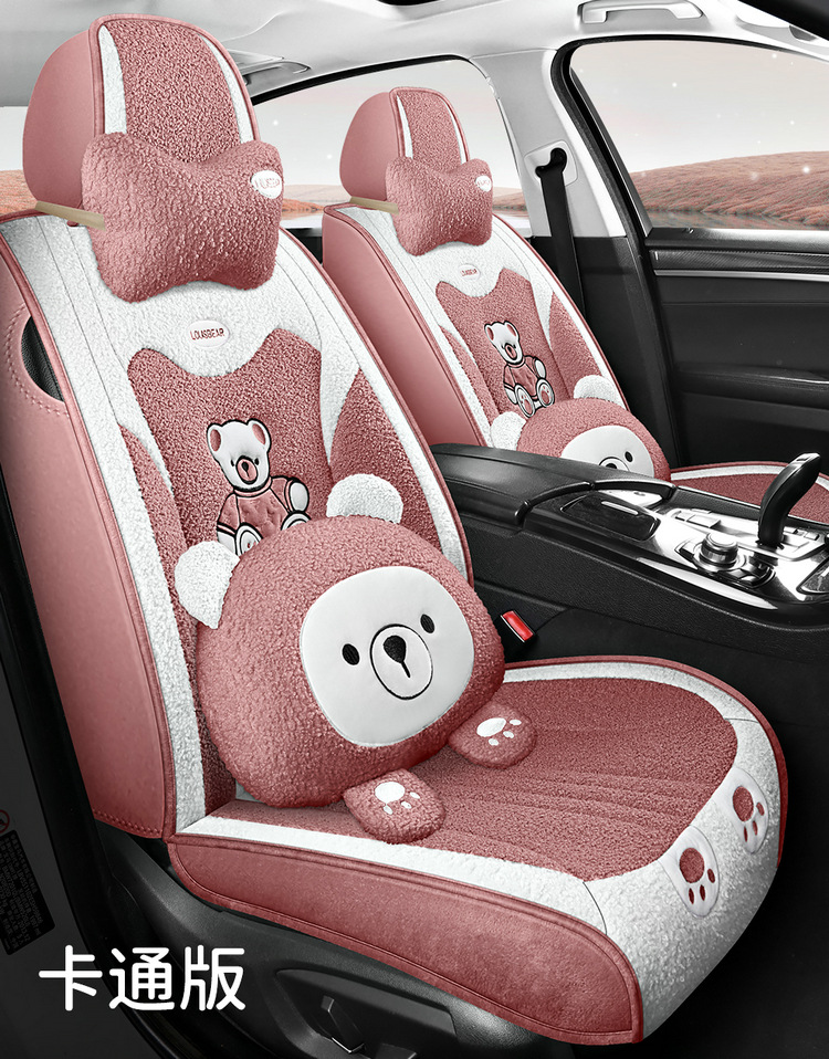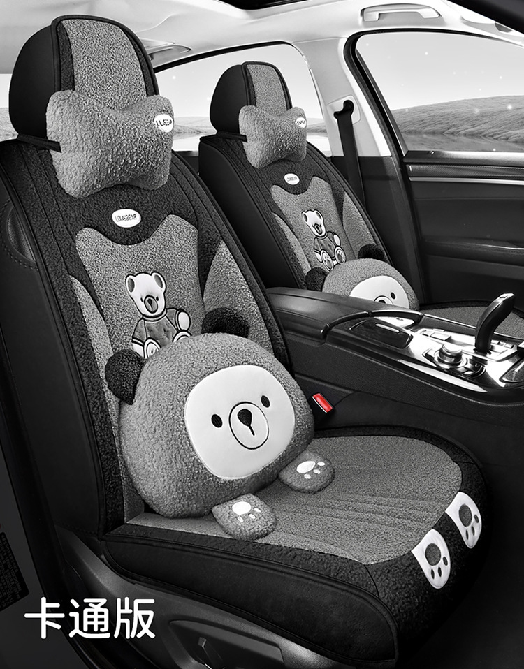 汽车坐垫冬季短毛绒座椅垫冬天保暖加厚卡通可爱女士通用全包座套