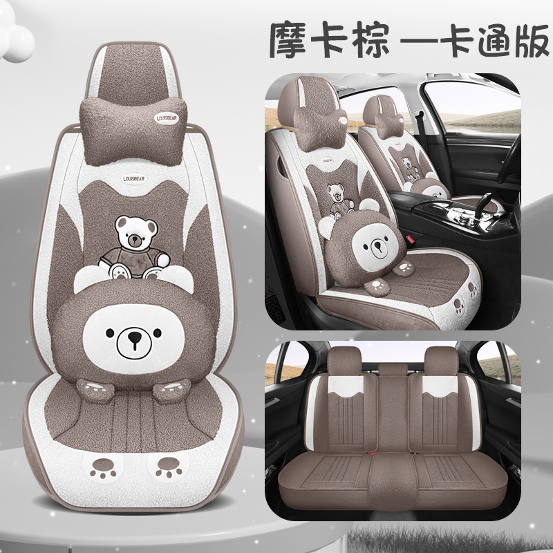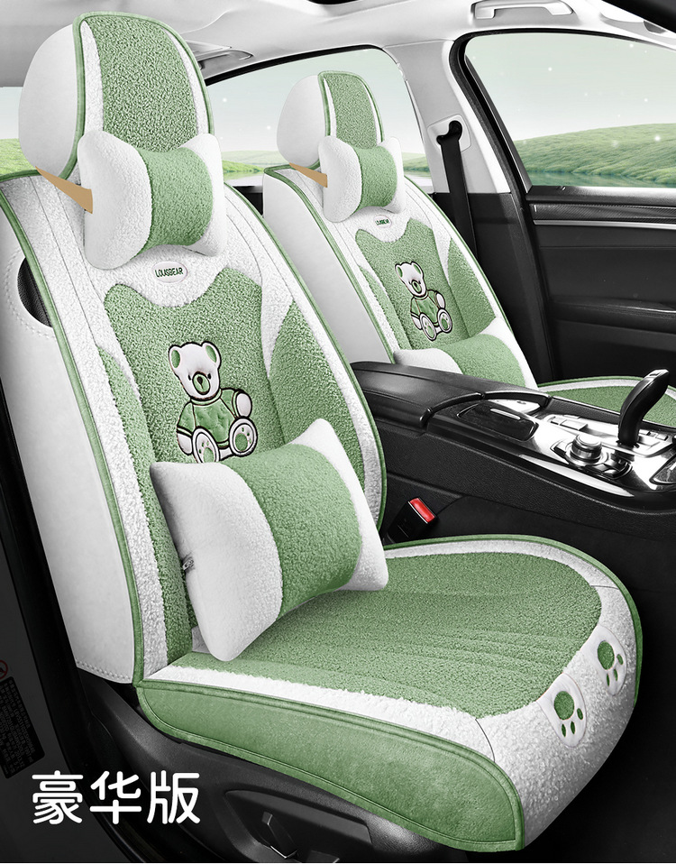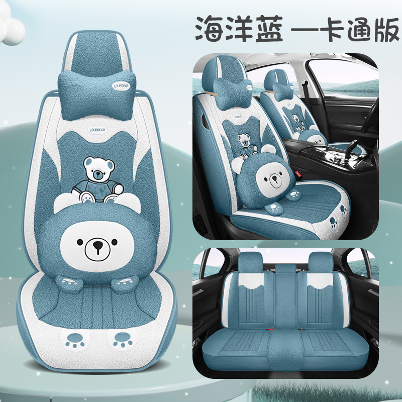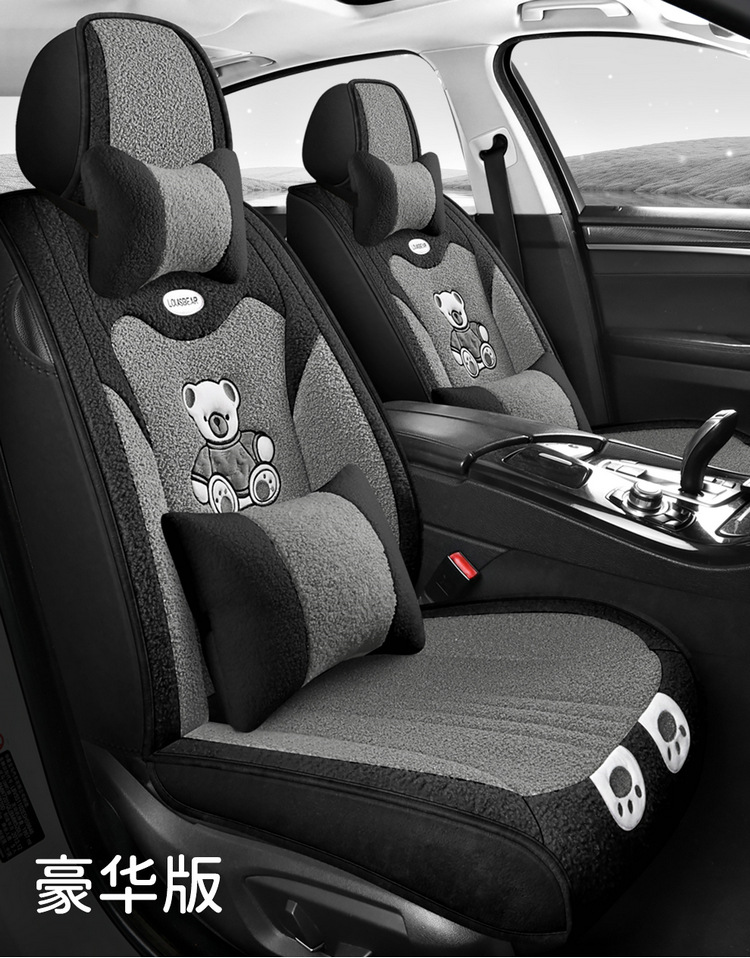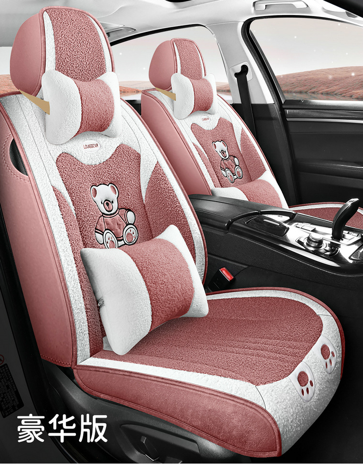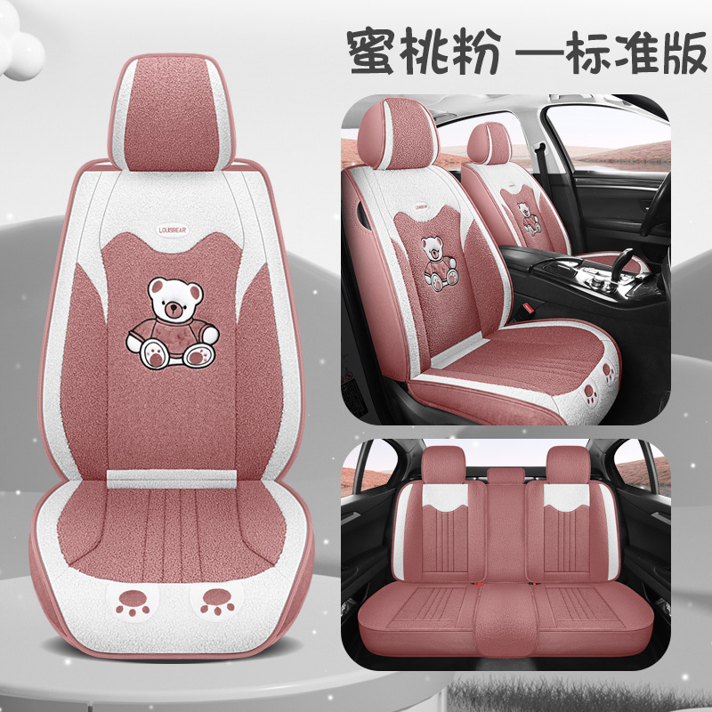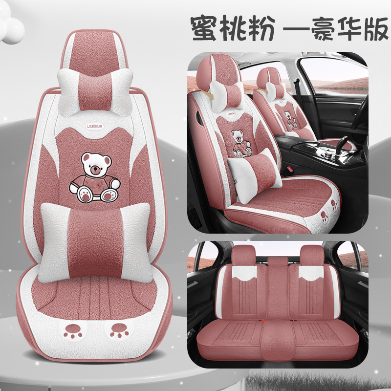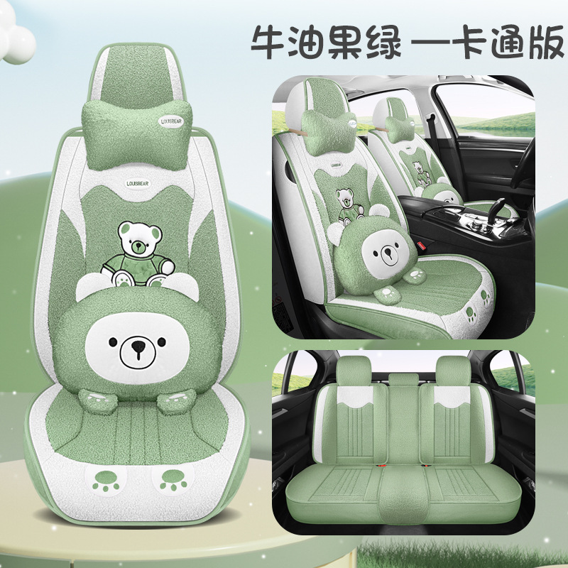 汽车坐垫冬季短毛绒座椅垫冬天保暖加厚卡通可爱女士通用全包座套