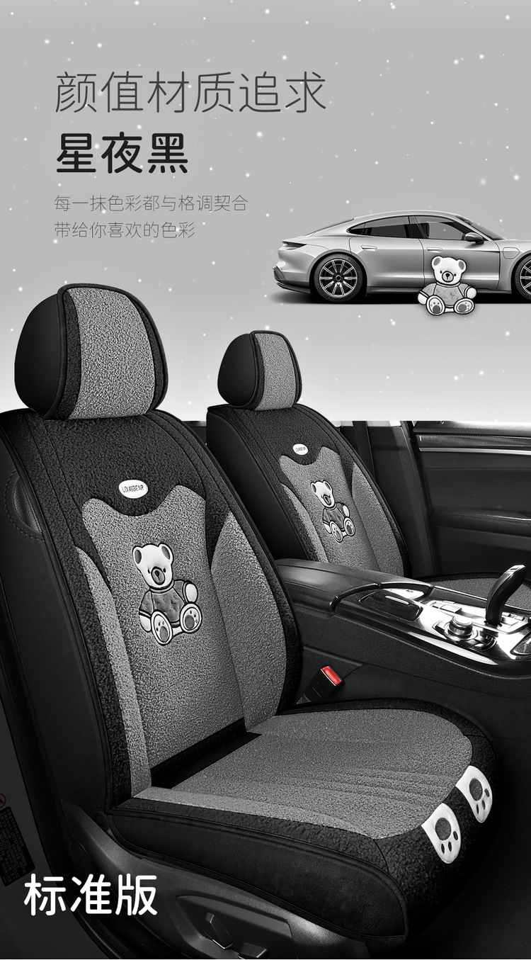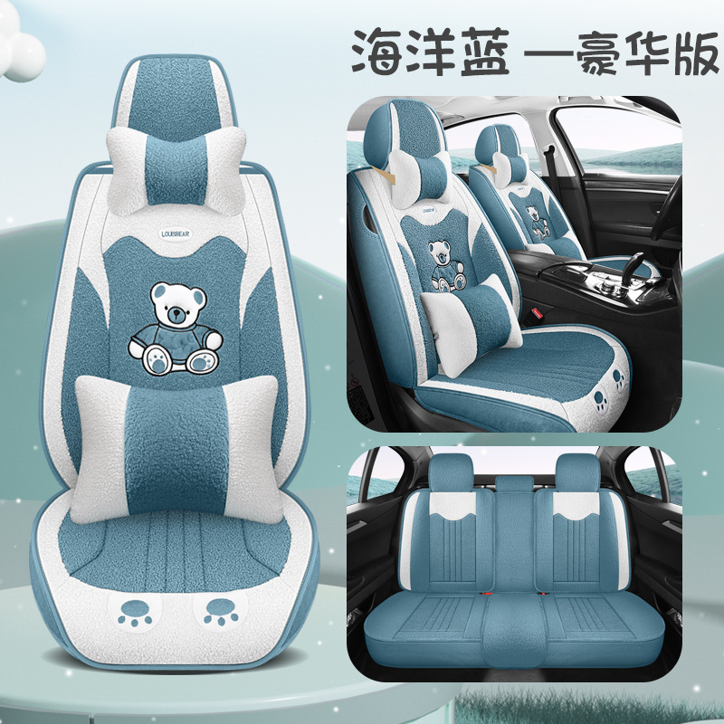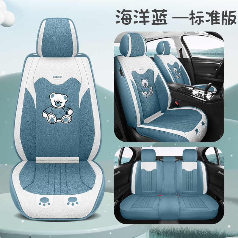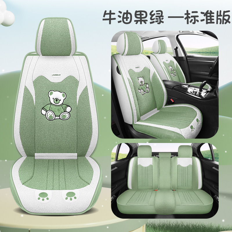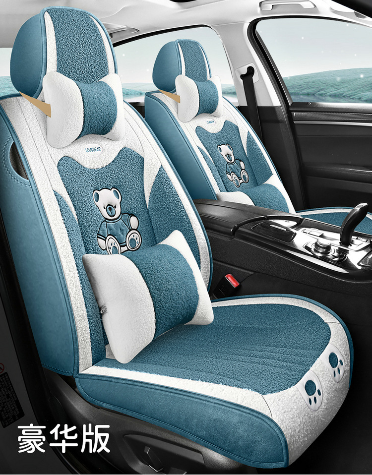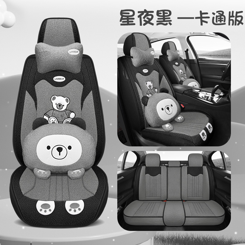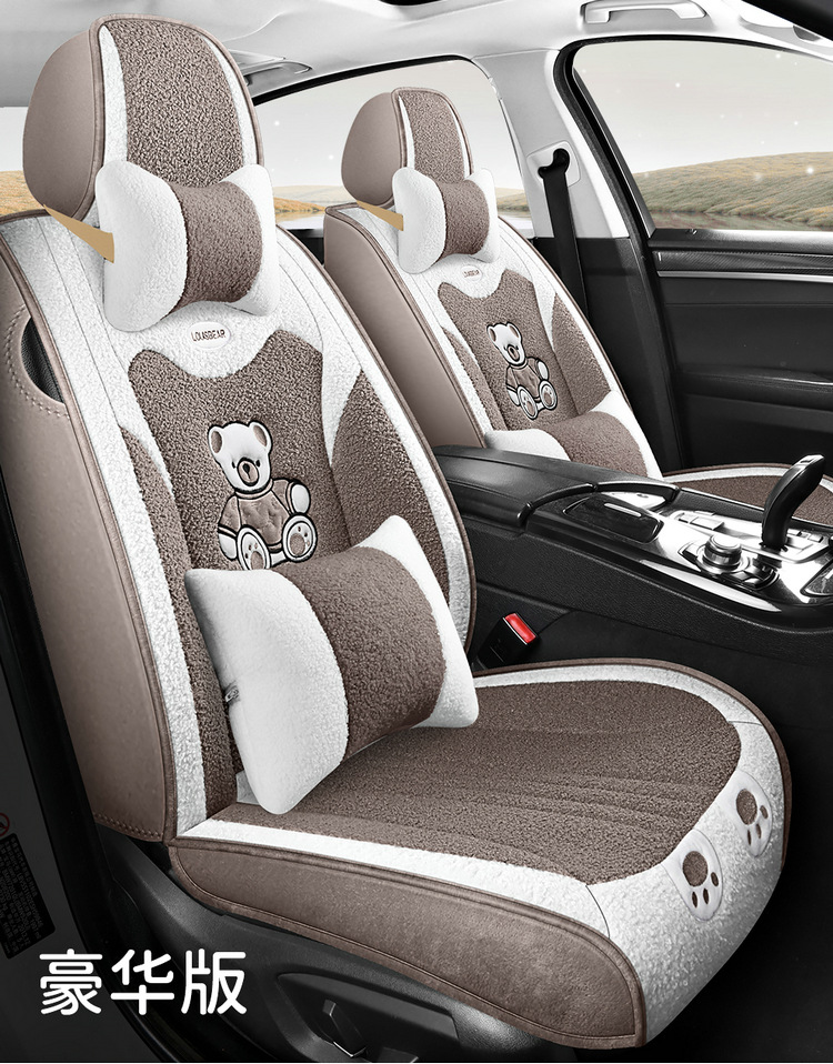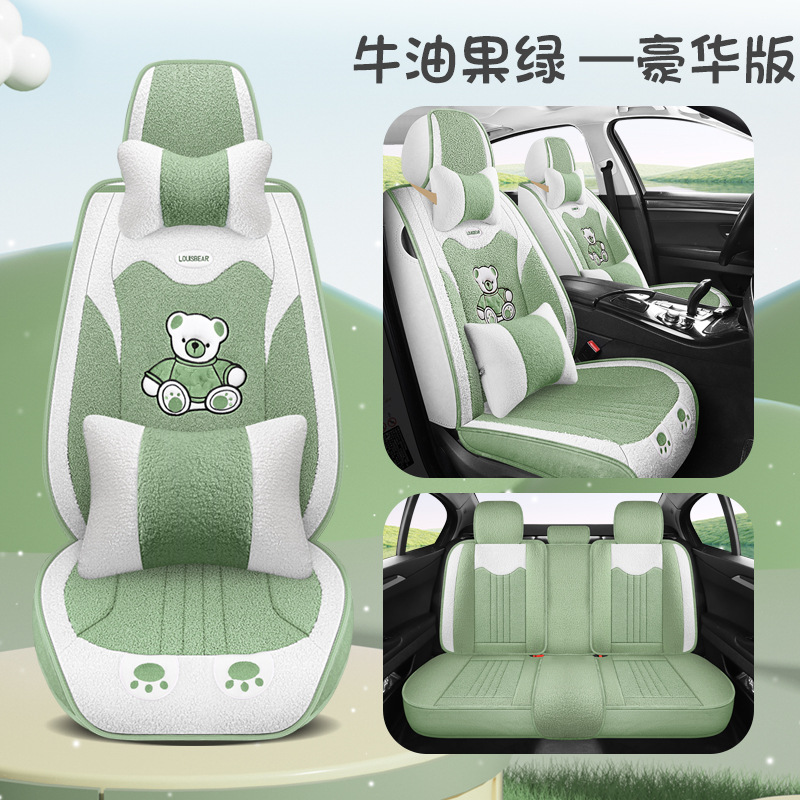 汽车坐垫冬季短毛绒座椅垫冬天保暖加厚卡通可爱女士通用全包座套