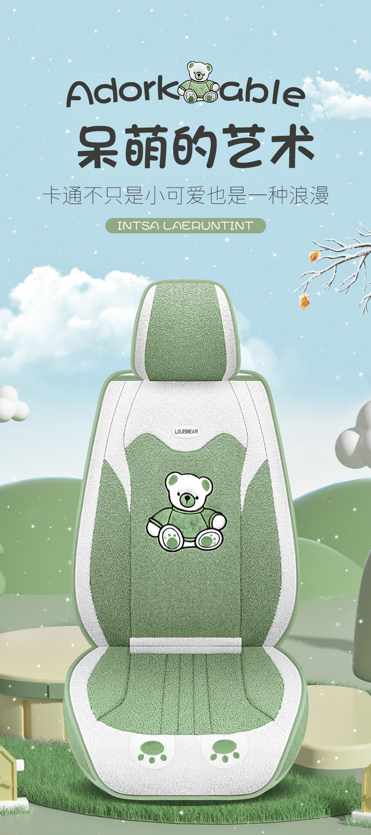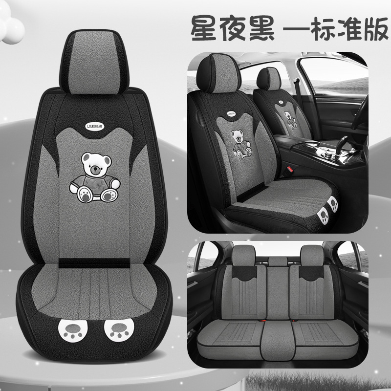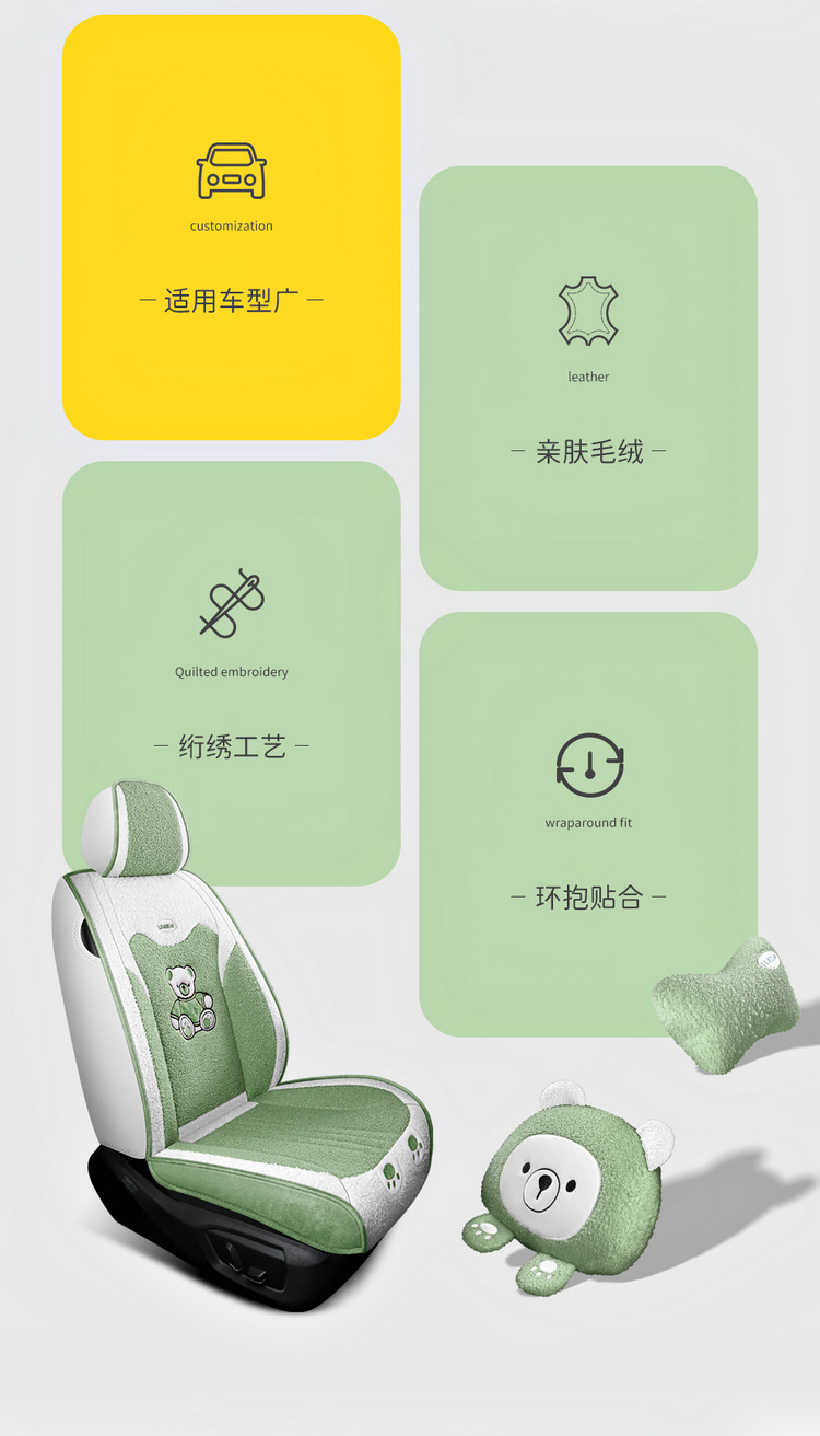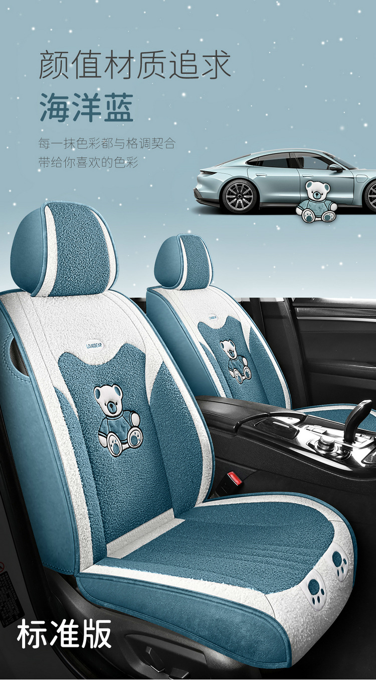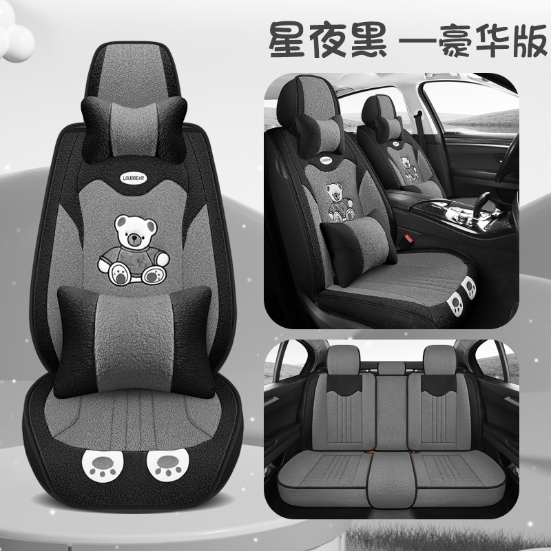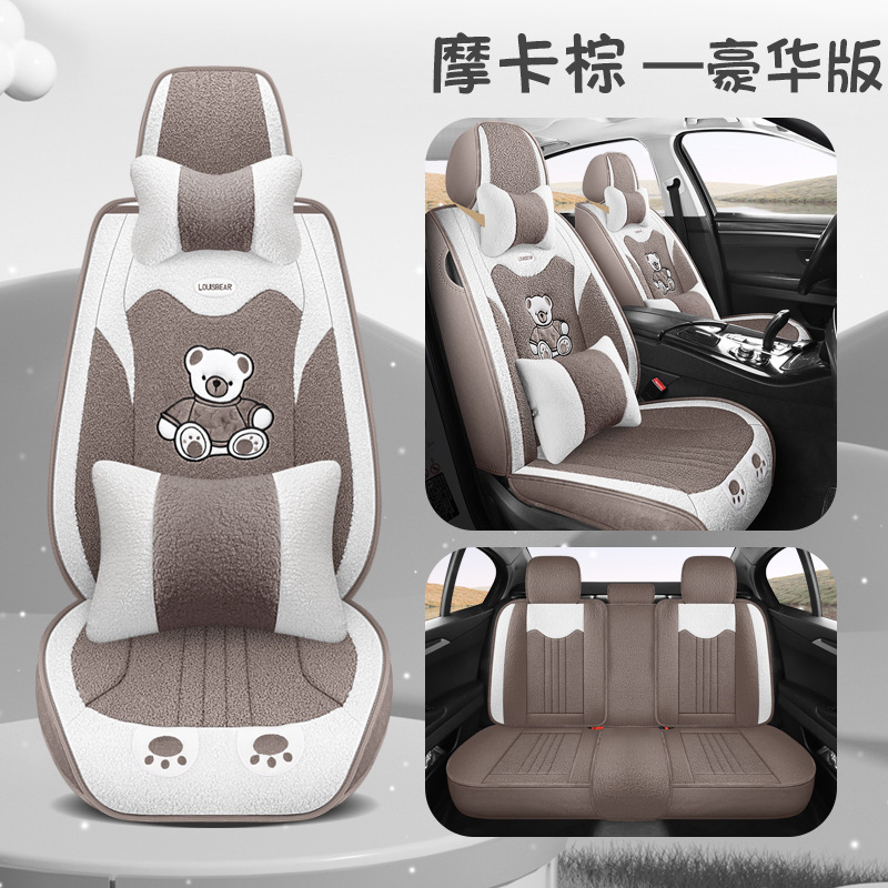 汽车坐垫冬季短毛绒座椅垫冬天保暖加厚卡通可爱女士通用全包座套