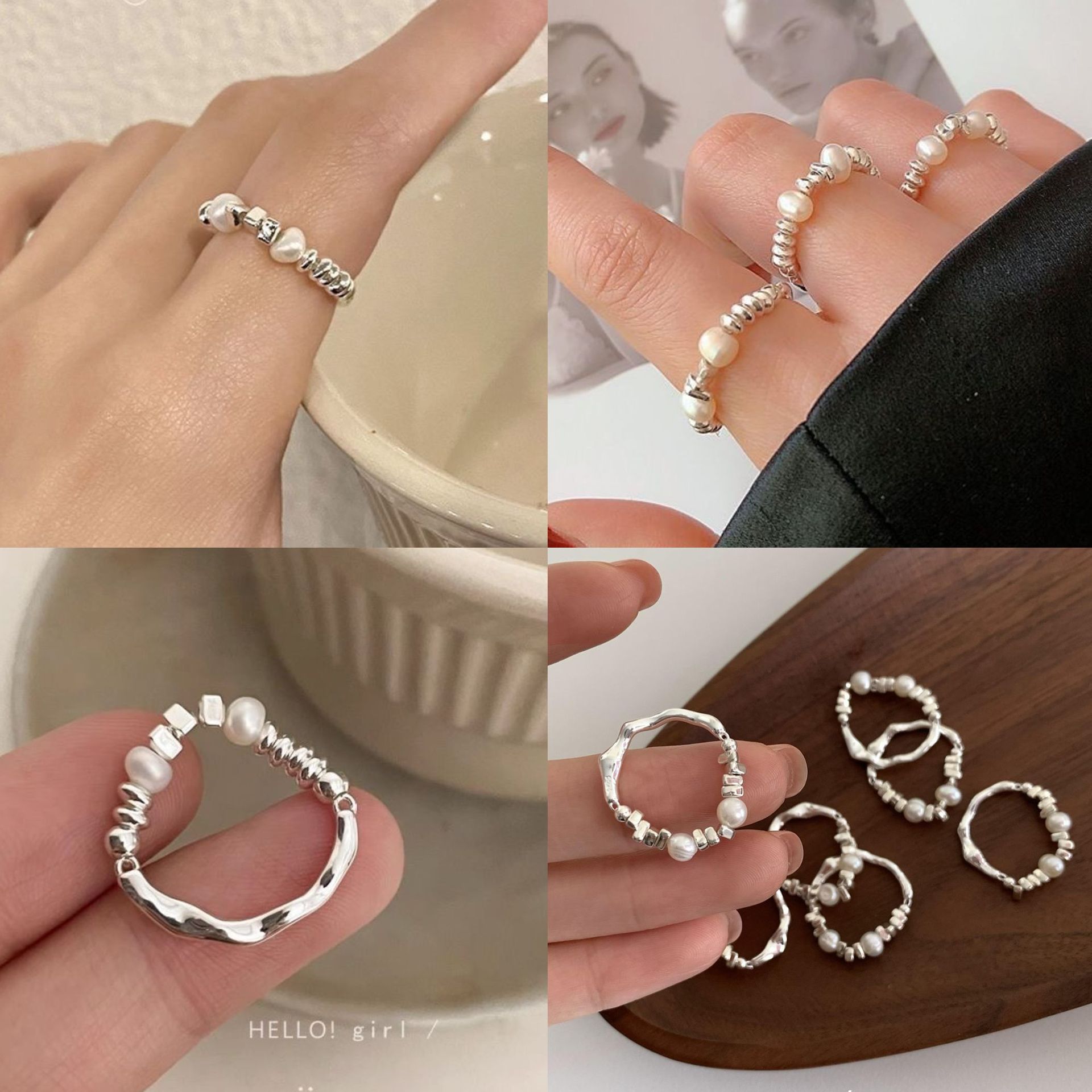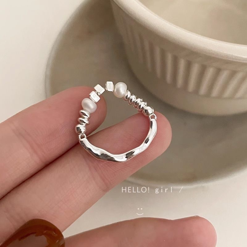 碎银戒指素圈可调不规则戒指女轻奢高级创意珍珠小众设计感食指戒