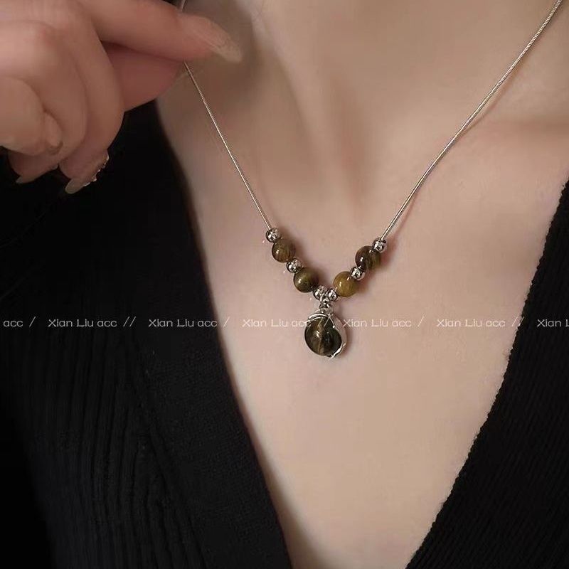 皮革虎眼石项链女复古气质毛衣链轻奢小众叠戴中式锁骨链卫衣配饰