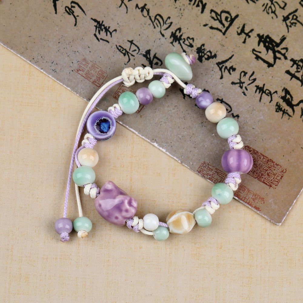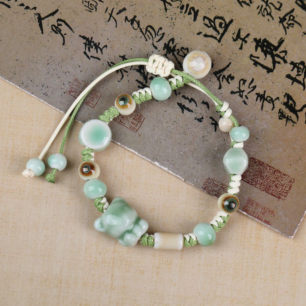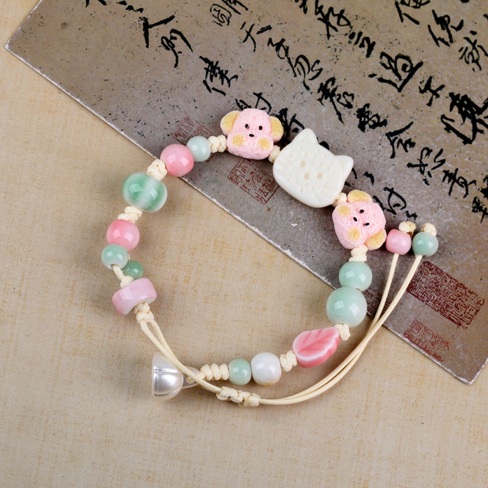 陶瓷手链批发手工编织可爱动物新中式复古手绳男女古风串珠手串