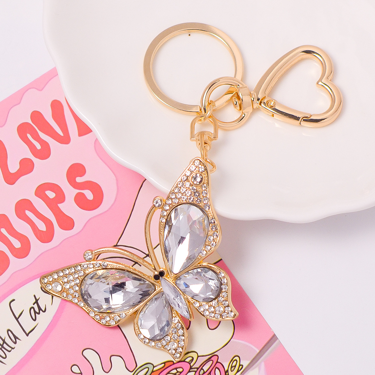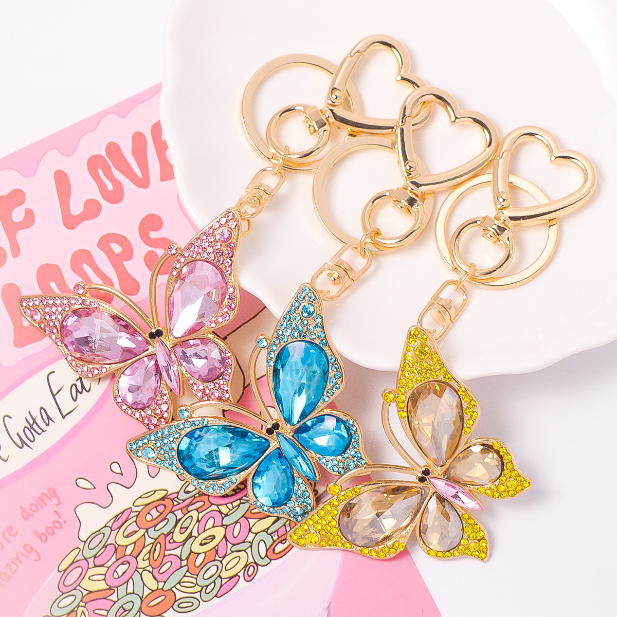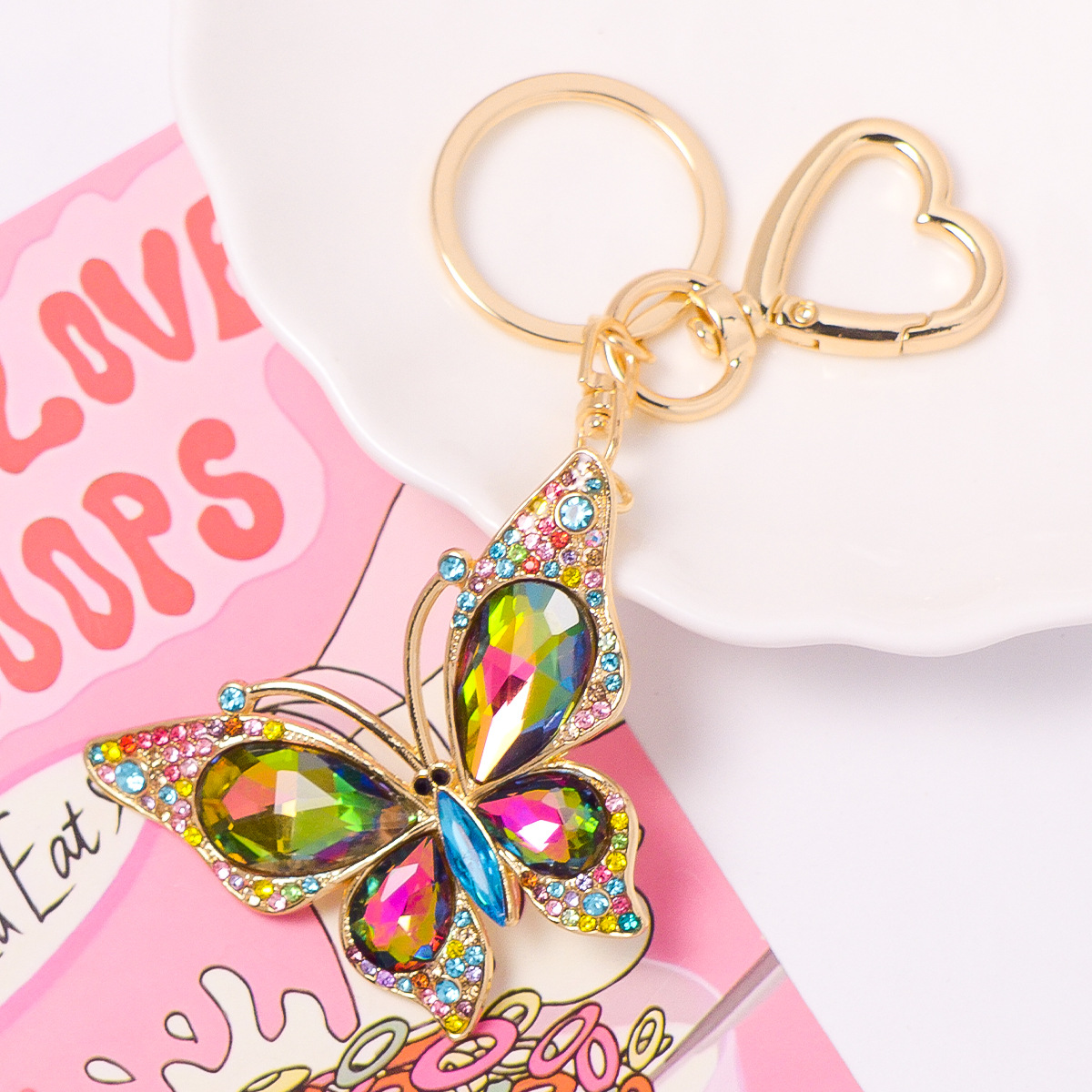 大钻彩色蝴蝶爱心钥匙扣小挂件小饰品配件钥匙链义乌小商品批货